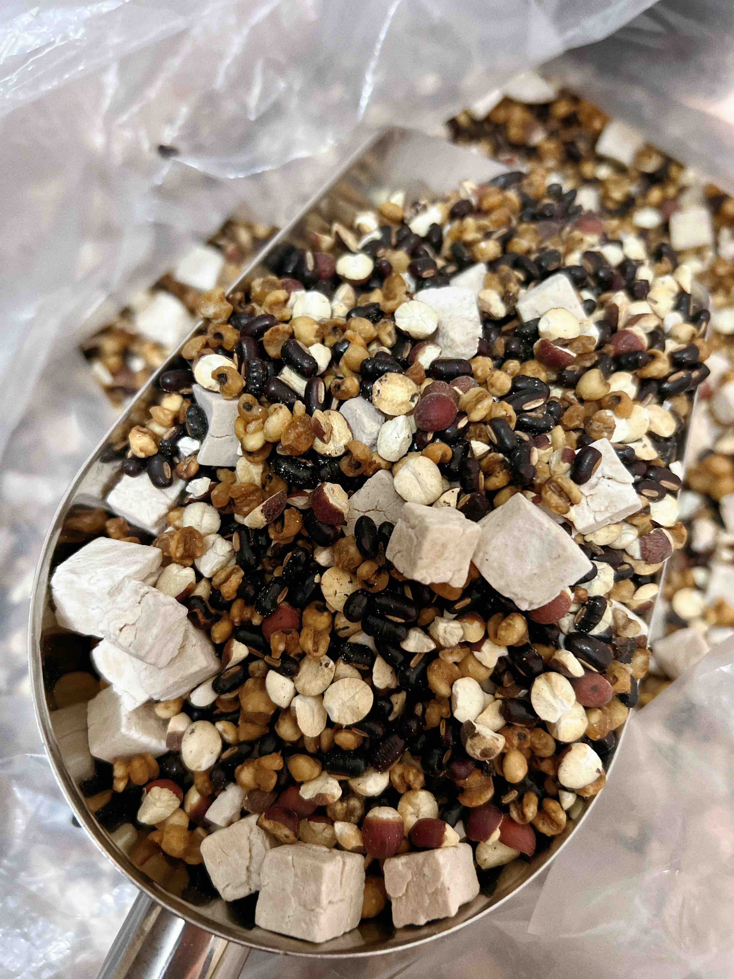 所以,总的来说,在这款茶的食材选用上,我们用的都是力所能及范围内最好的,没有边角料或劣质食材,原料纯粹,每一样都清晰可见。