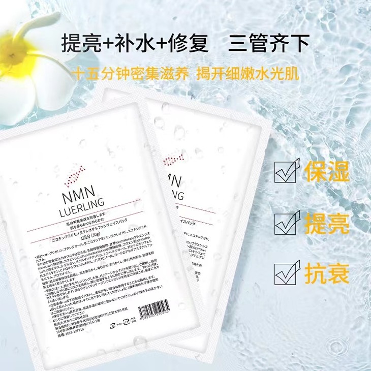 👑LUERLING NMN 美白面膜5片 👍被称为“不老”面膜—持续使用5天为你肌肤带来明显改善! ✅有效:改善肌肤过渡干燥、脱皮、粗糙、色泽暗沉等状况 👐且淡化暗疮印色及色斑非常显著 💦它还有科技衰老成分NMN,搭配烟酰胺、透明质酸钠 💯提亮+补水+修复 三管齐下 ✨仿生纤维膜布,亲水亲肤更透气