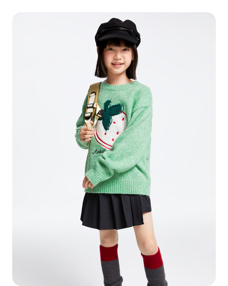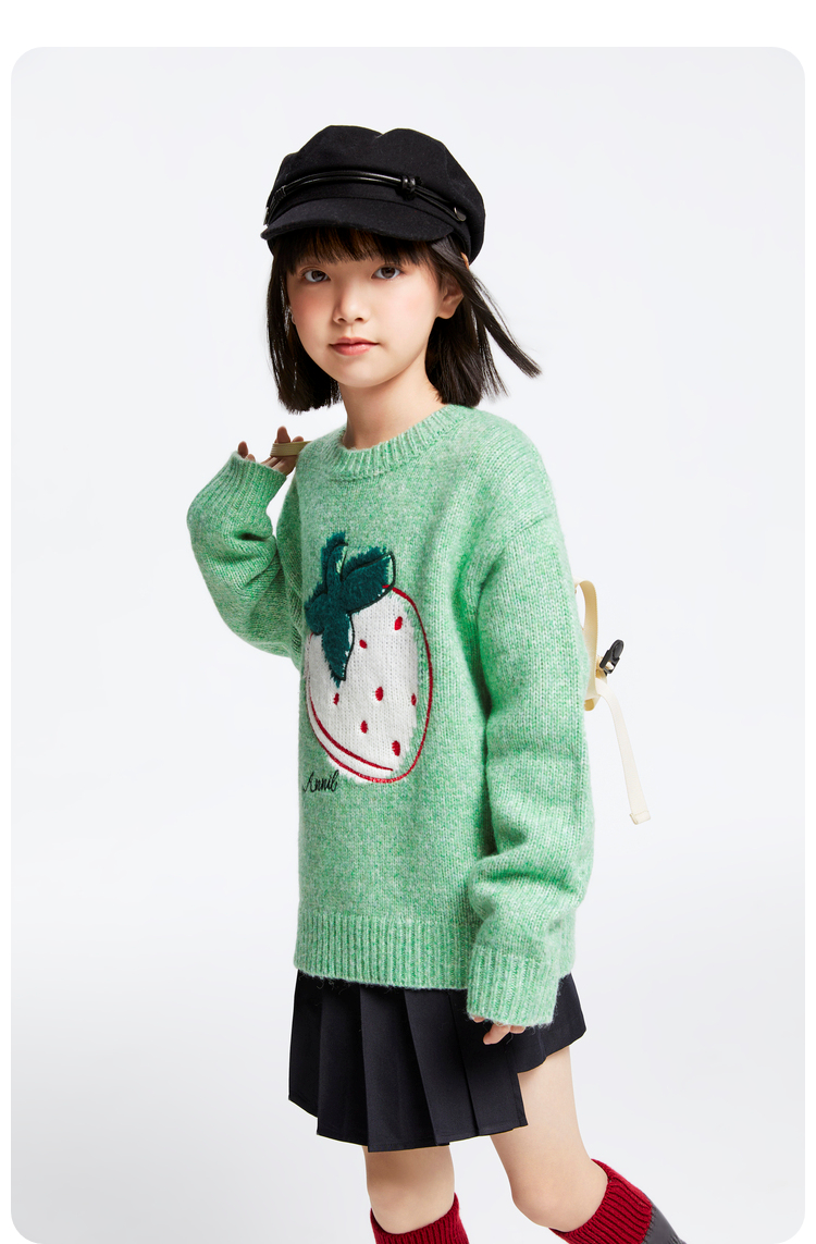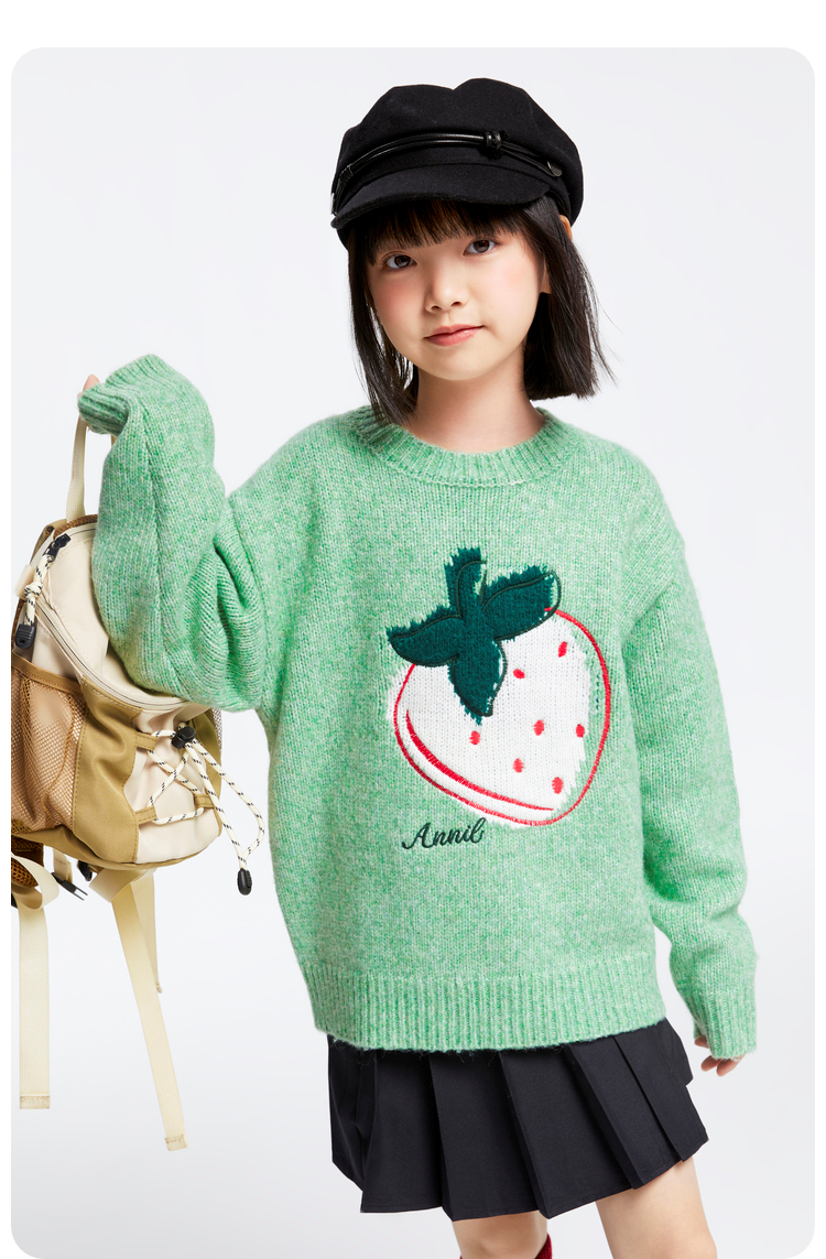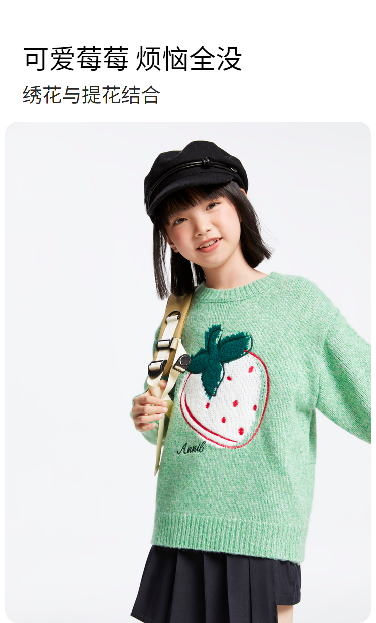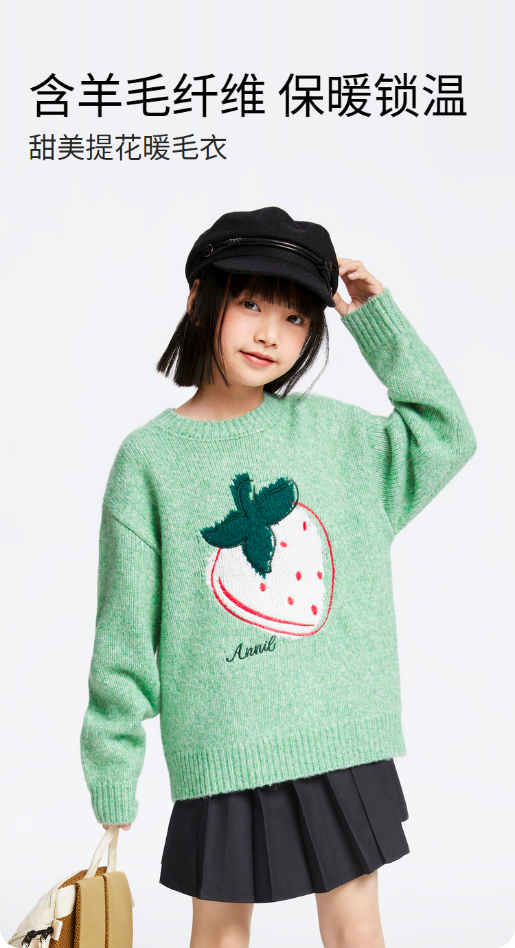 女童圆领长袖针织衫冬季新款安奈儿童装EG444514
