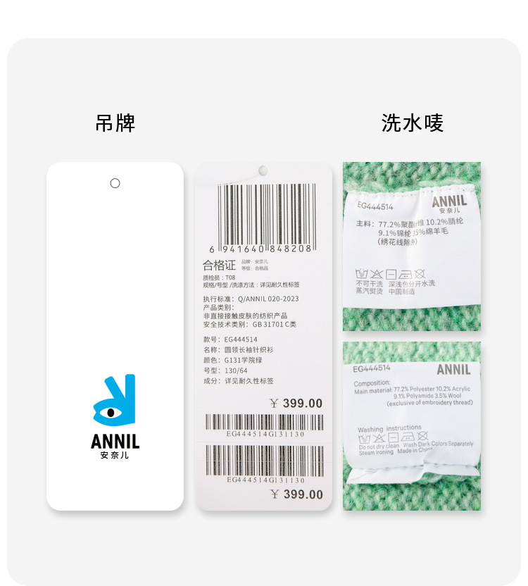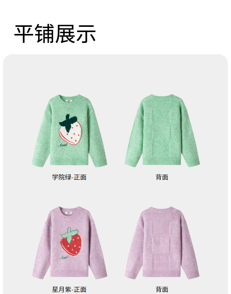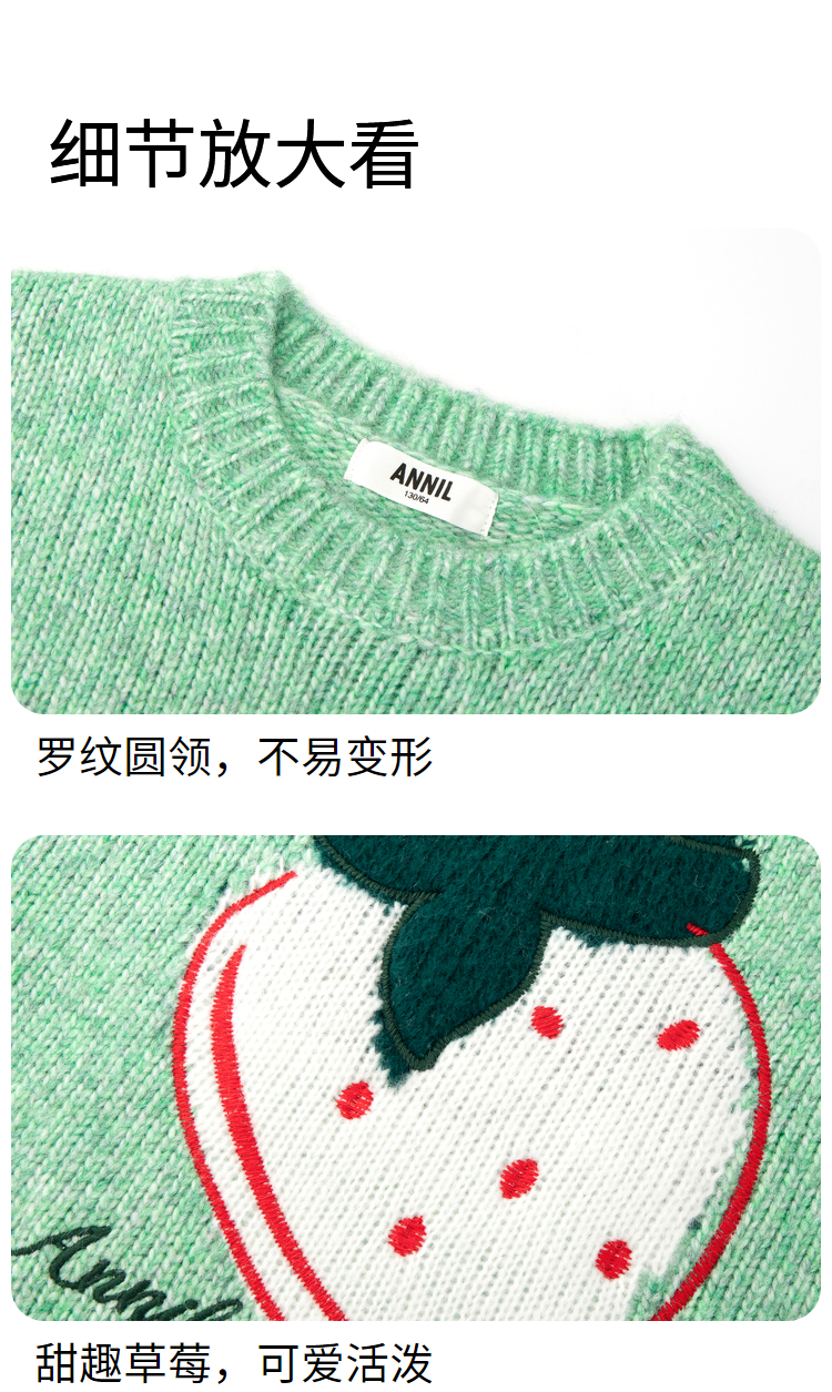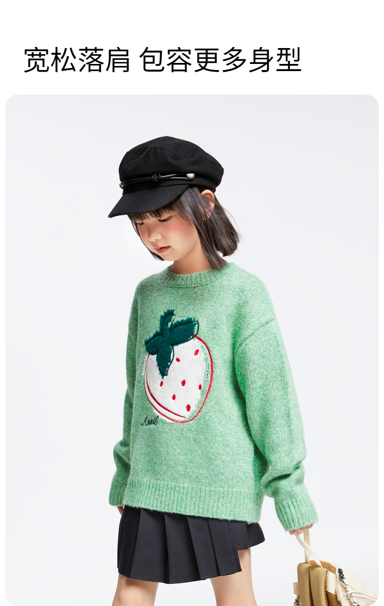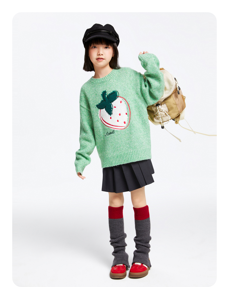 女童圆领长袖针织衫冬季新款安奈儿童装EG444514