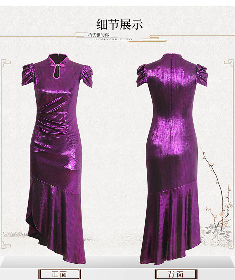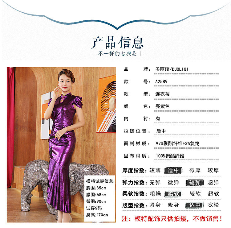 DLQ-A2589秋新款长款走秀高紫色鱼尾旗袍连衣裙