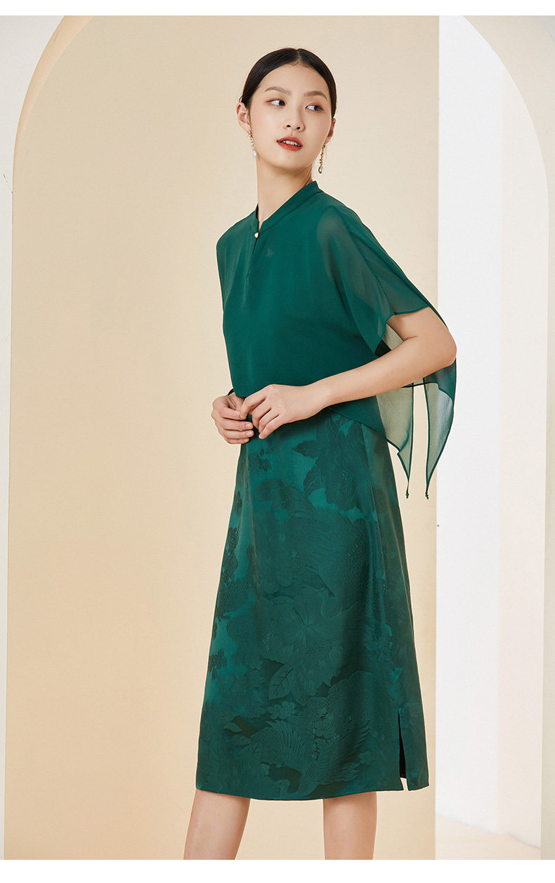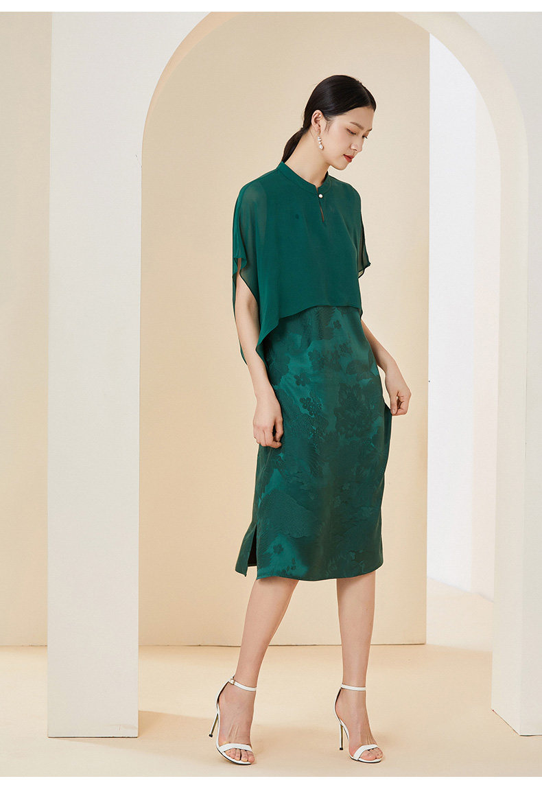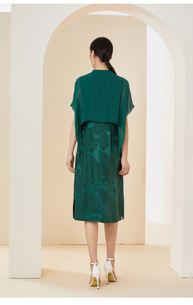 乔万尼夏季新款真丝桑蚕丝假两件连衣裙高端披肩设计EI2E708