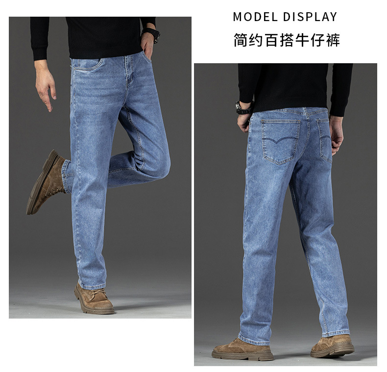 【DYG】大依优型大码男装加肥大码男装宽松刺绣直筒牛仔裤男百搭弹力商务牛仔长裤