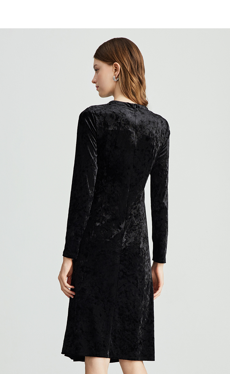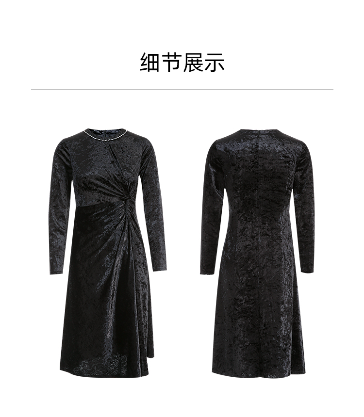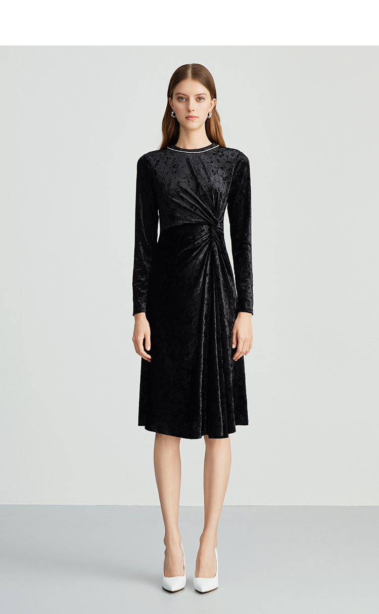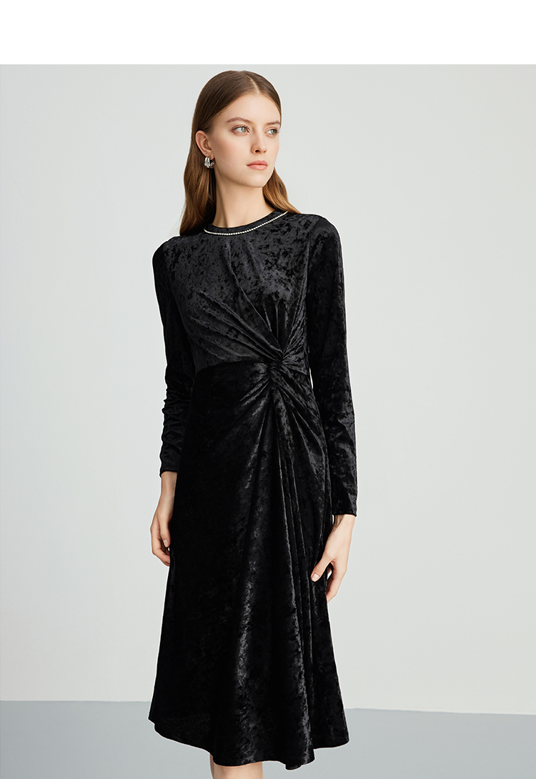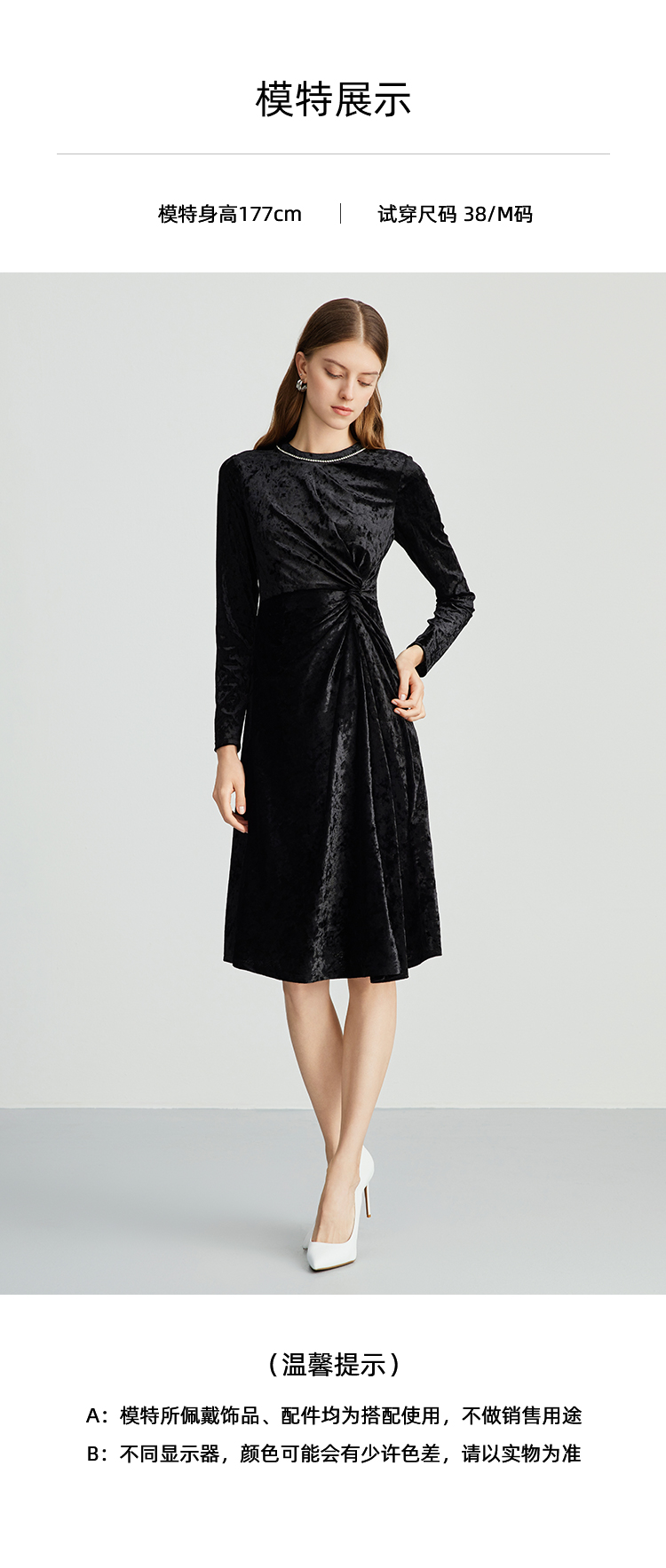 EITIE爱特爱优雅法式复古丝绒暗纹收腰黑色连衣裙秋季新款C2407402(轻微浮色 ,不要跟浅色系衣服一起穿/洗)