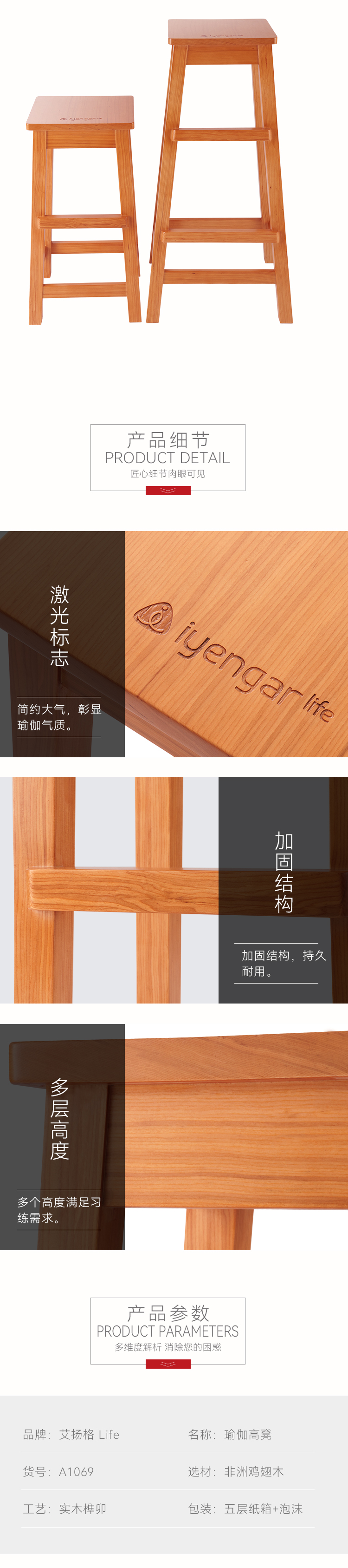艾扬格 Life 瑜伽高凳S码(鸡翅木)/高木凳/瑜伽辅具A1069