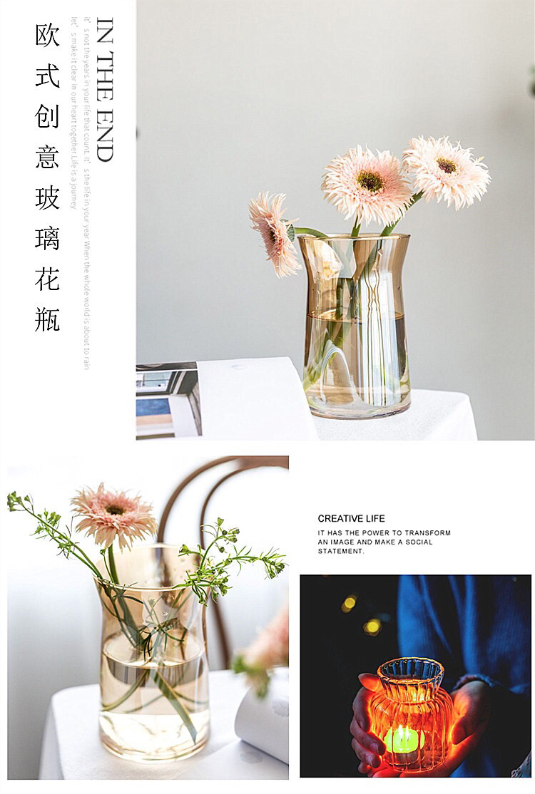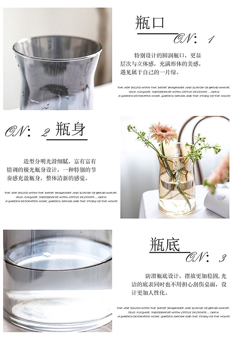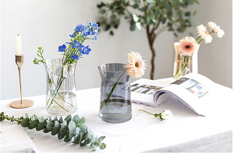 ins网红办公室花瓶北欧创意大口矮胖宽口向日葵花瓶水养玻璃透明