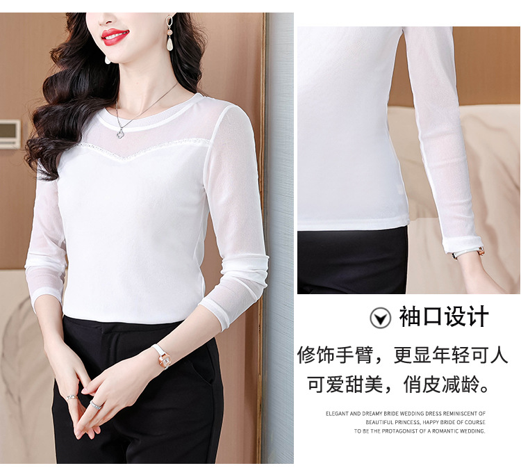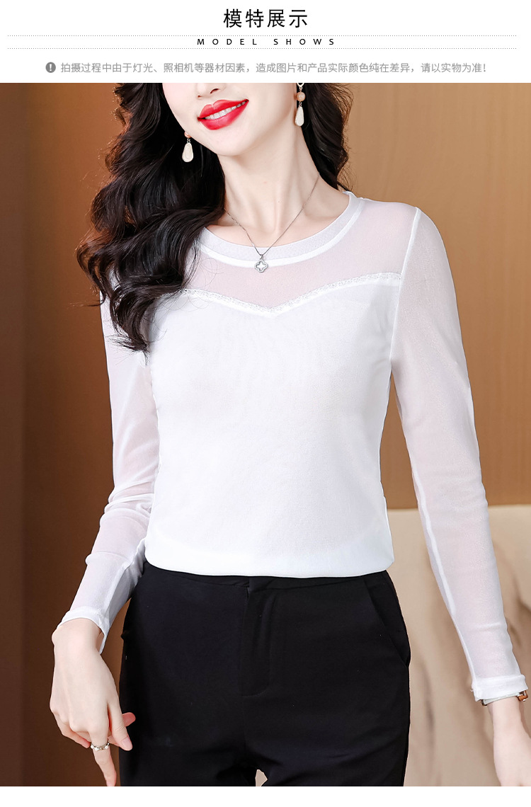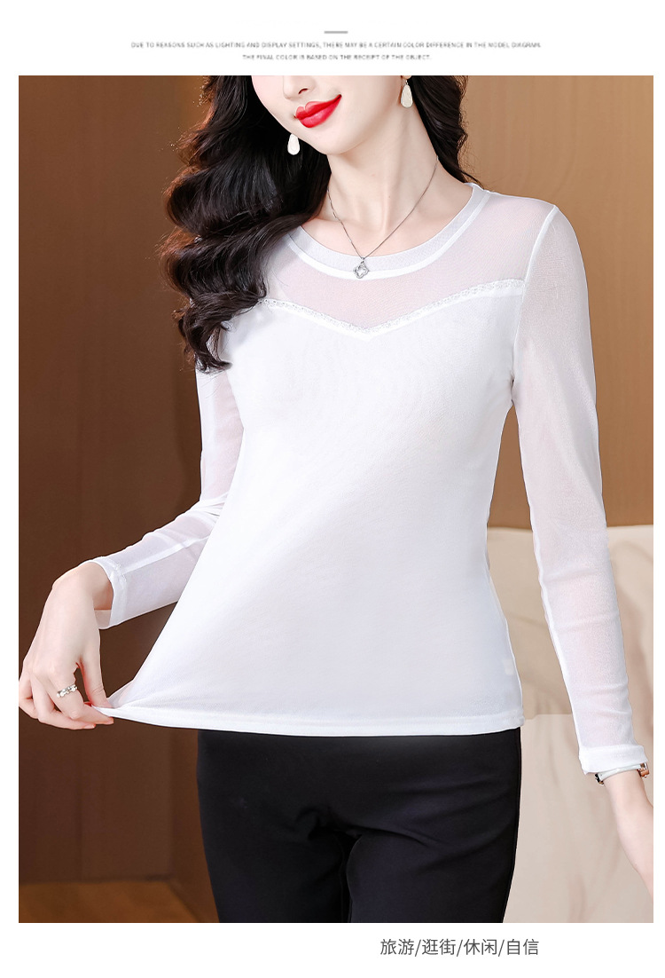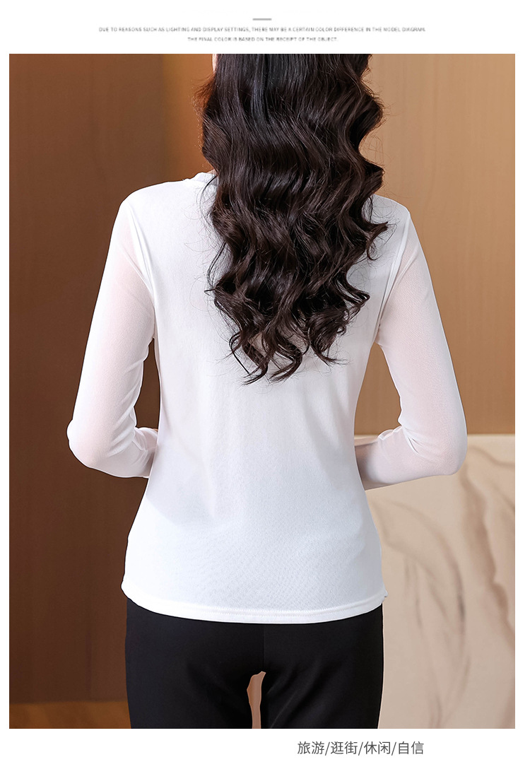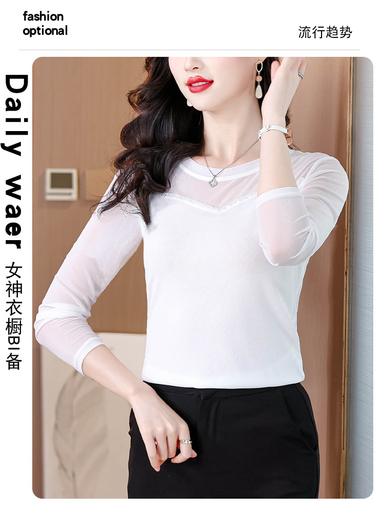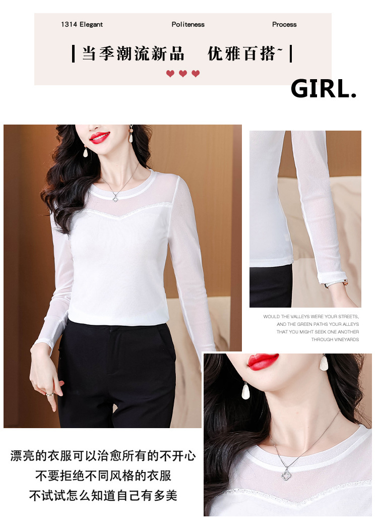 KQL C302N1776圆领钉珠双层网纱洋气修身T恤