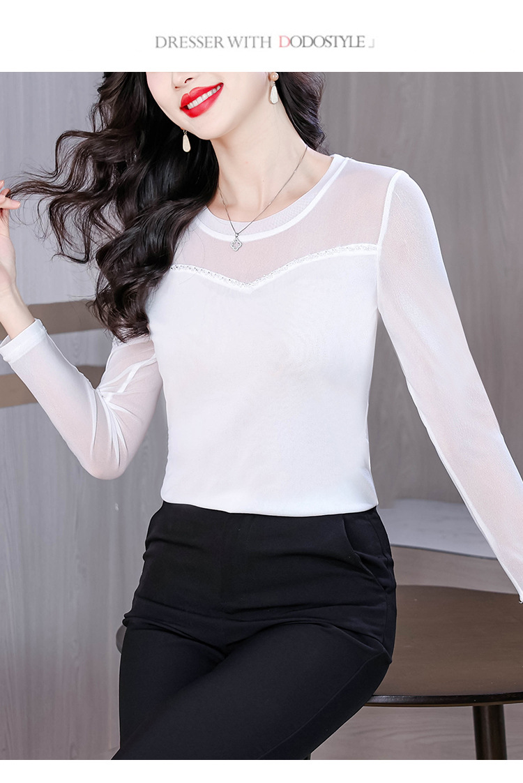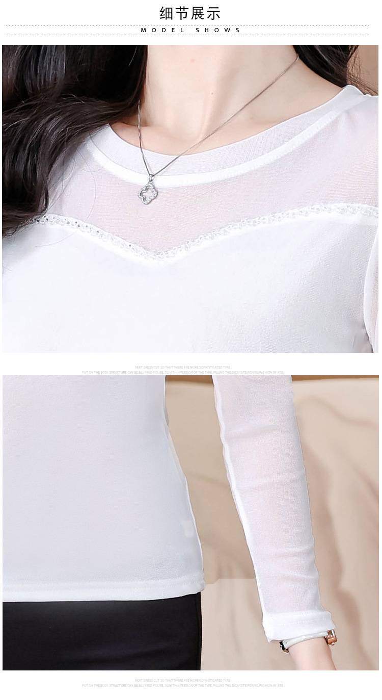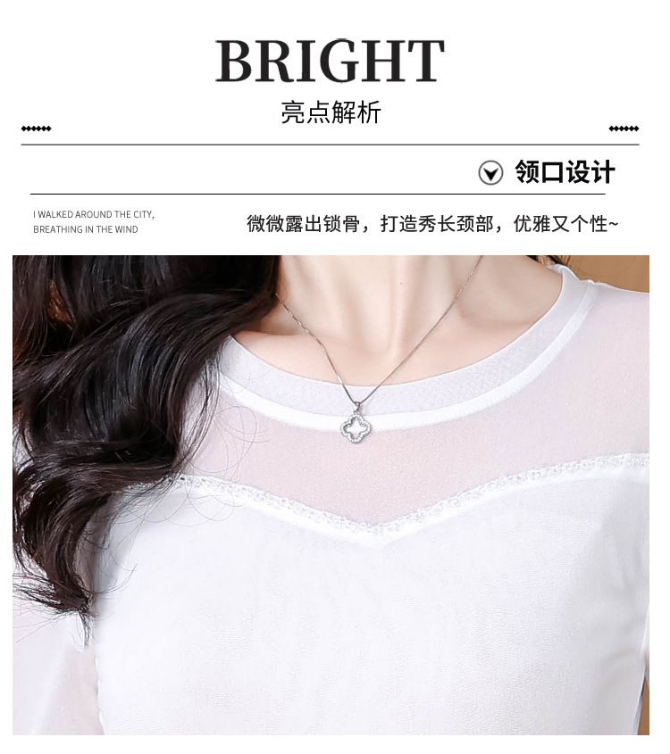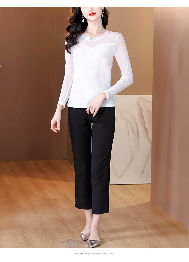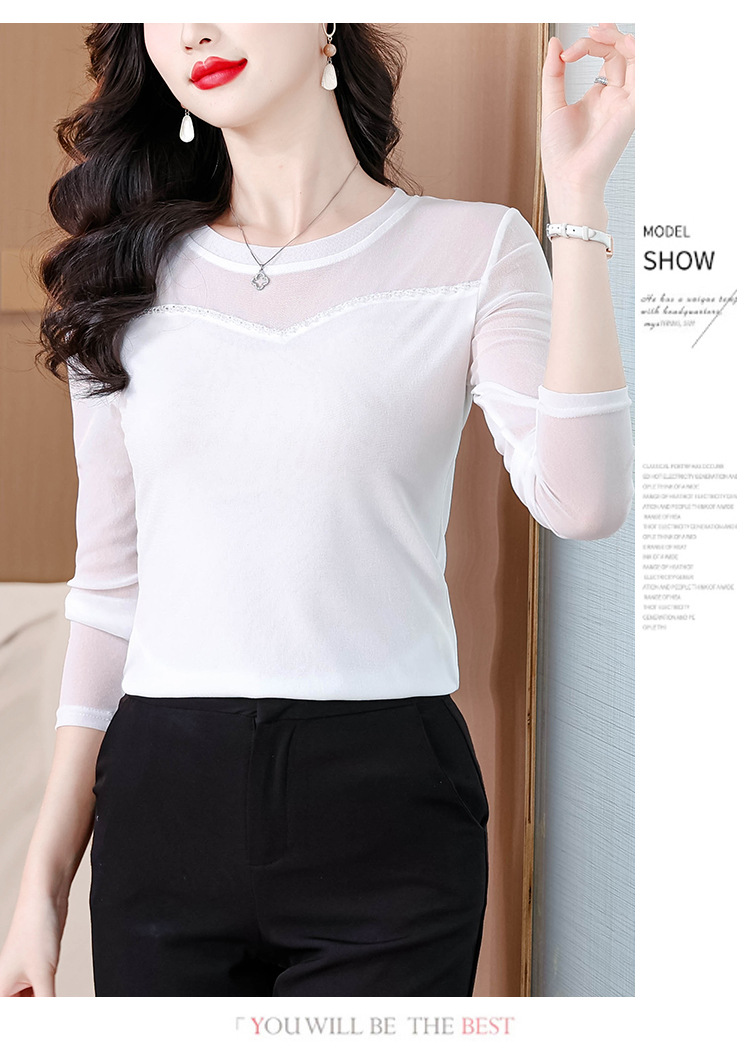 KQL C302N1776圆领钉珠双层网纱洋气修身T恤