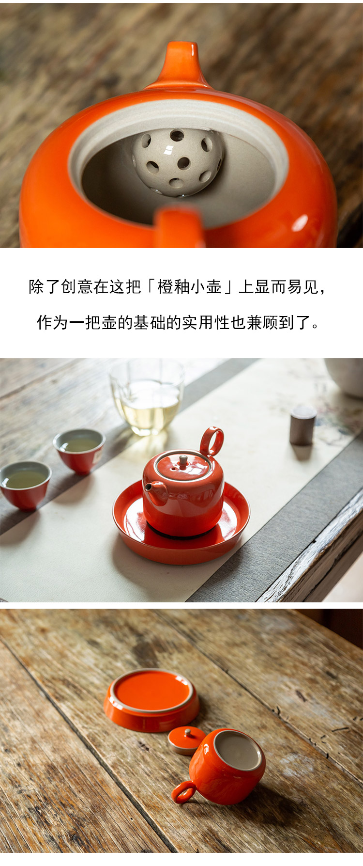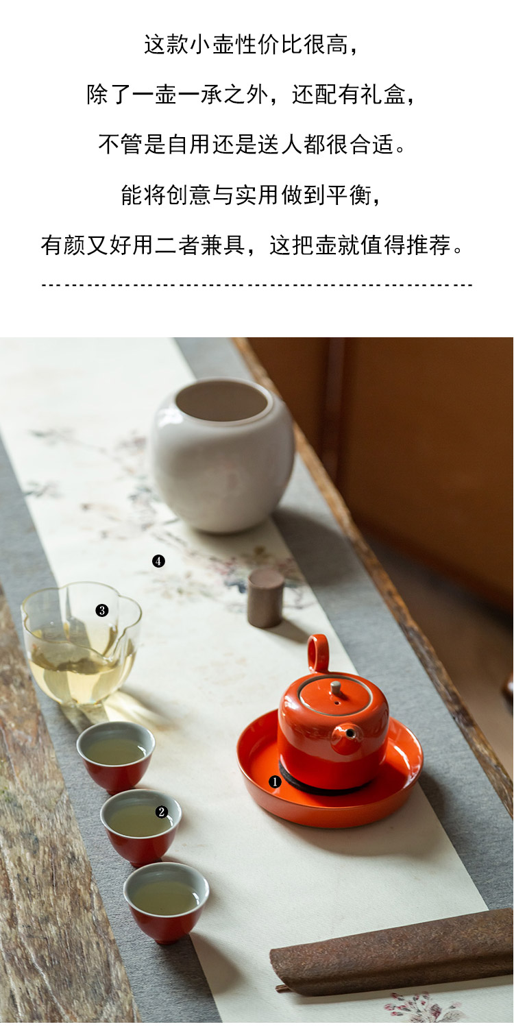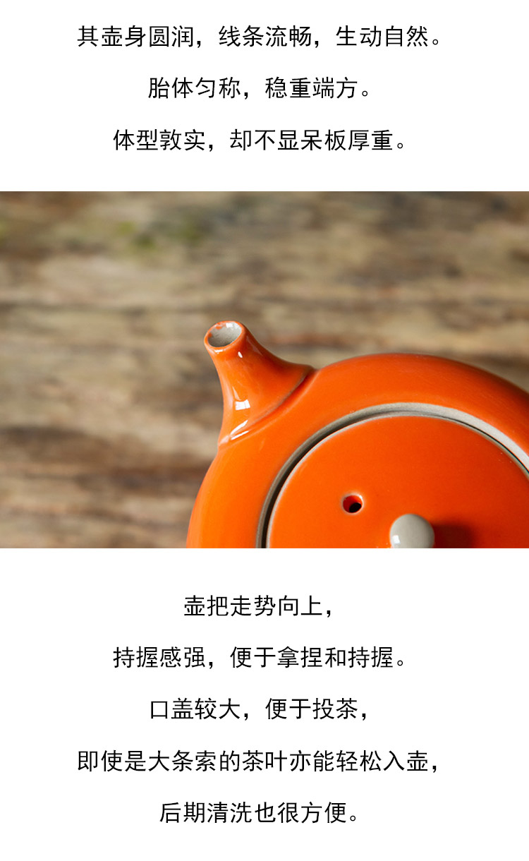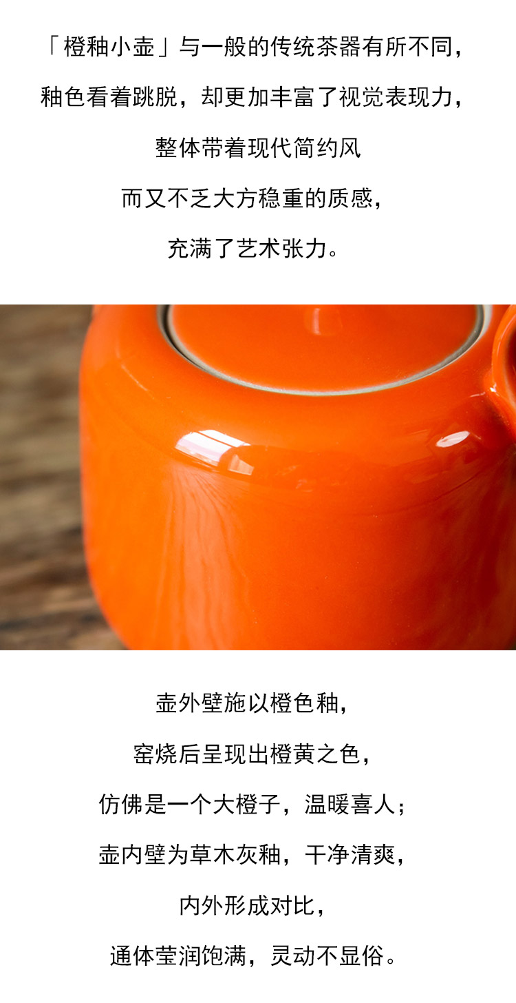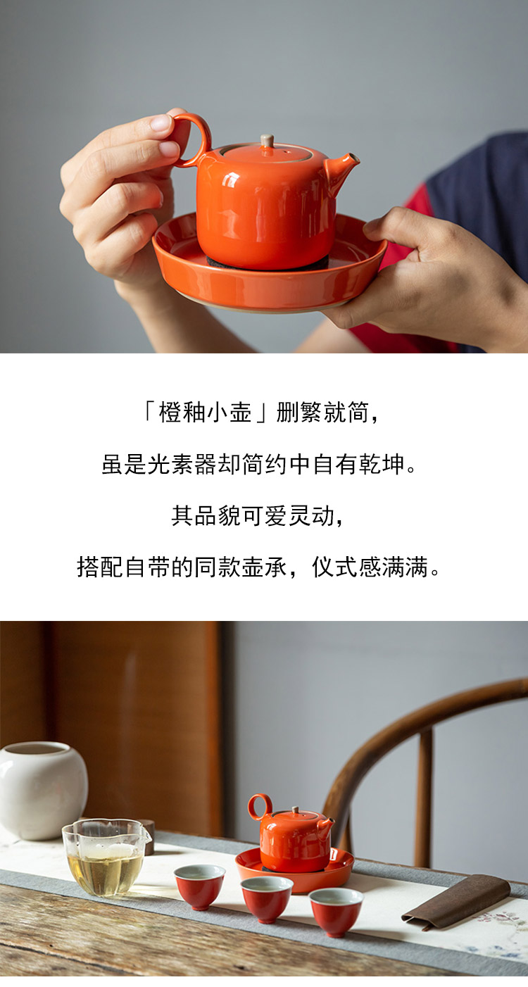 茶香记 橙釉小壶(含壶承)泡茶壶160ml陶瓷釉色亮丽简约风礼盒装