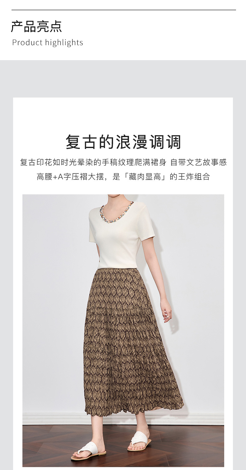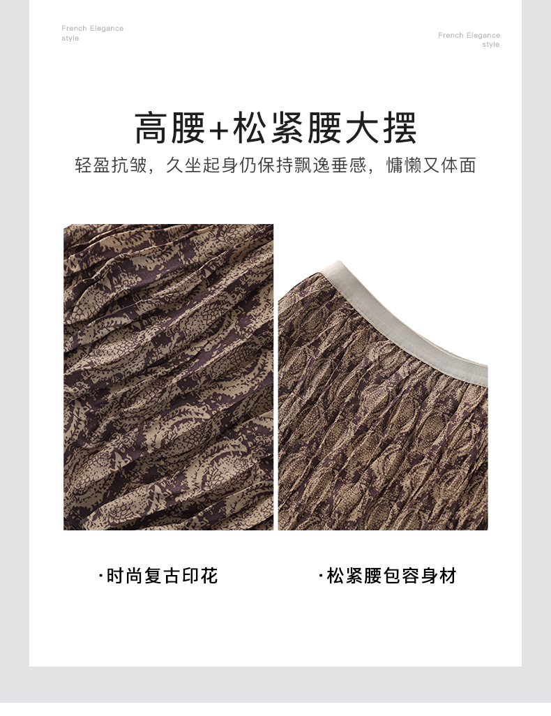 「高货wl」全新升级【铂金会员266/天猫359/差价93】(13124)洛诗琳法式复古印花半身裙2025夏新款褶皱度假风半裙女
