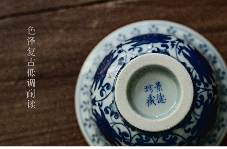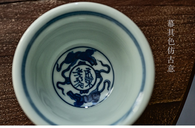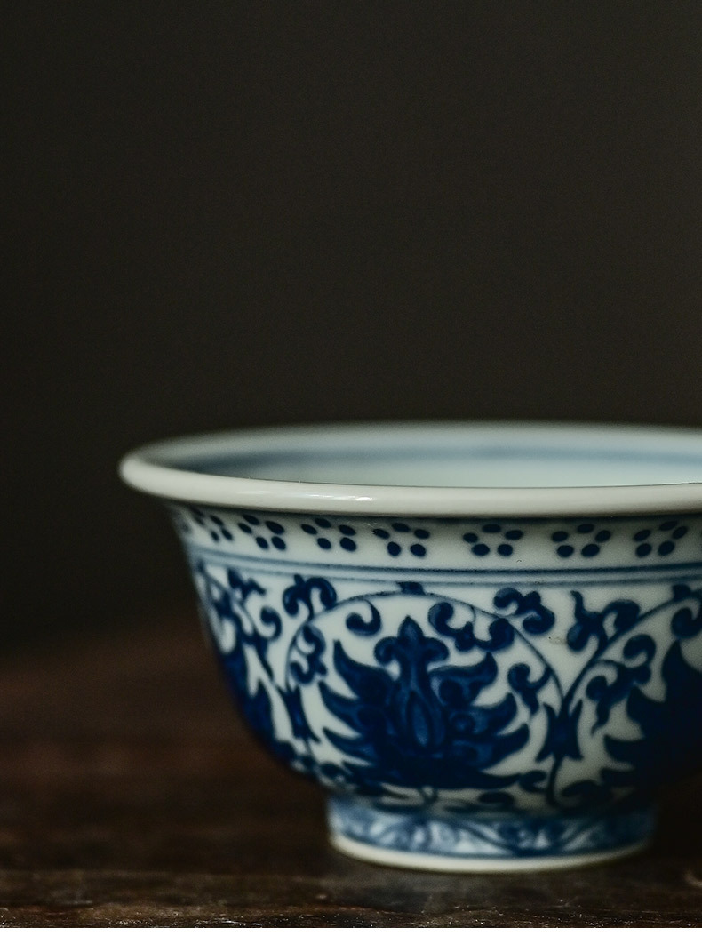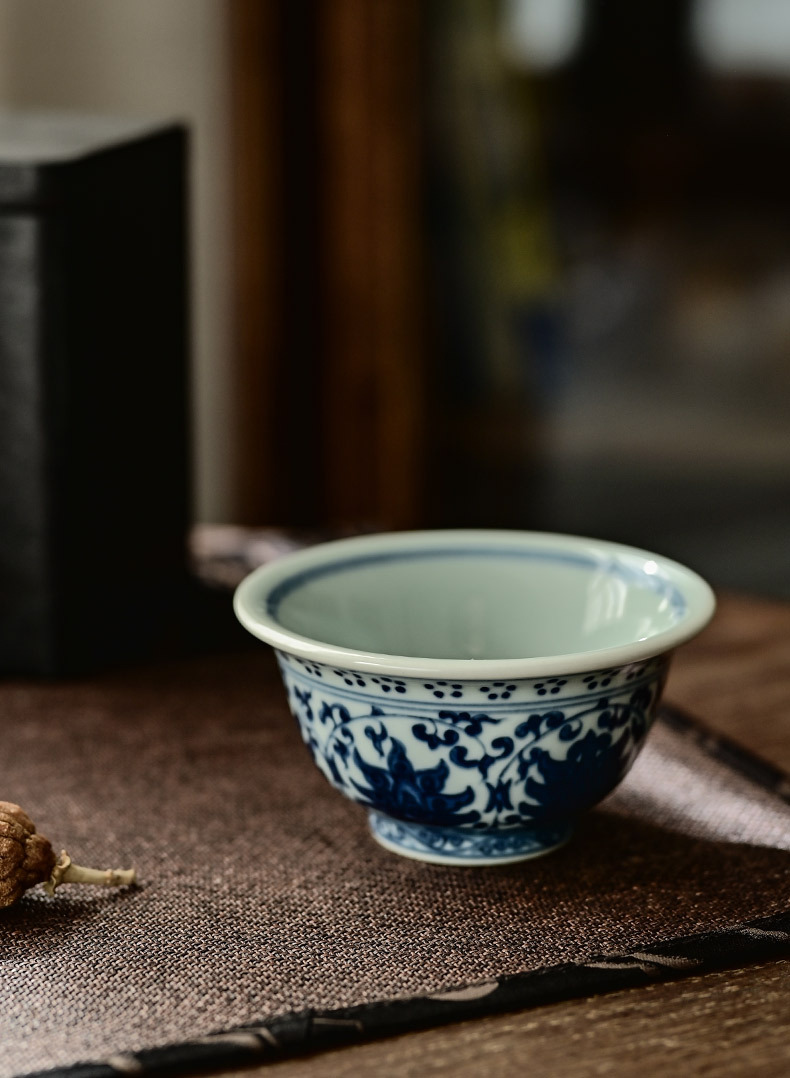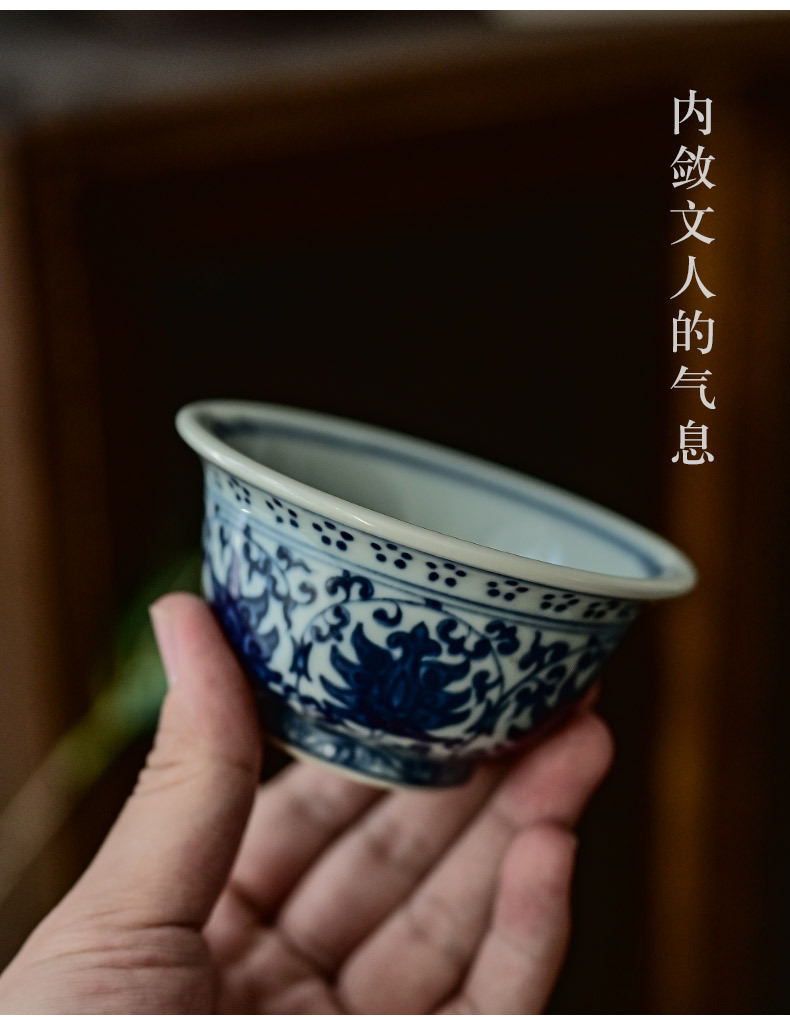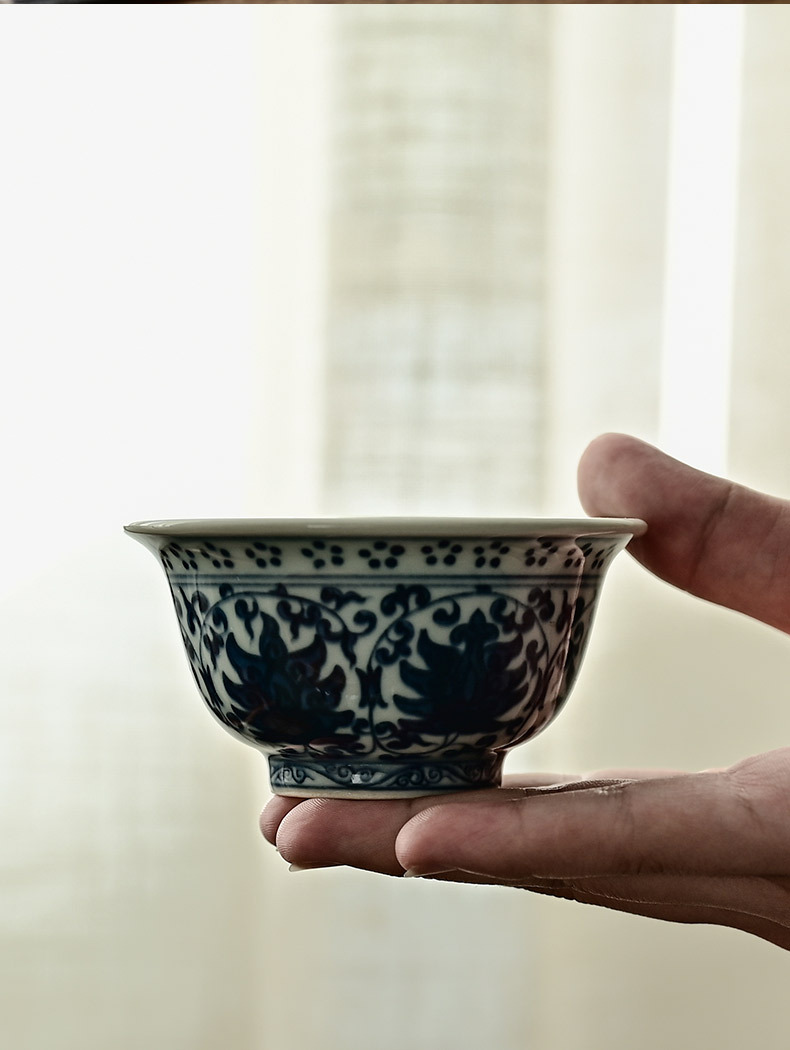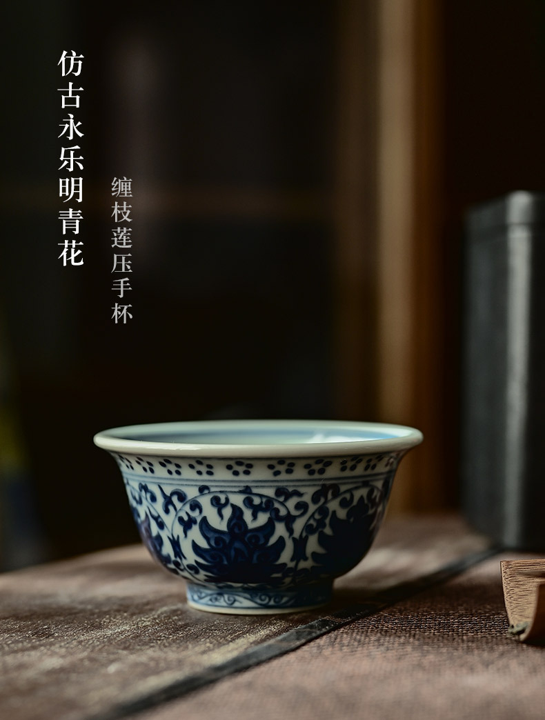 「景德镇手绘仿大明永乐青花陶瓷压手杯」复古内双狮原版茶杯品茗杯 主人杯