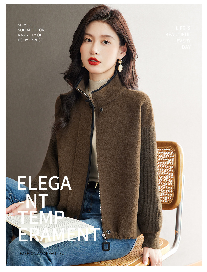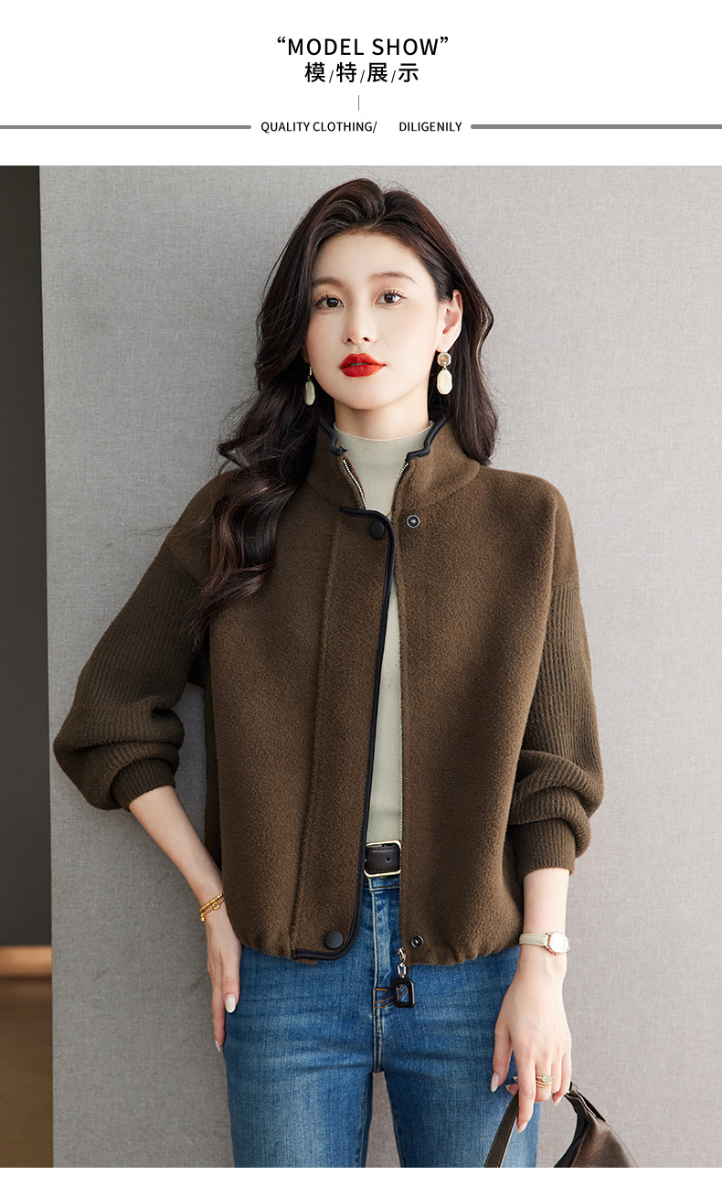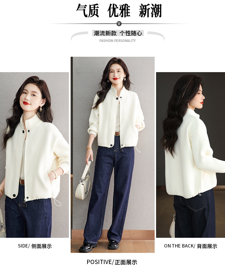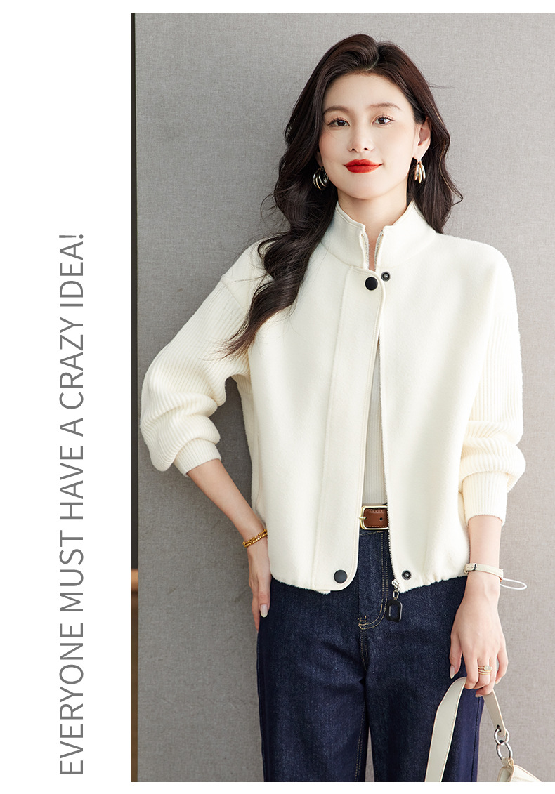 XFY-3102立领外套女2025新款气质轻奢高级感毛呢开衫洋气休闲秋装外搭上衣