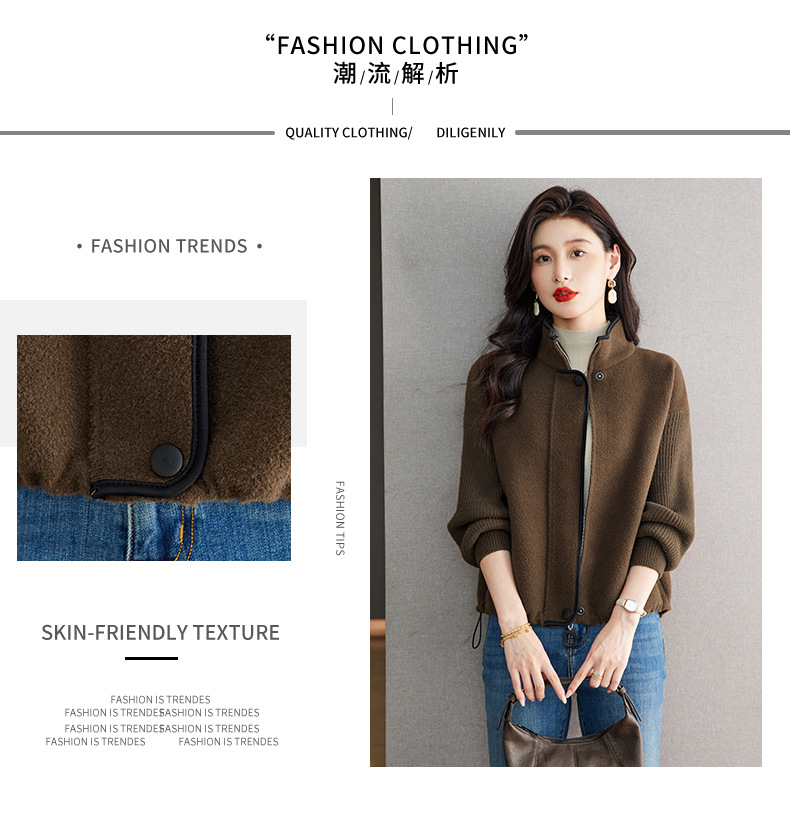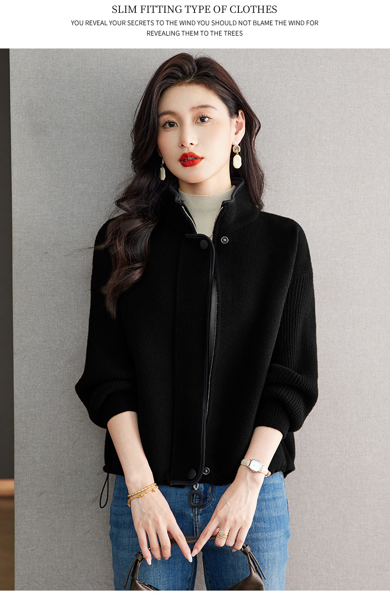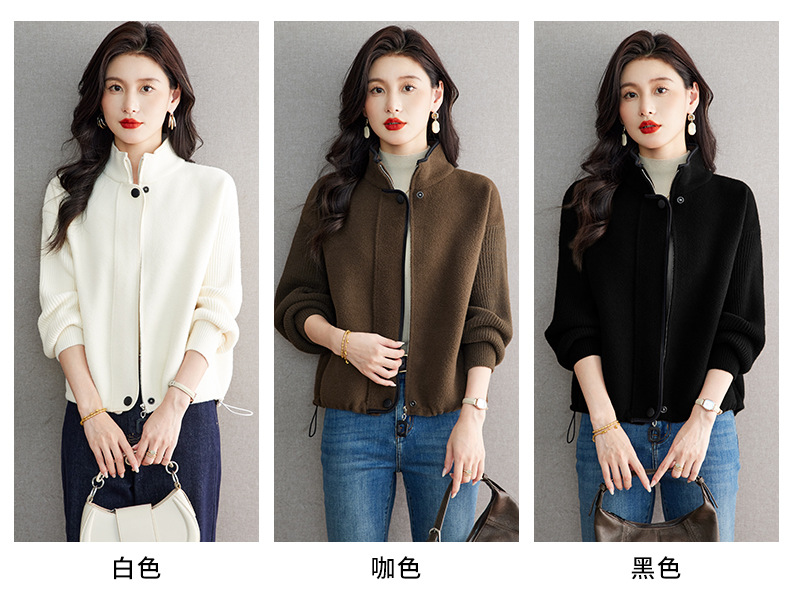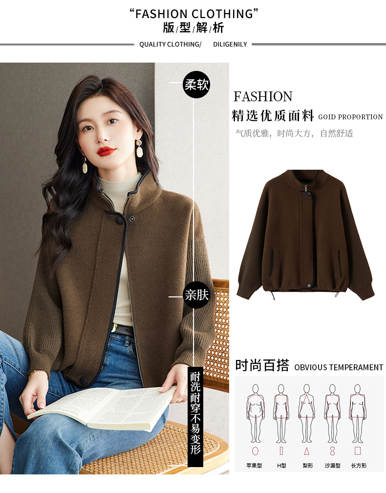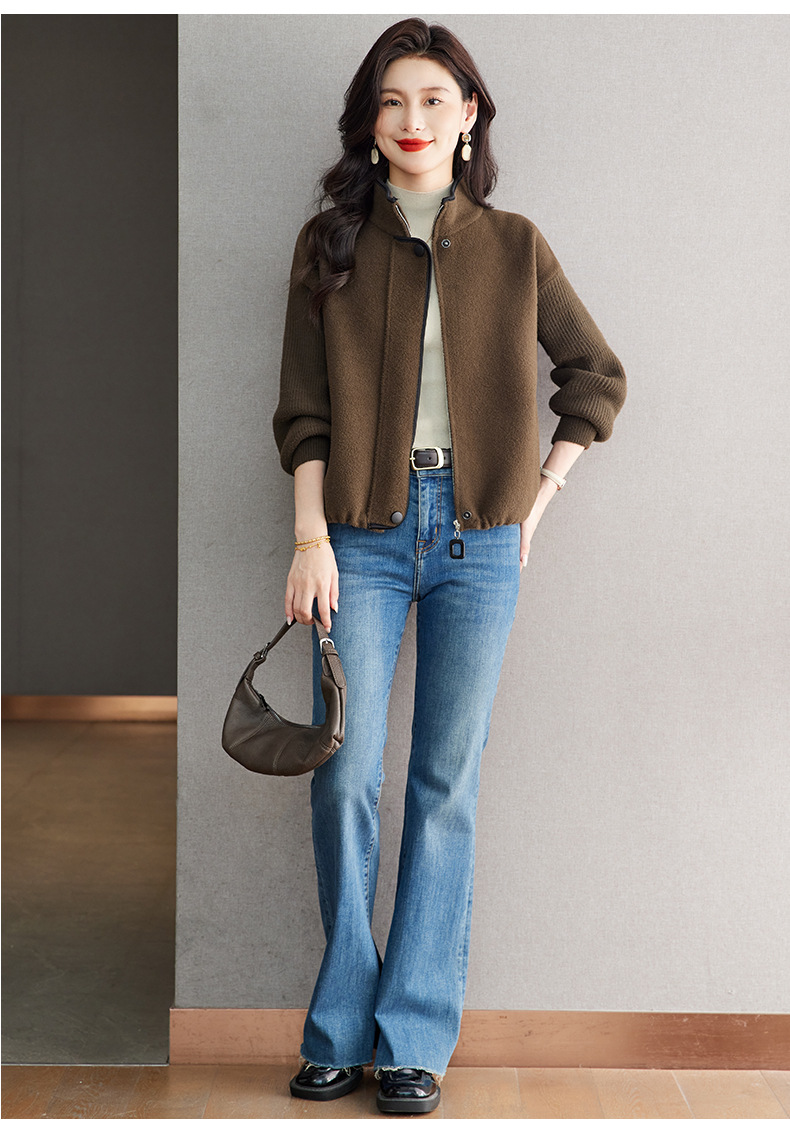 XFY-3102立领外套女2025新款气质轻奢高级感毛呢开衫洋气休闲秋装外搭上衣