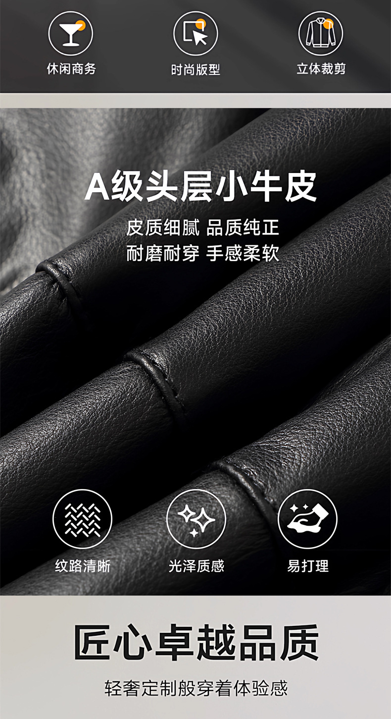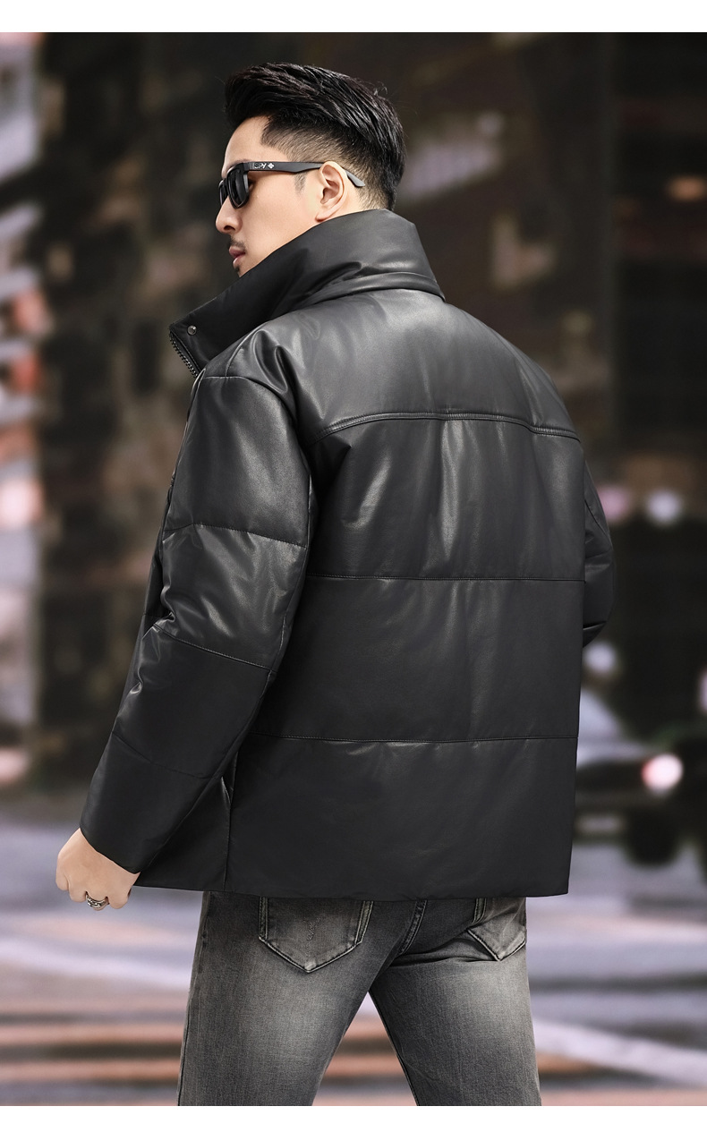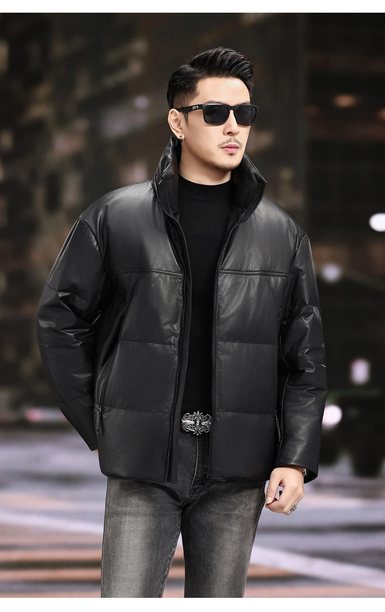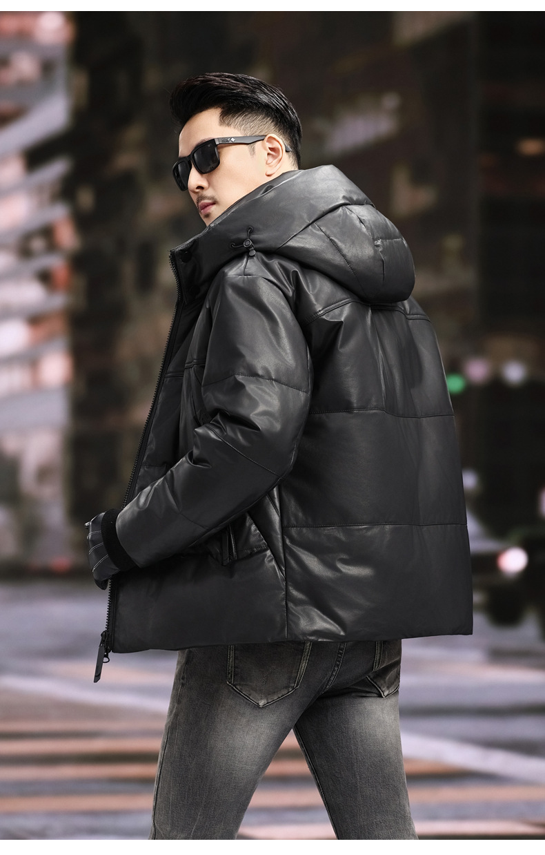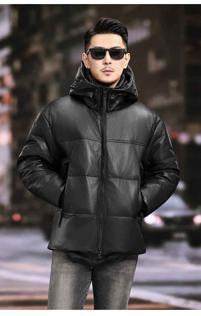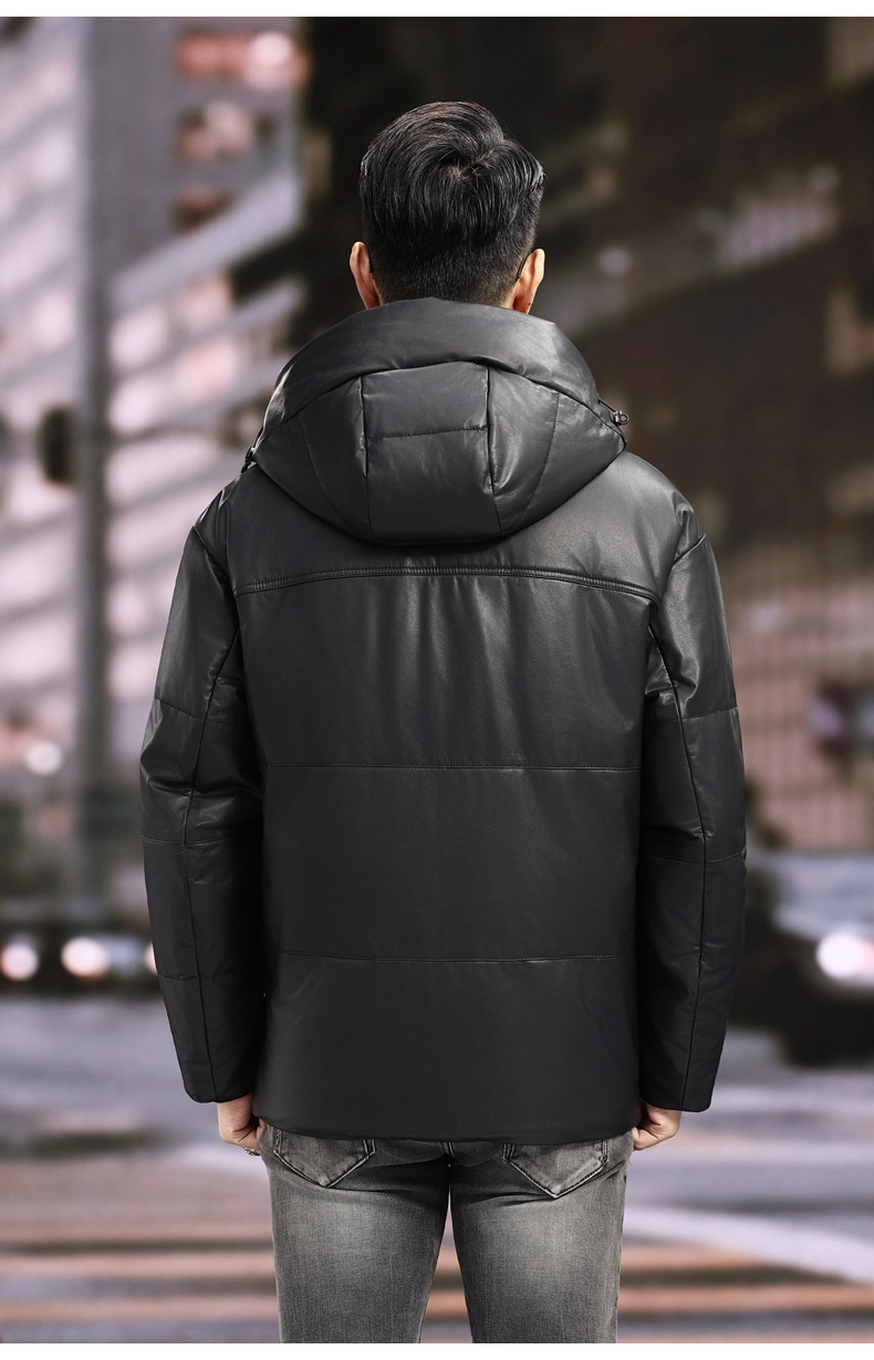 丁摩 海宁真皮皮衣男士牛皮羽绒服可脱卸连帽白鹅绒保暖外套6815