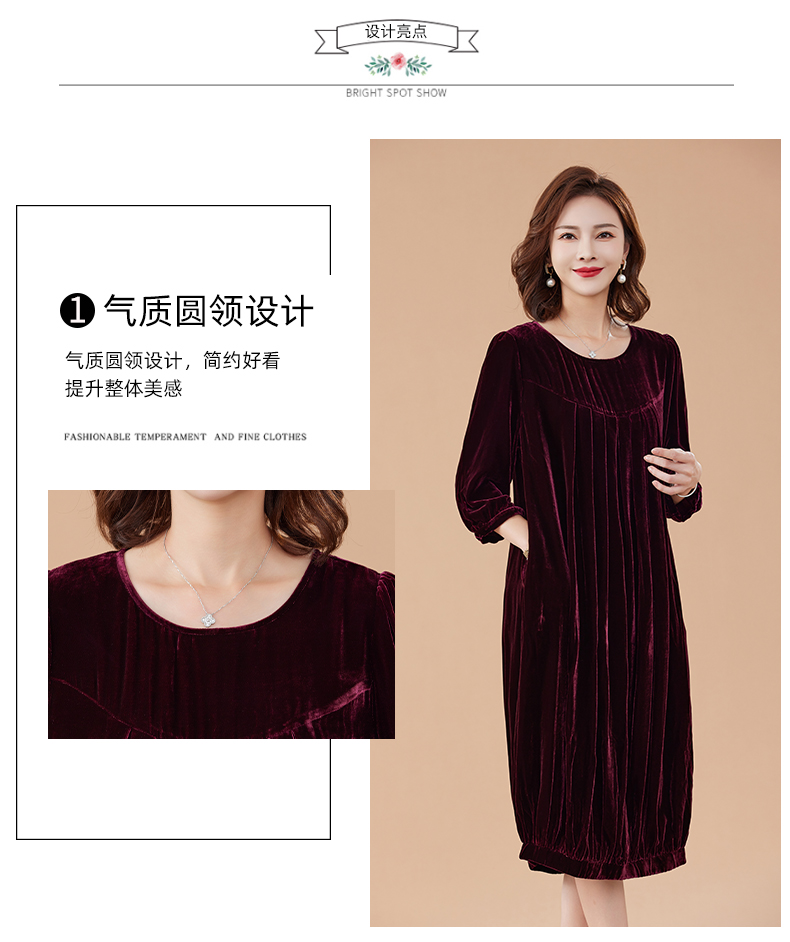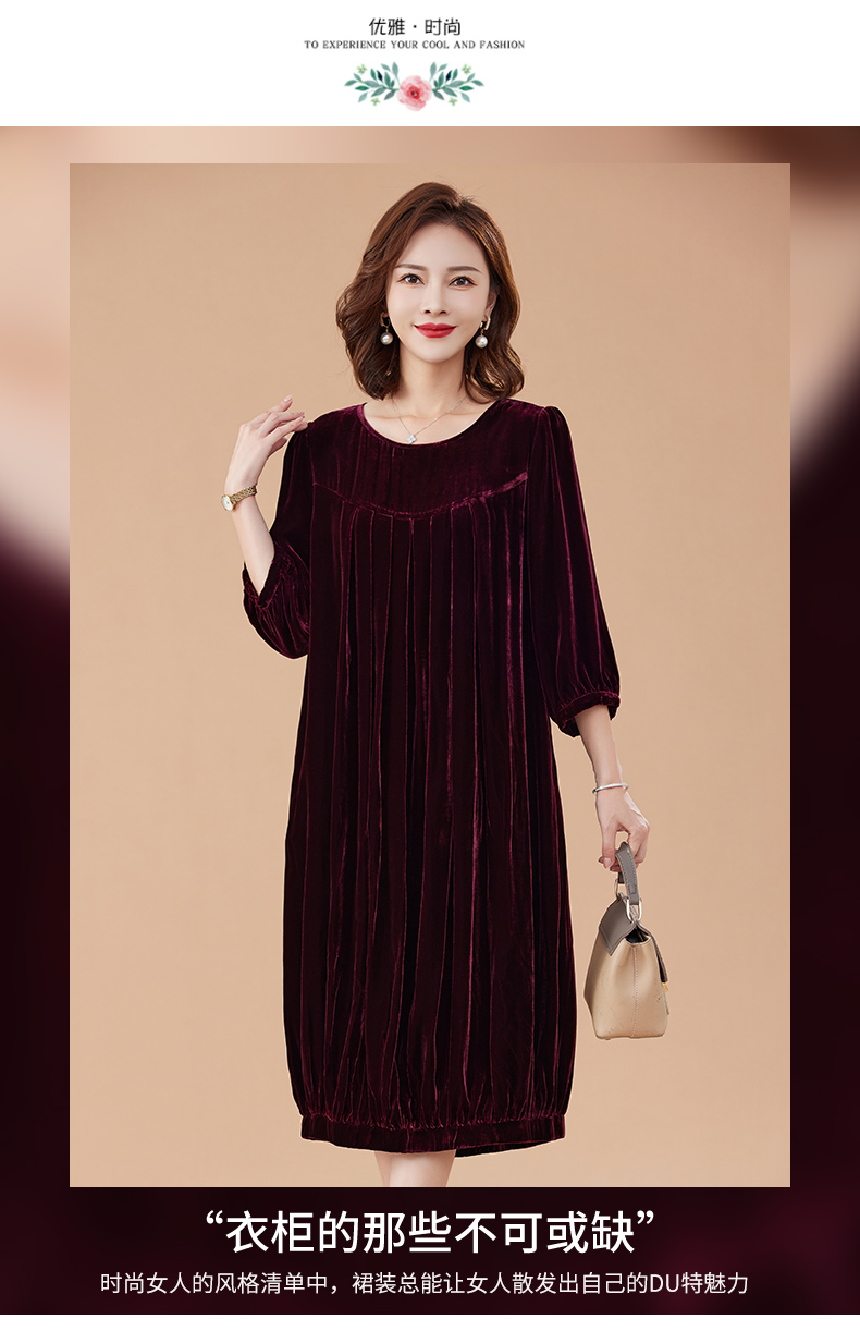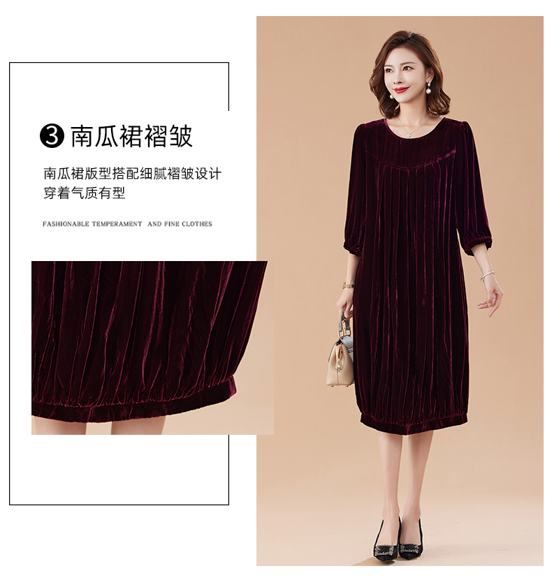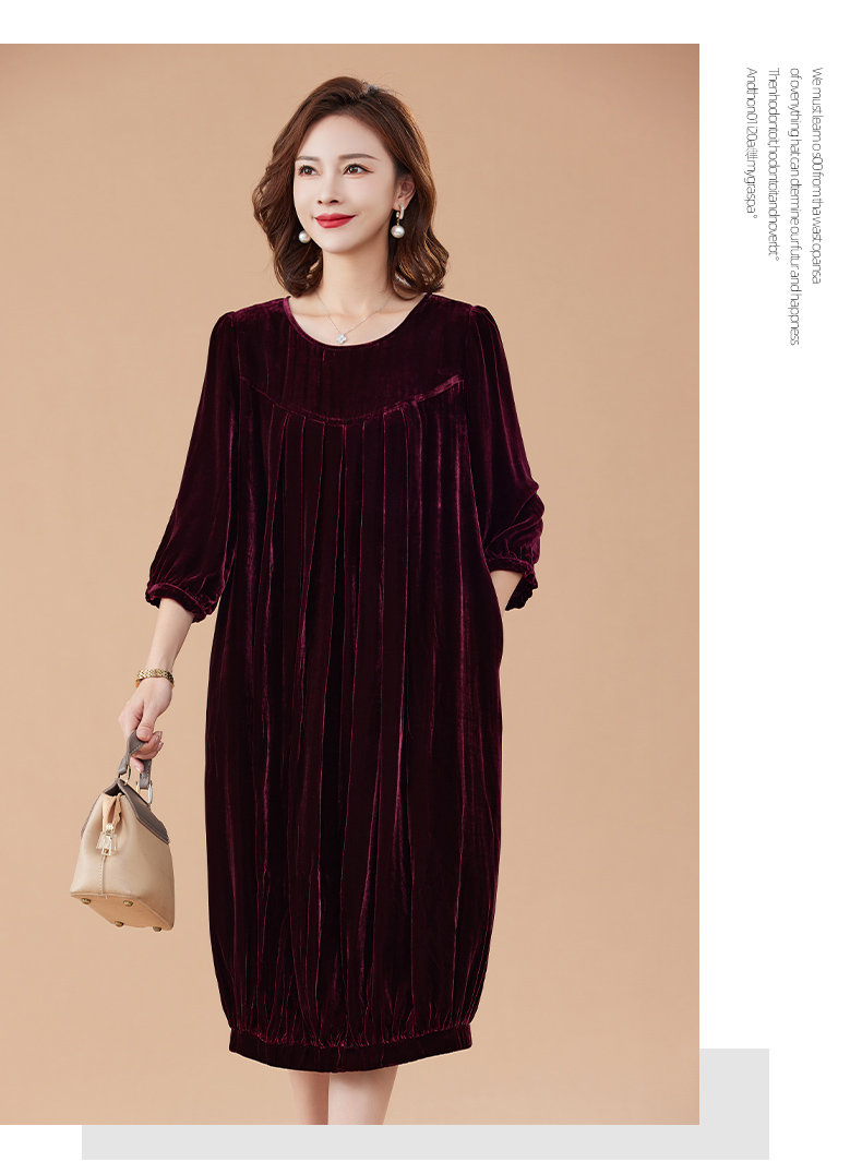 百搭显瘦,通勤七分袖中长款真丝植绒大码连衣裙HR-JILIYA2337