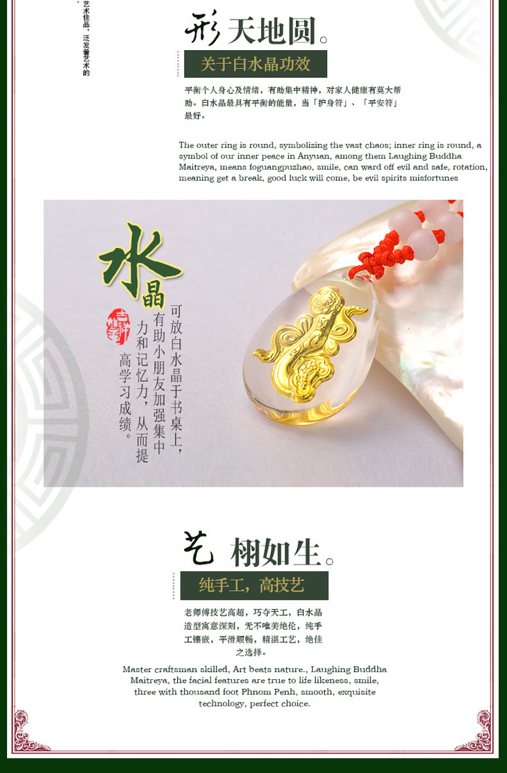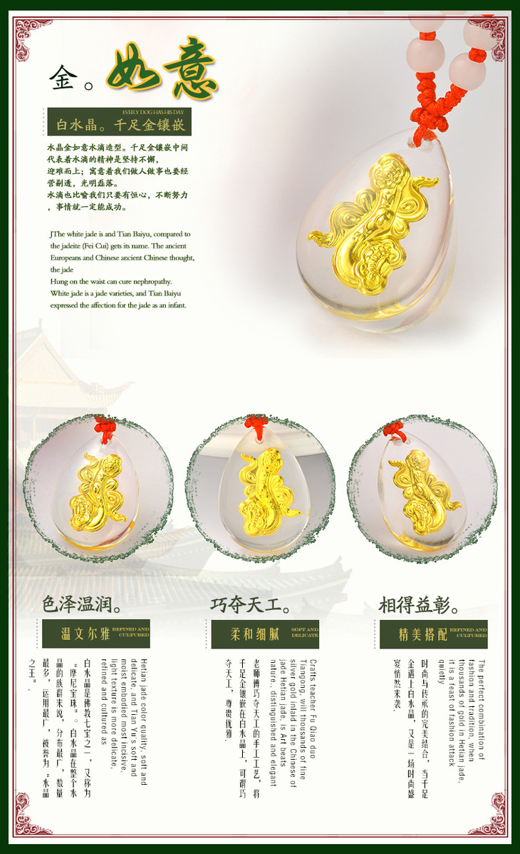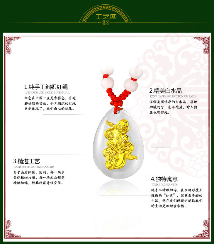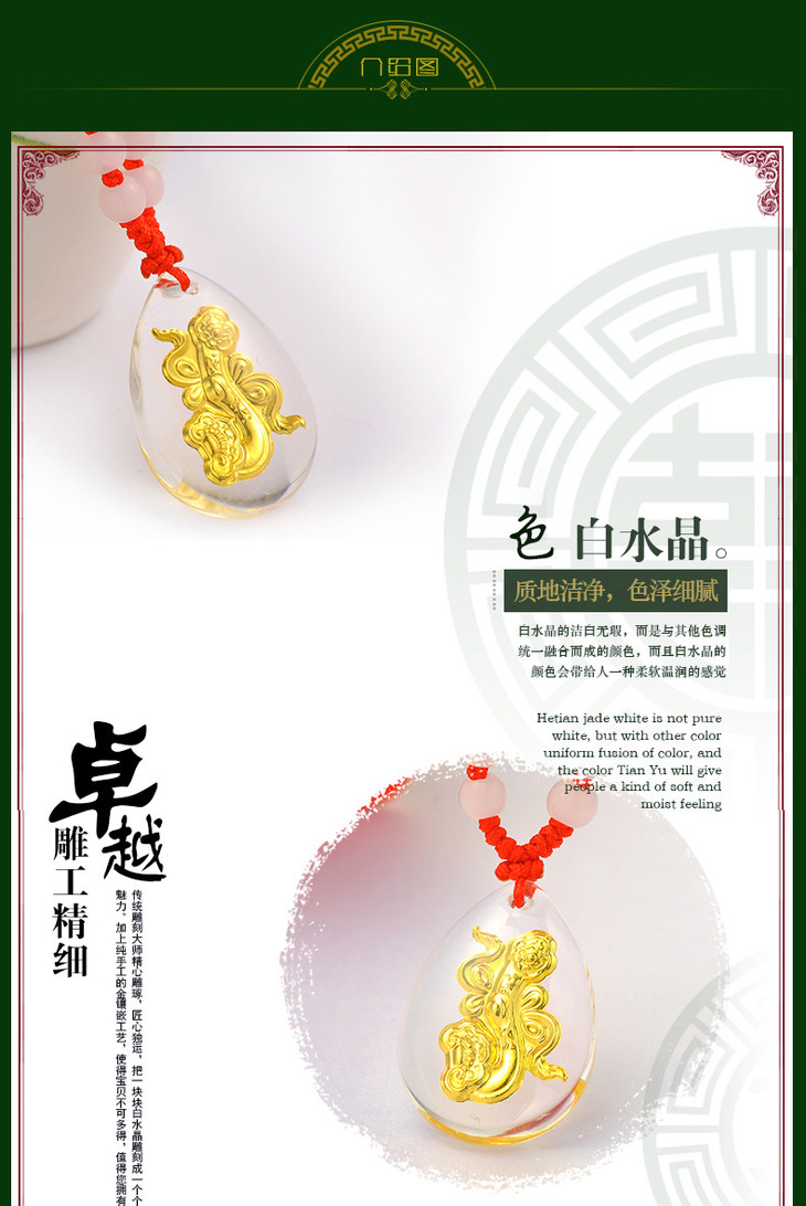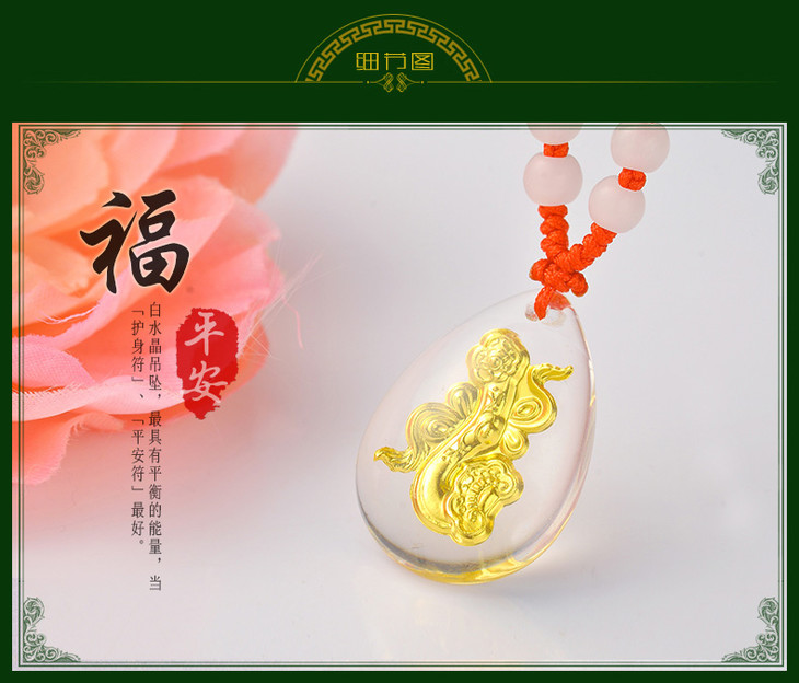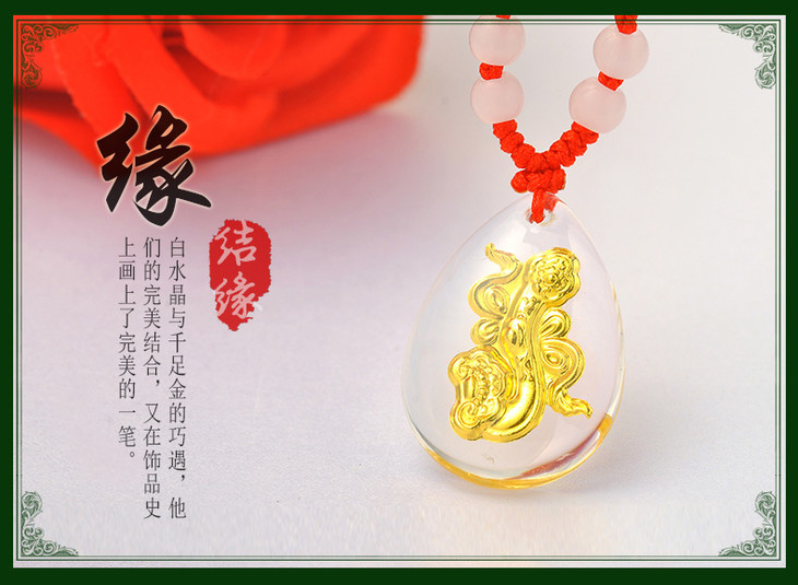 金如意吊坠金镶玉白水晶送女友闺蜜节日生日礼物