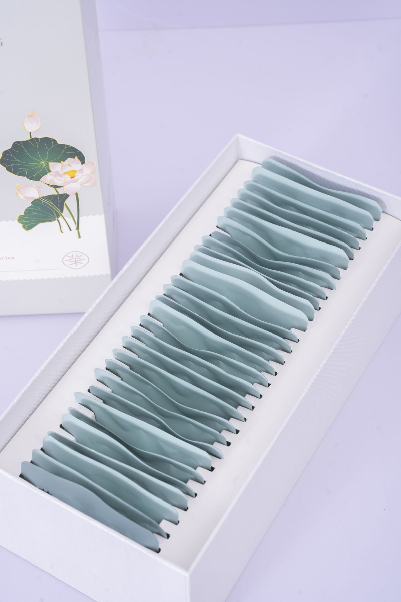 这四款袋泡茶使用玉米纤维茶泡袋,透明可看见茶叶原料。