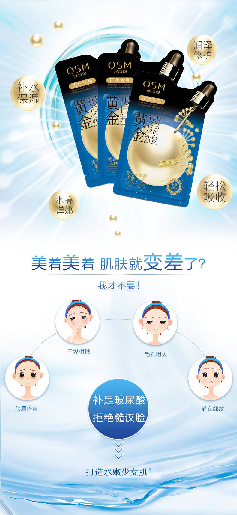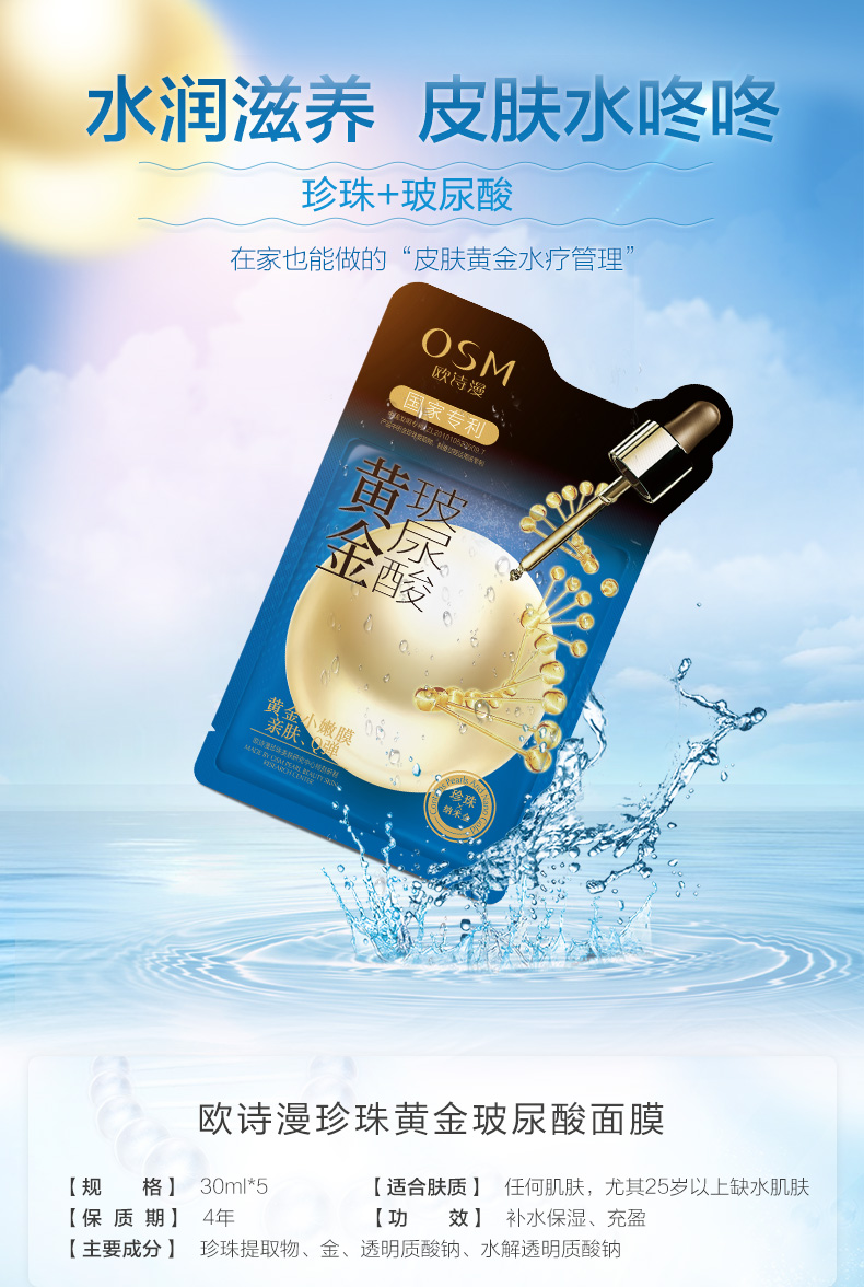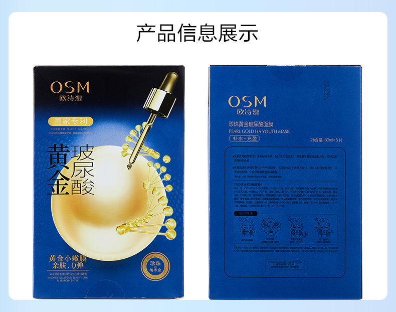 【100元3盒】欧诗漫黄金玻尿酸面膜(5片/盒)补水充盈 黄金水分管理