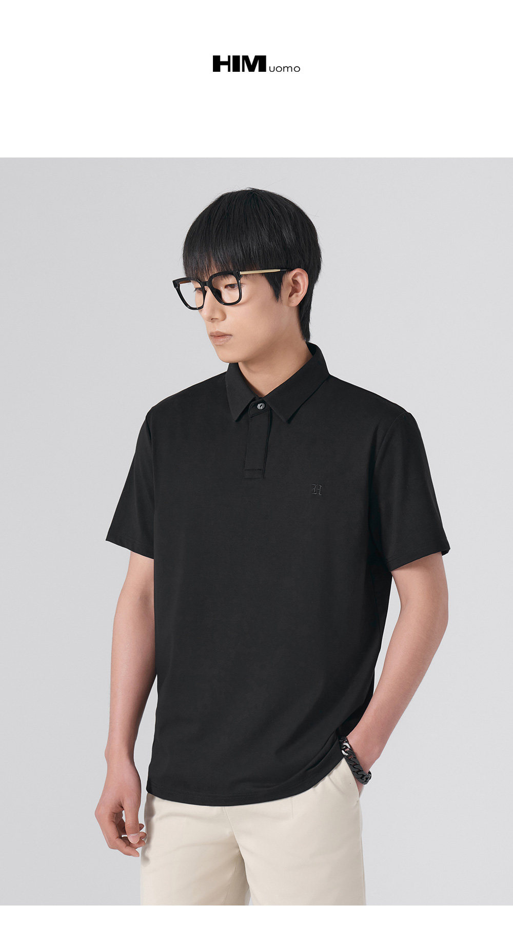 HIM漢崇 商务修身POLO衫男字母刺绣舒适休闲短袖反领T恤 2026夏季