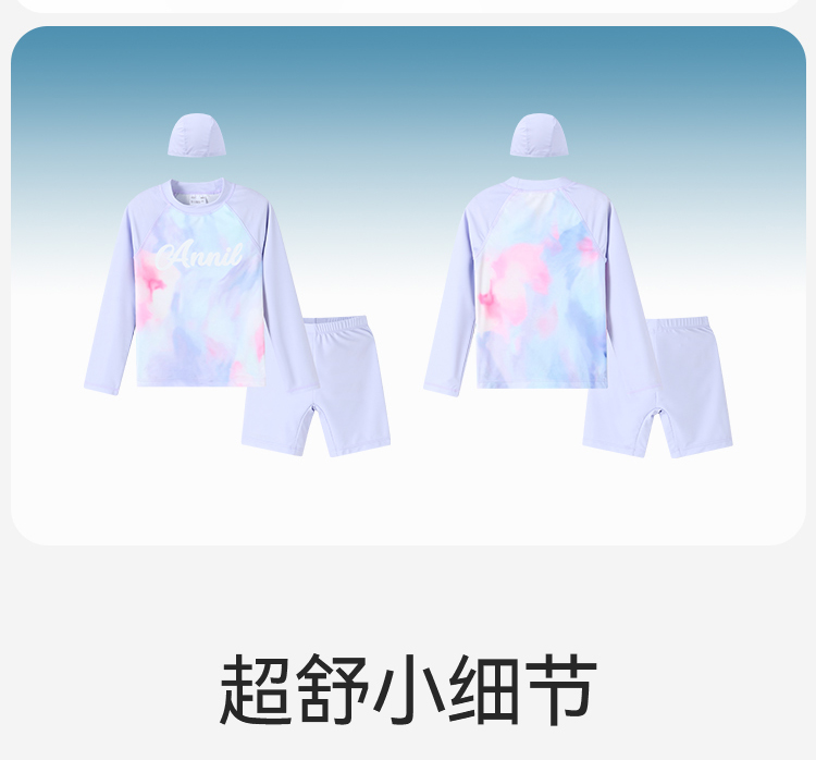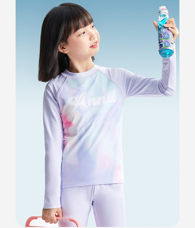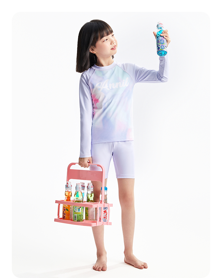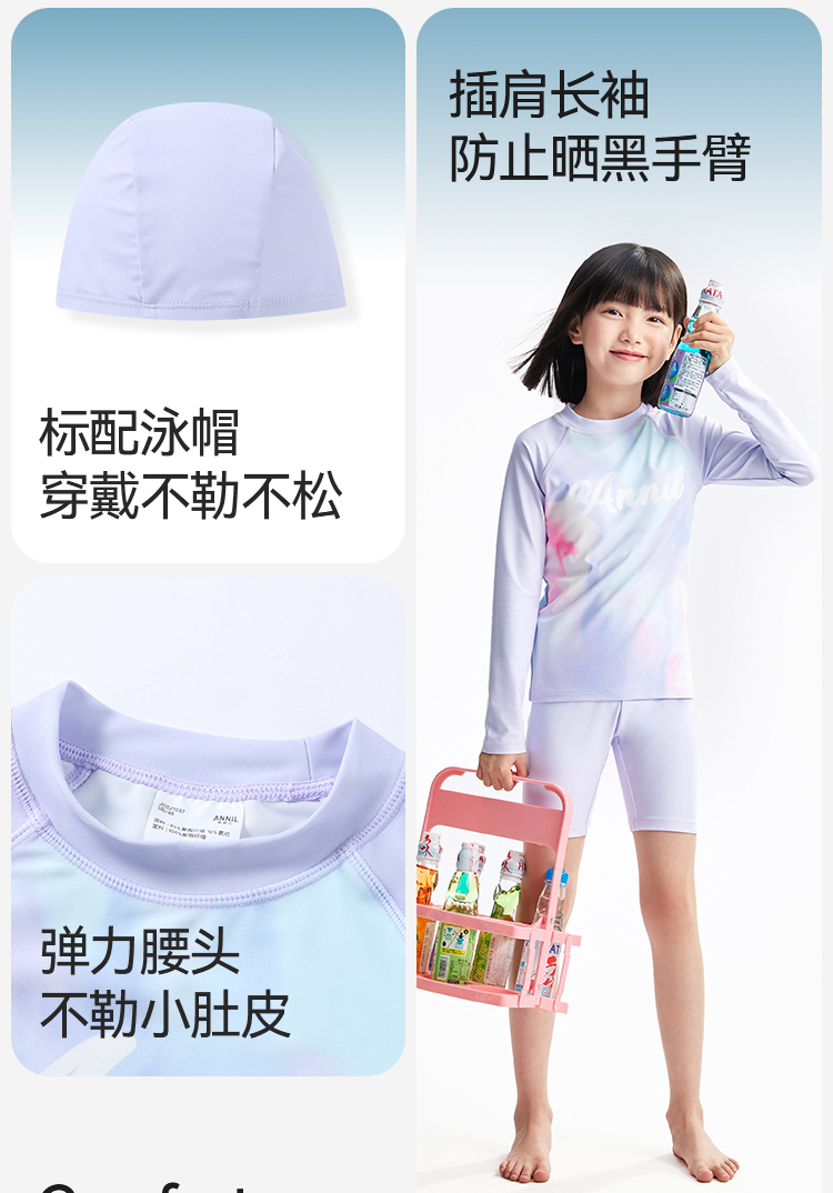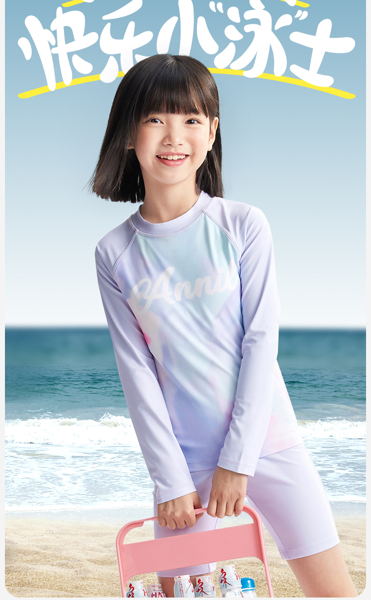 女童分体长袖泳衣套装夏季新款安奈儿童装JG527057