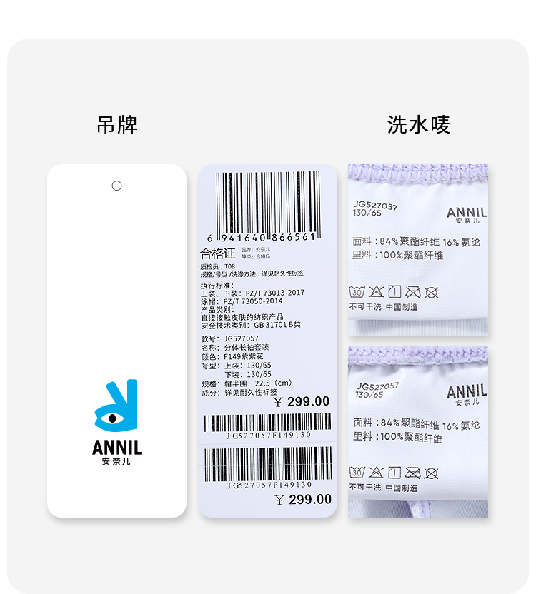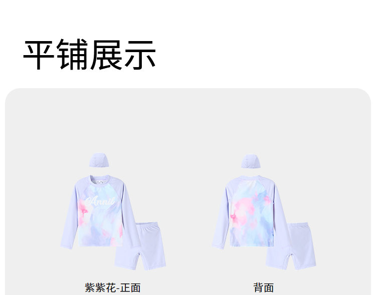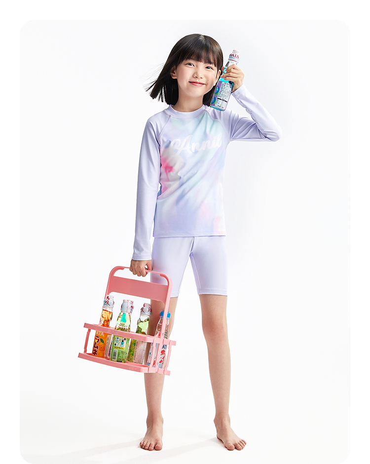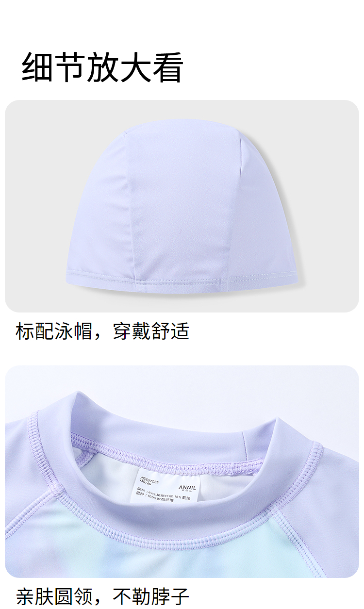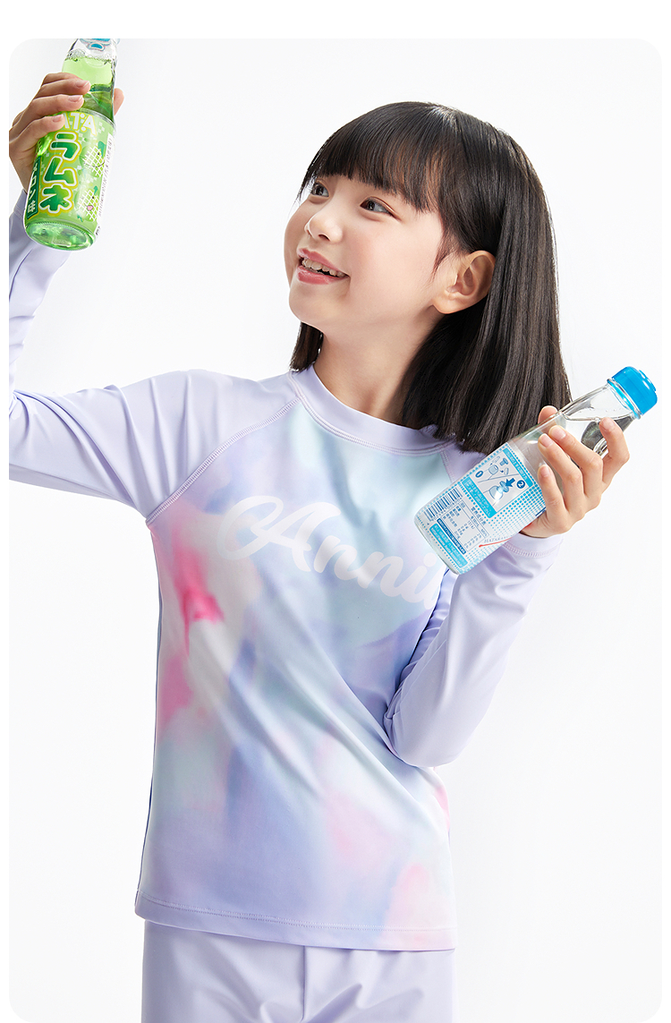 女童分体长袖泳衣套装夏季新款安奈儿童装JG527057