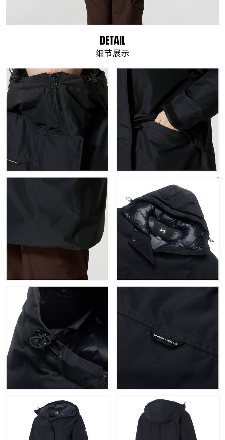 UA安德玛女款羽绒服25新款600蓬保暖中长款运动棉羽外套6010041-001
