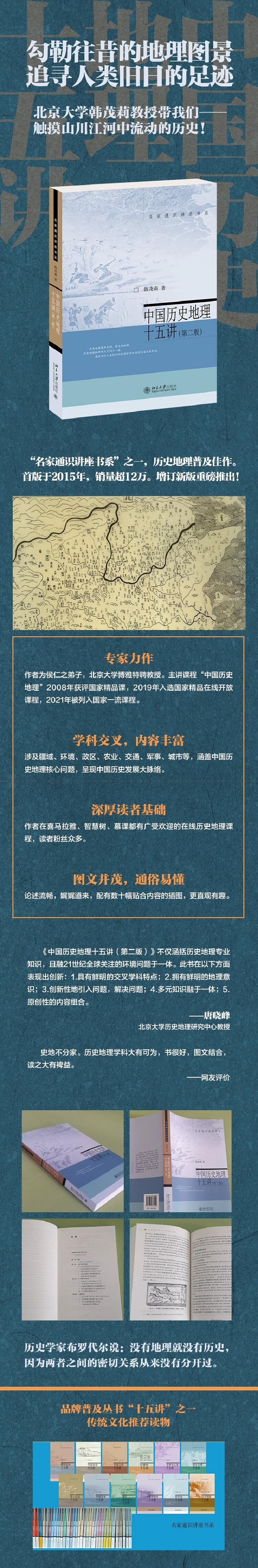 1.作者为侯仁之弟子,北京大学博雅特聘教授。主讲课程“中国历史地理”2008年获评国家精品课,2019年入选国家精品在线开放课程,2021年被育列入国家流课程。2.学科交叉,内容丰富:涉及疆域、环境、政区、农业、交通、军事、城市等,涵盖中国历史地理核心问题,呈现中国历史发展大脉络。