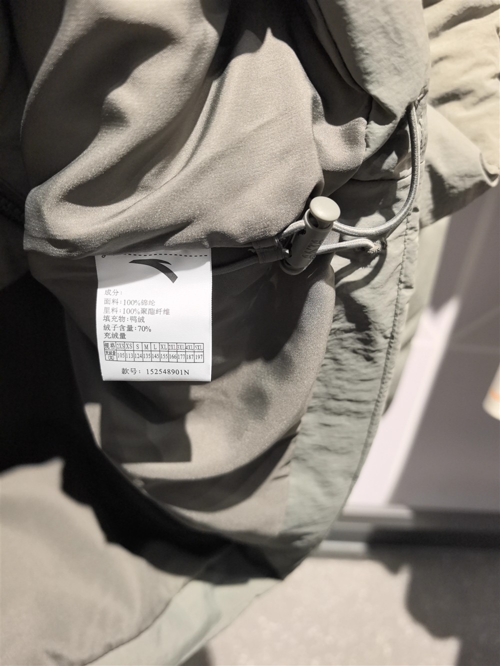 安踏立领羽绒服男2025冬季新款防泼水鸭绒保暖面包外套152548901N