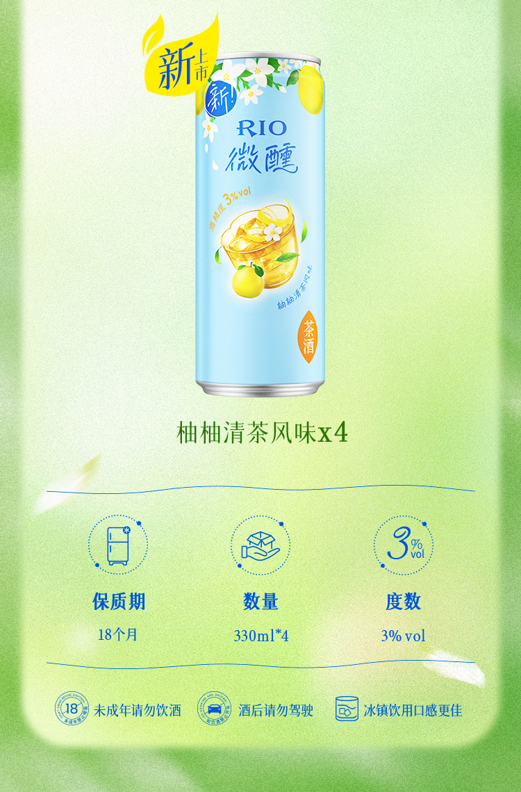 【新品上市】RIO锐澳预调鸡尾酒低度果酒微醺柚柚清茶330ml*4罐柚子酒