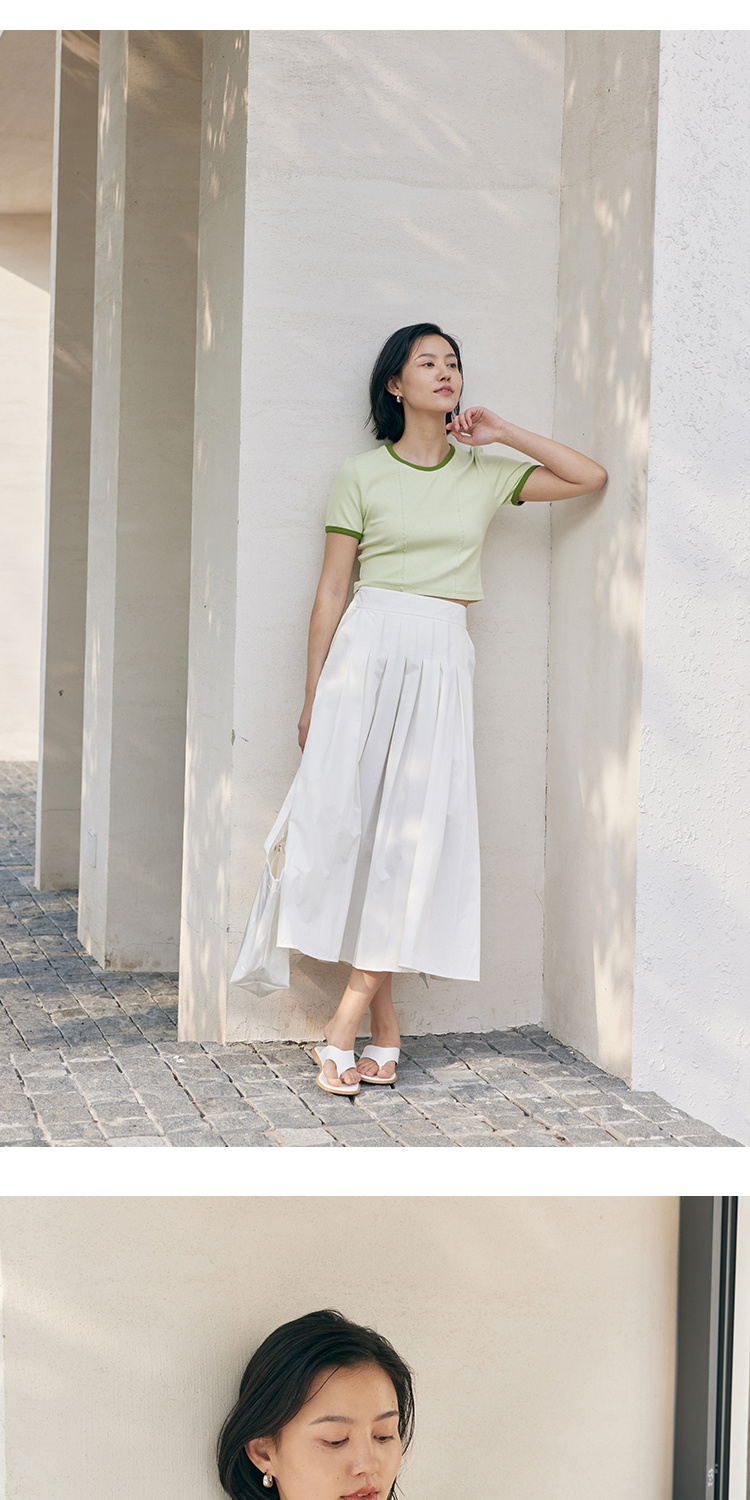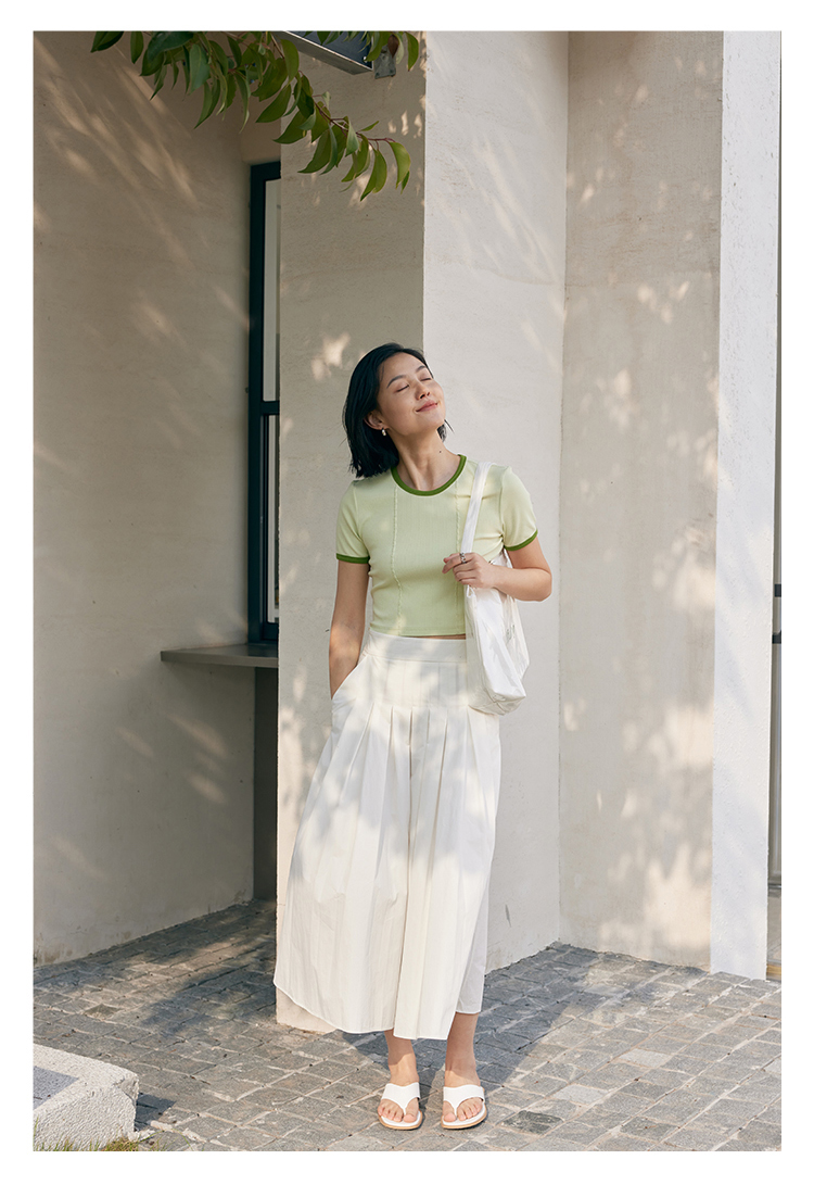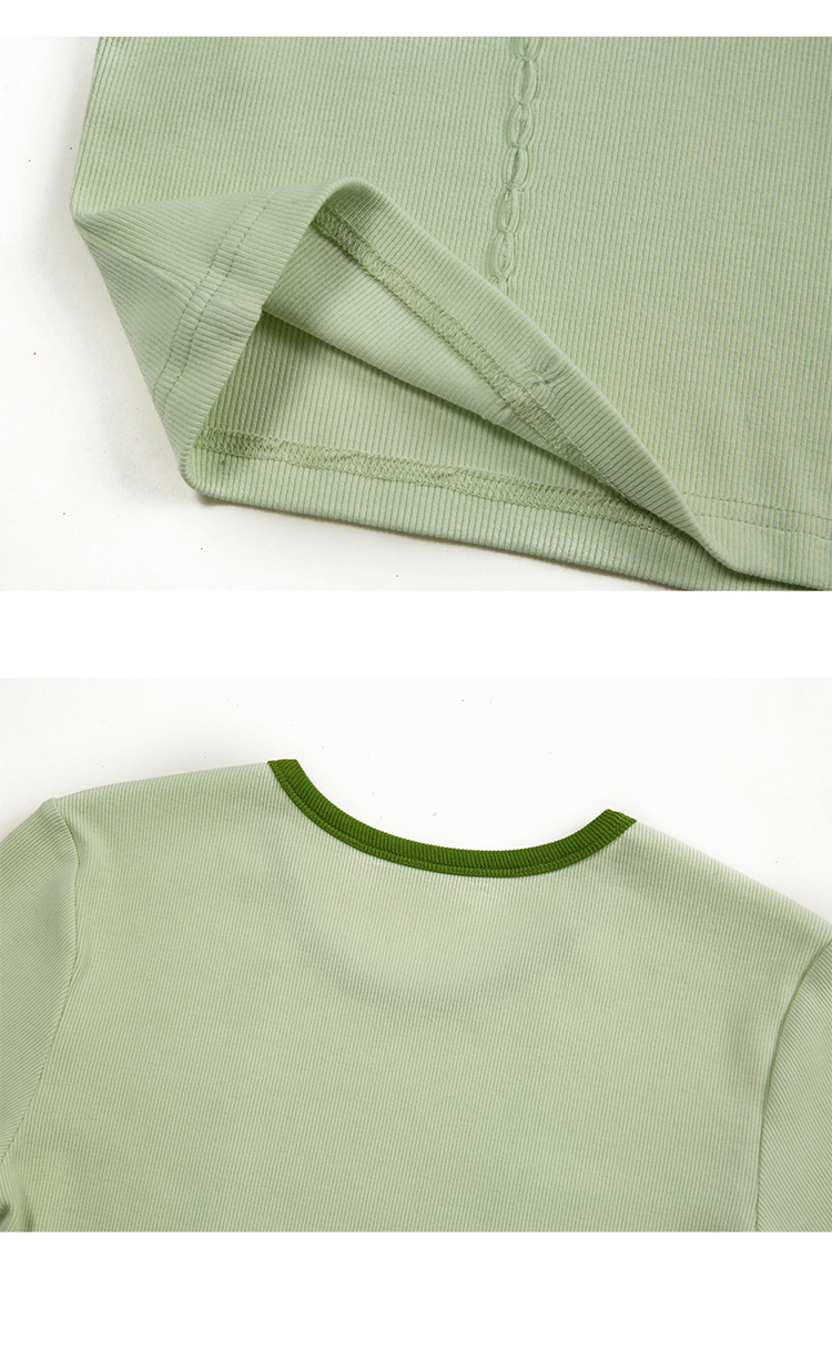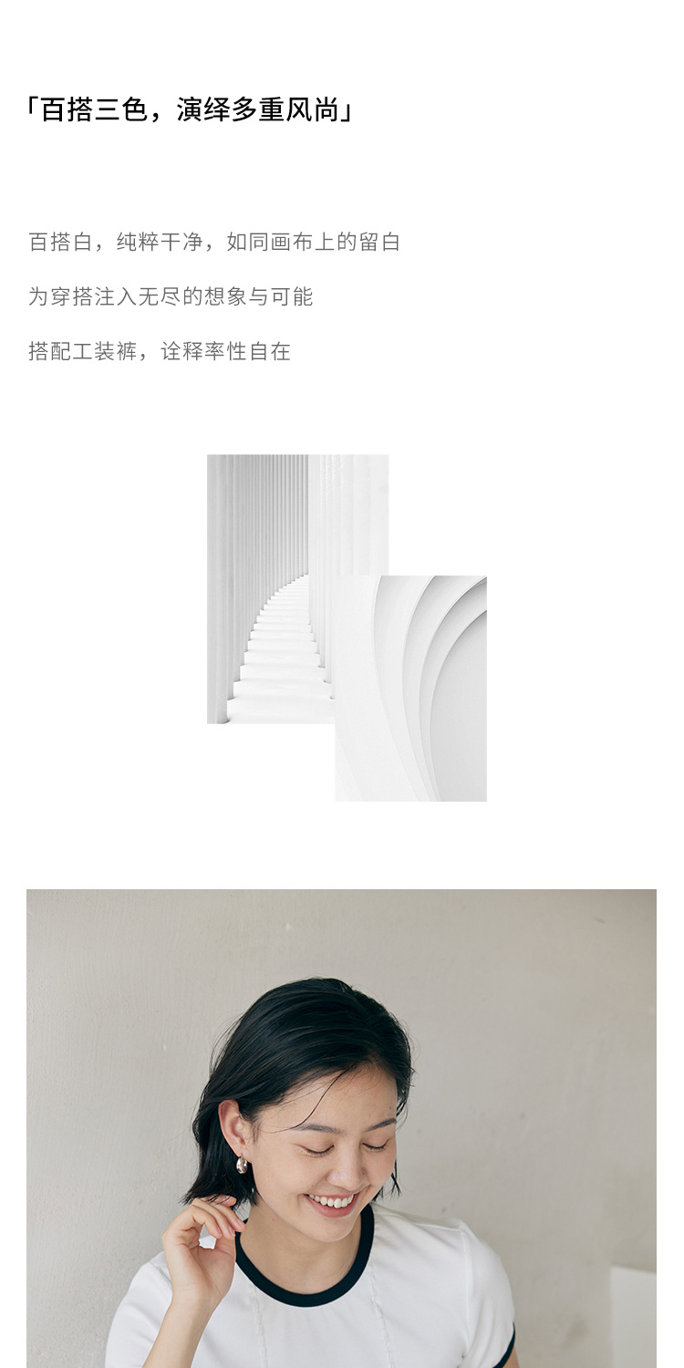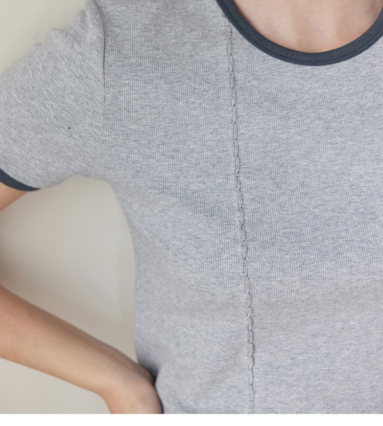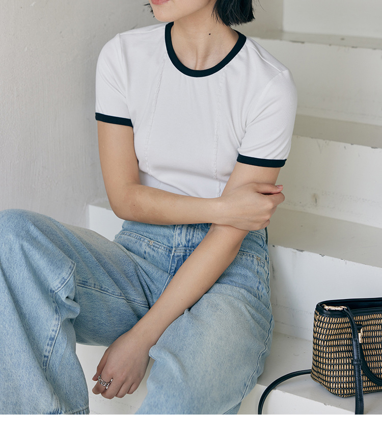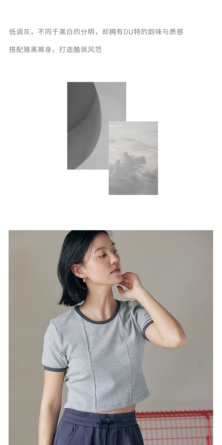 HeyDress撞色t恤女夏季圆领修身短款半袖麻花肌理设计感短袖上衣