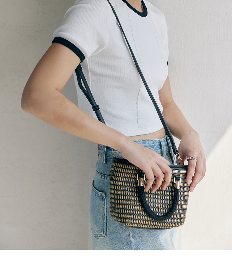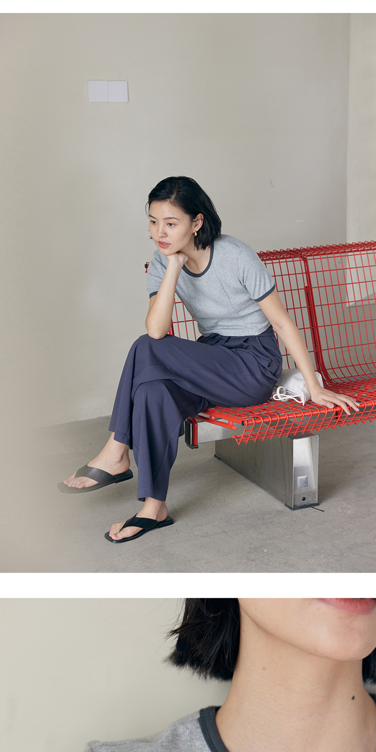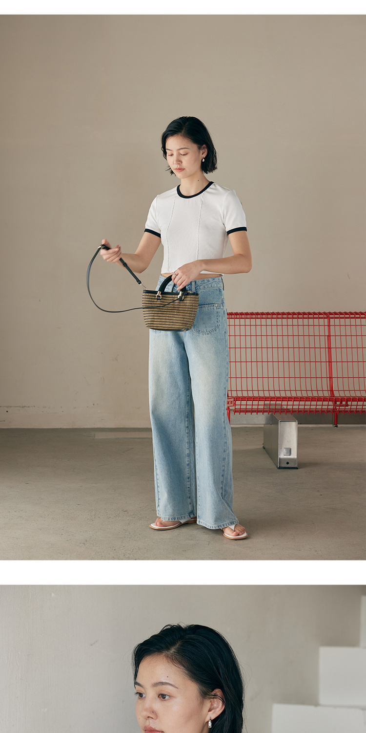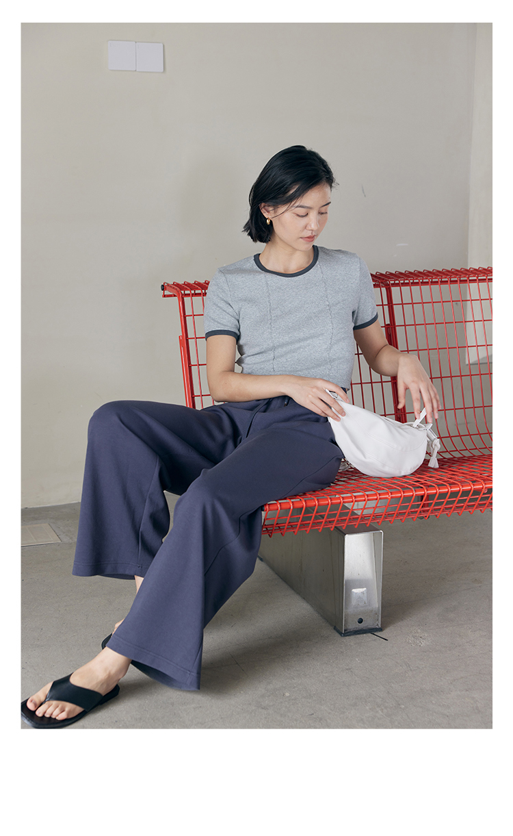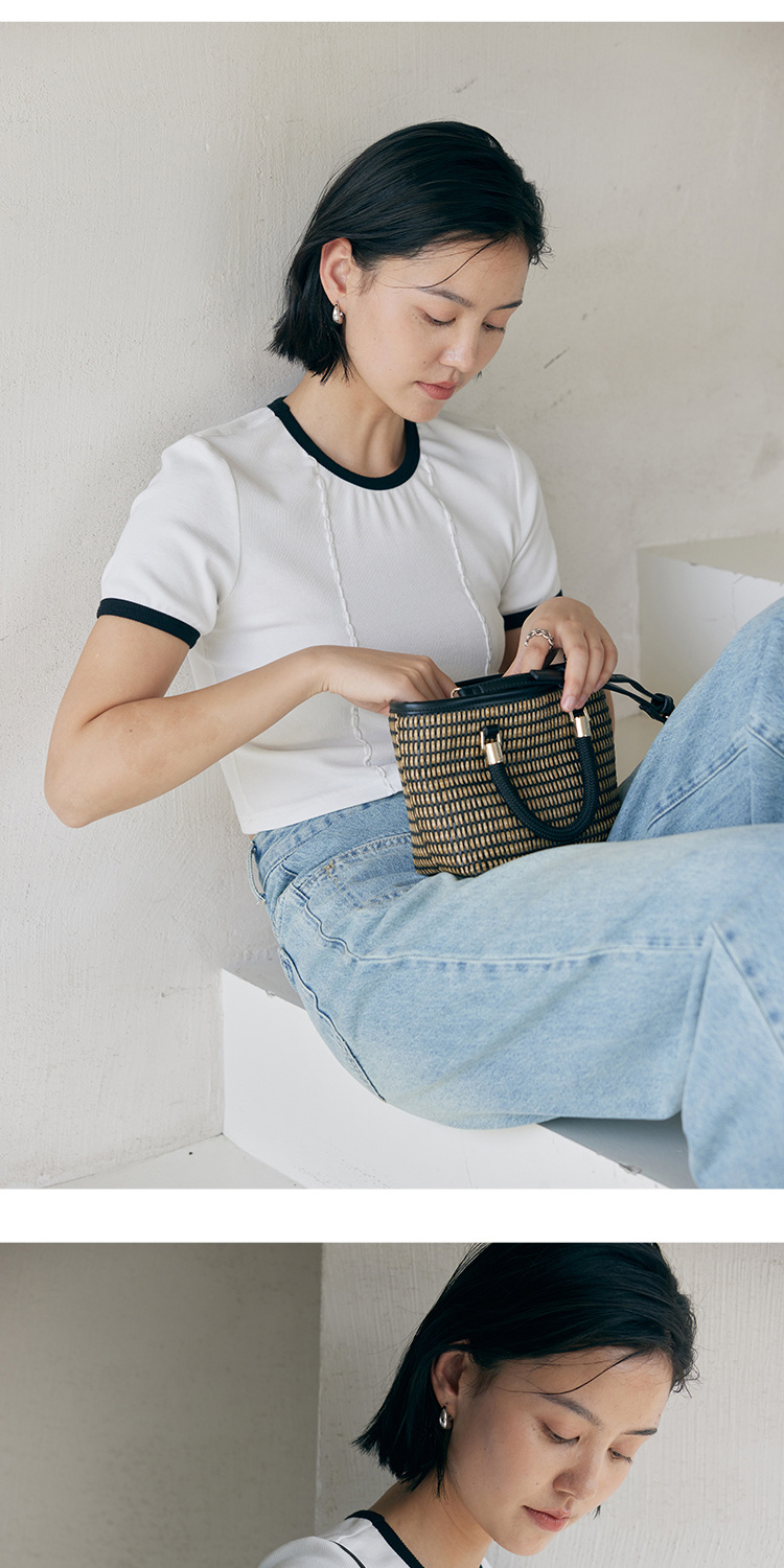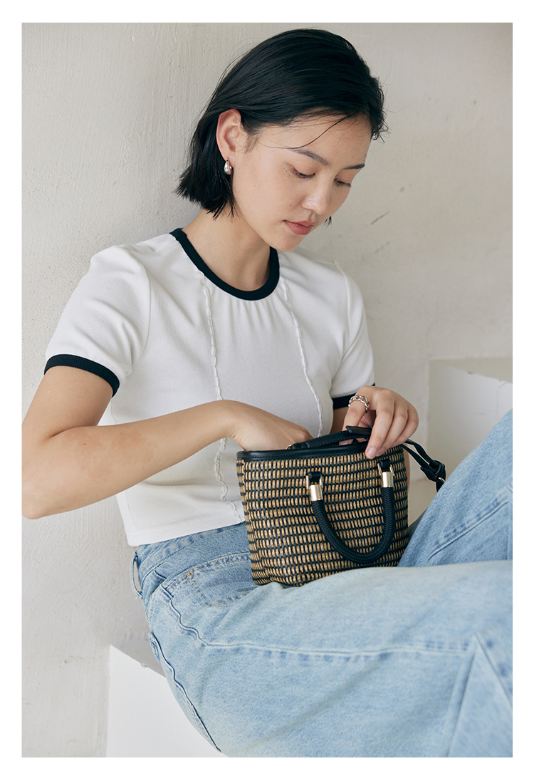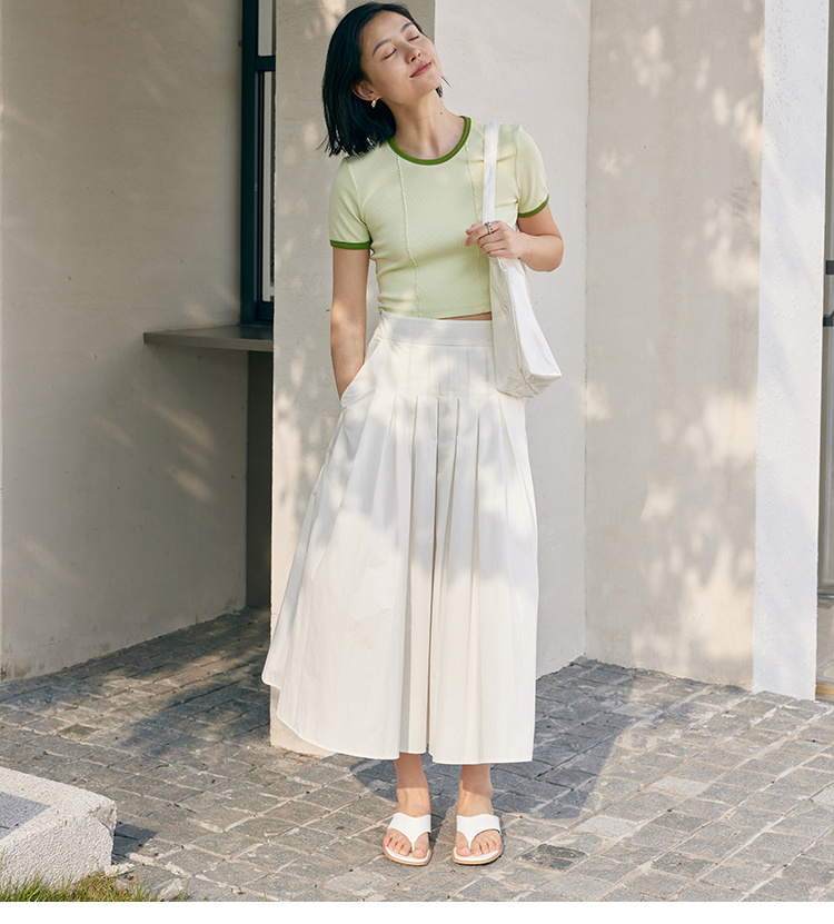 HeyDress撞色t恤女夏季圆领修身短款半袖麻花肌理设计感短袖上衣