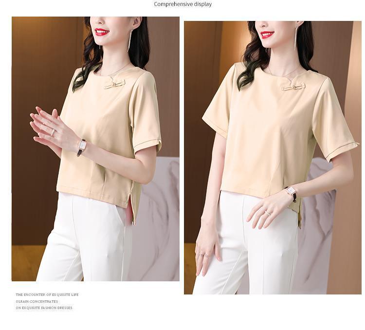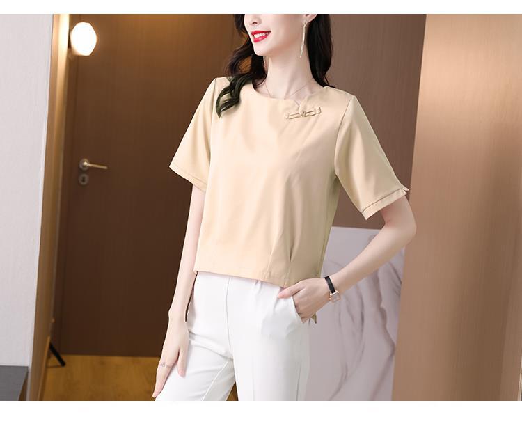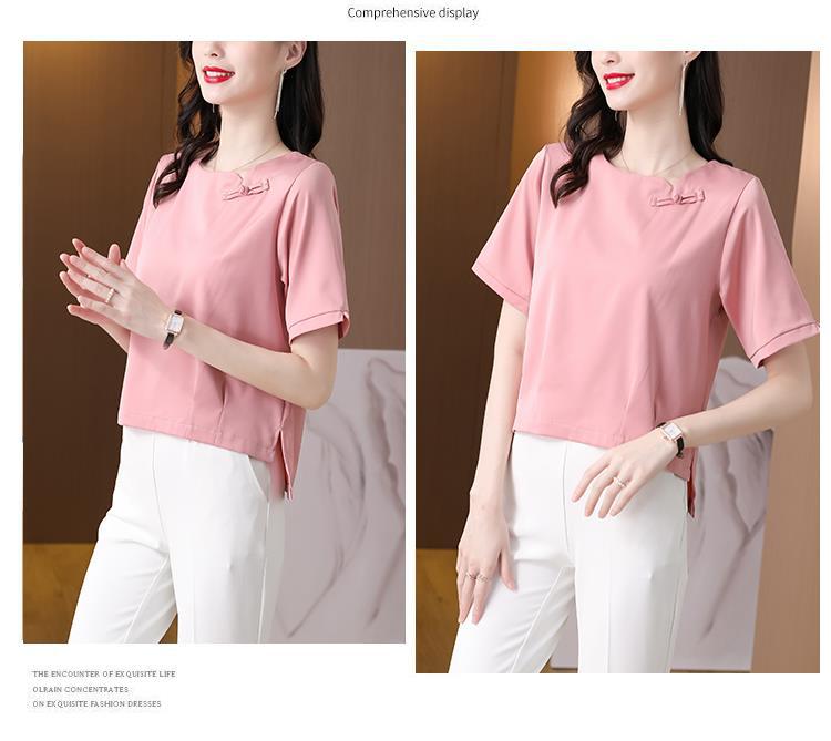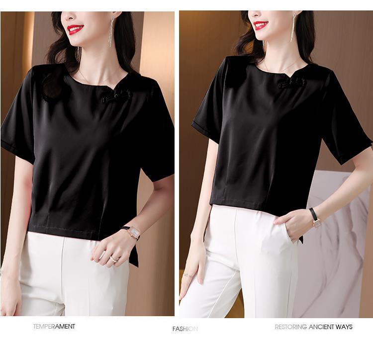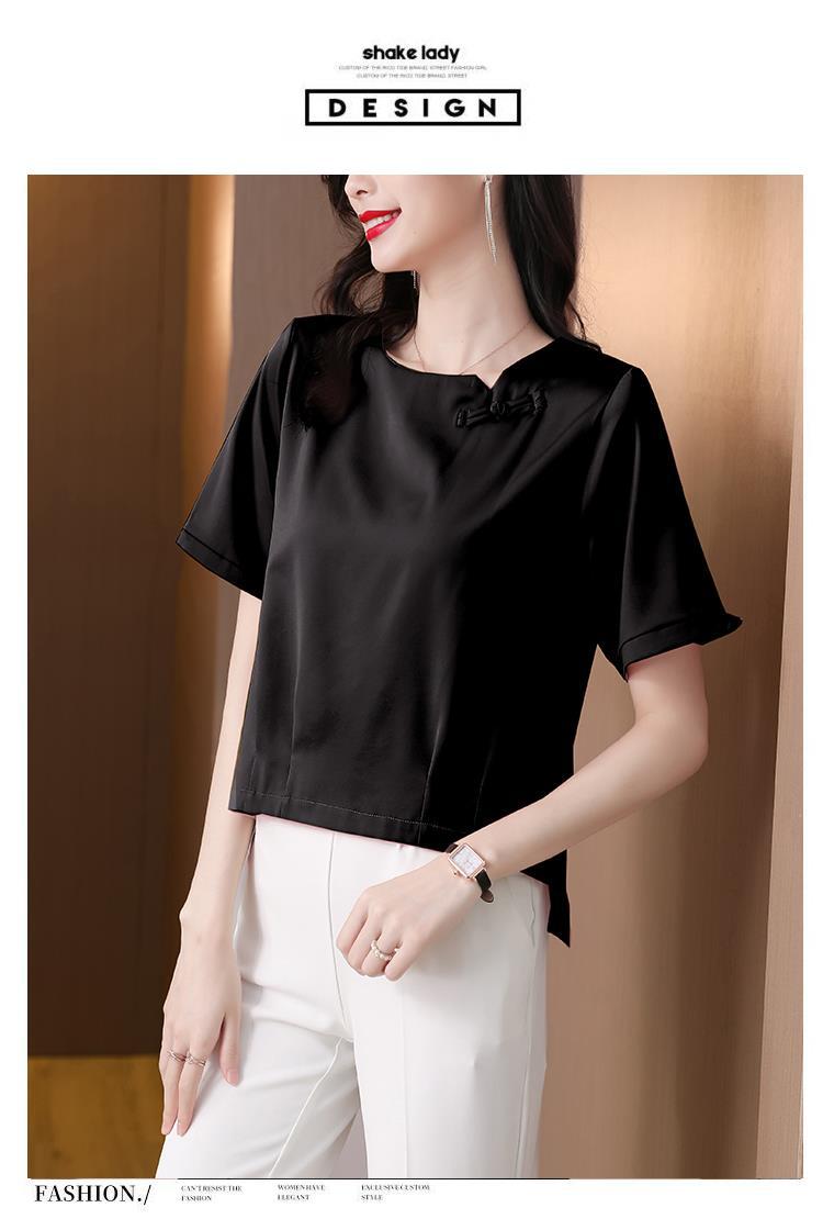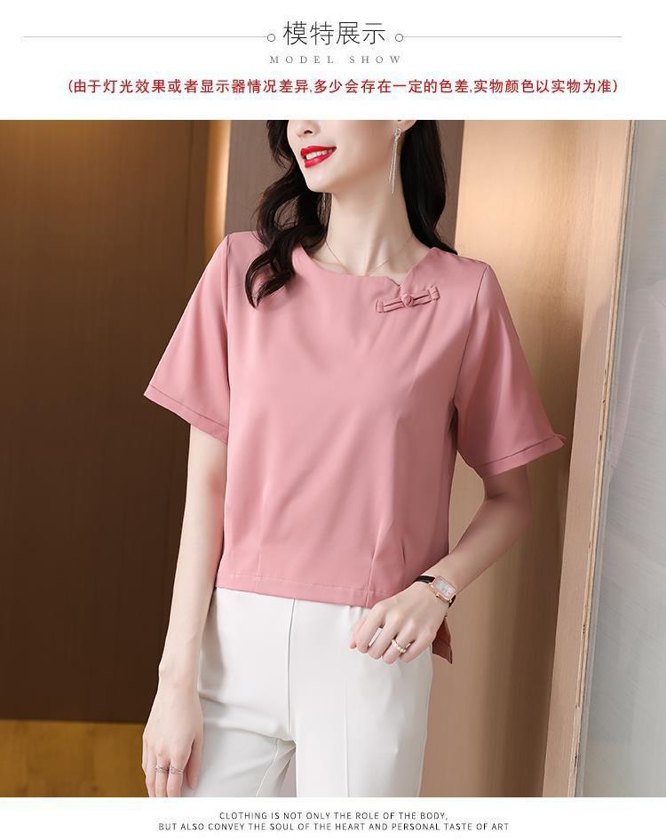 SMZ63897盘扣衬衫夏清仓高档小衫女士大码宽松短袖T恤打底上衣
