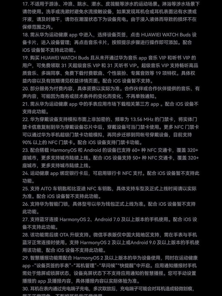 手表 X 1 、耳机(带M耳套)X 1对 、带线缆一体化充电底座 X 1、 快速入门&安全信息&保修卡 X 1 、耳套L&S X 1对、 音乐权益卡片X 1