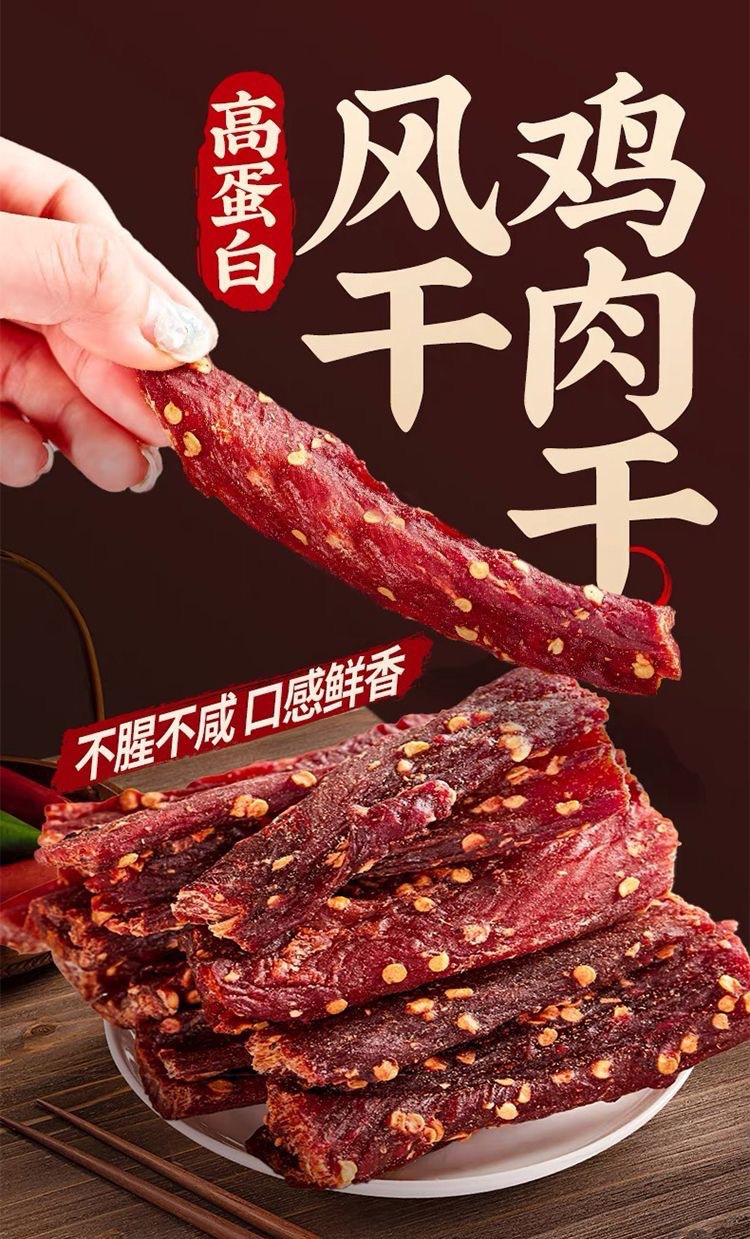 【软硬适中❗越嚼越香】鸡肉干风干鸡胸肉条高蛋白抗饿耐嚼卡脂健身解馋零食休闲食品。rg