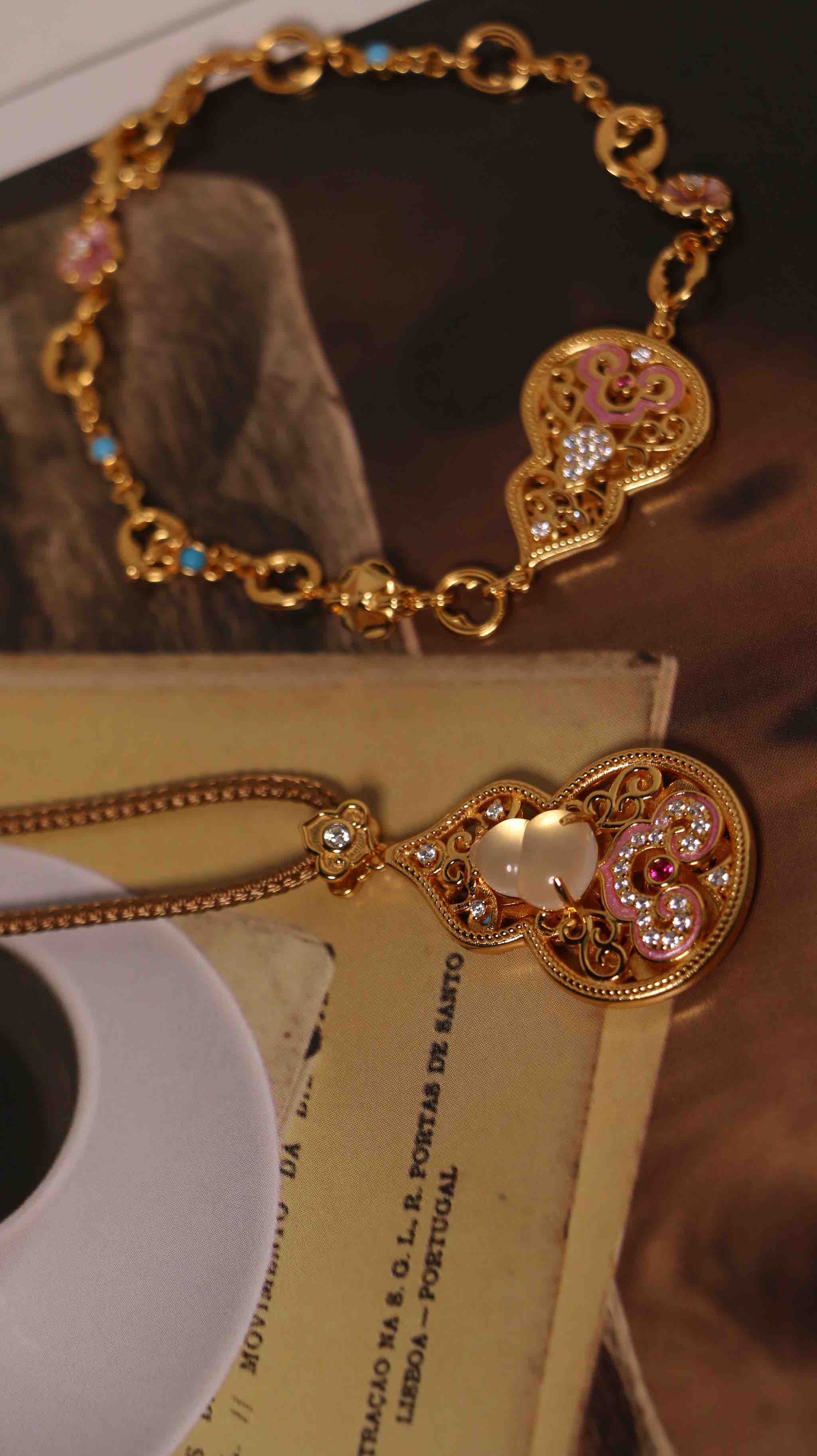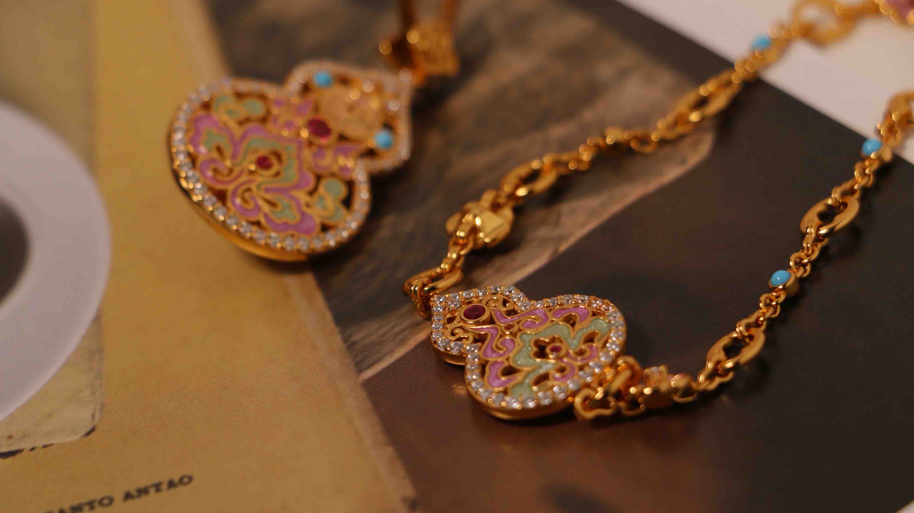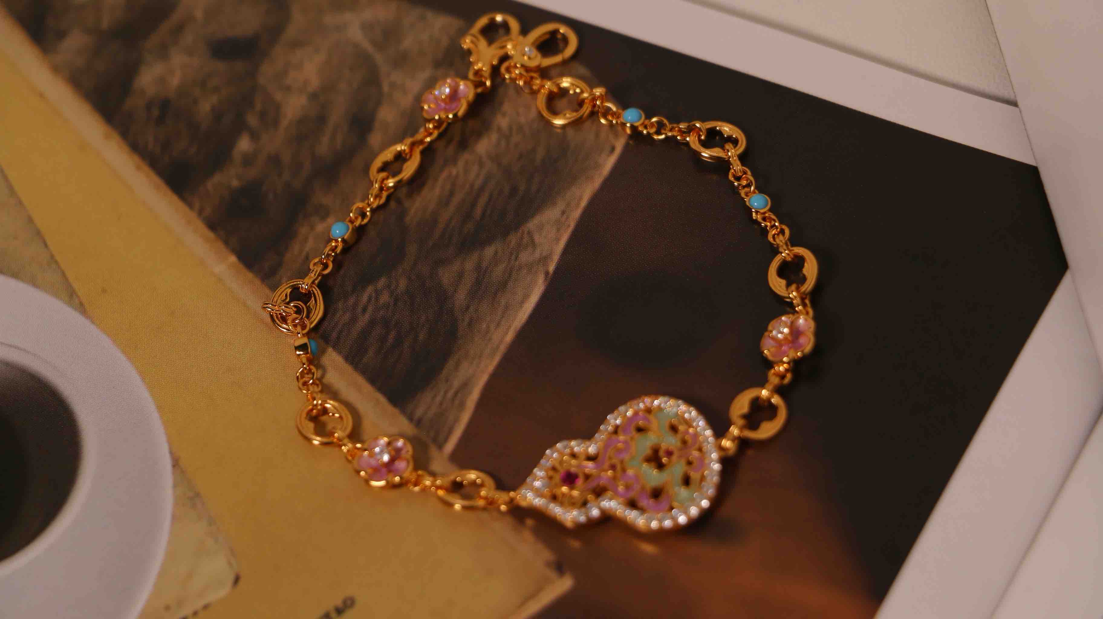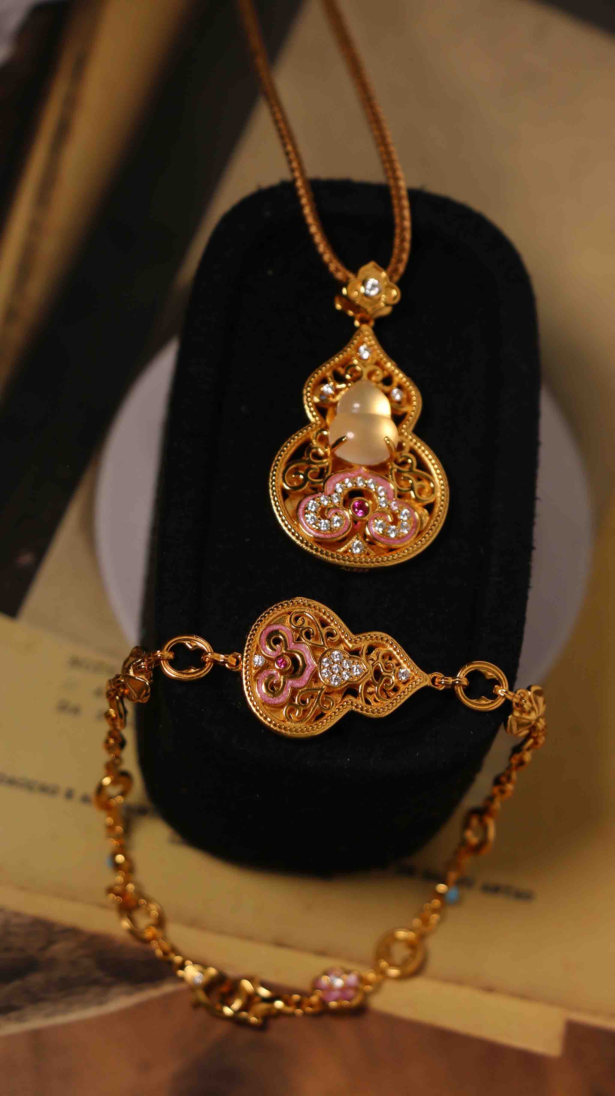 925 纯银镀金质感基底,珐琅撞色 AB 面 + 天然水沫玉葫芦,吊坠 + 手链 + 编绳三合一套装,支持双戴 / 拆分佩戴,寓意 “福禄双全”,日常通勤、约会送礼皆适配,精致感与实用性拉满~