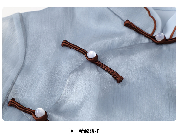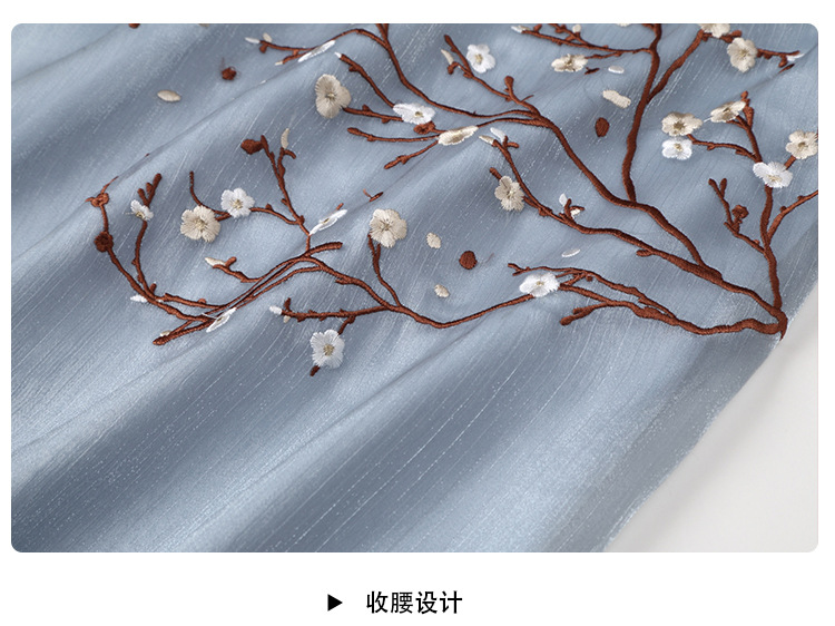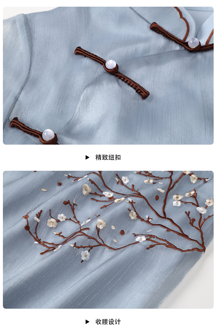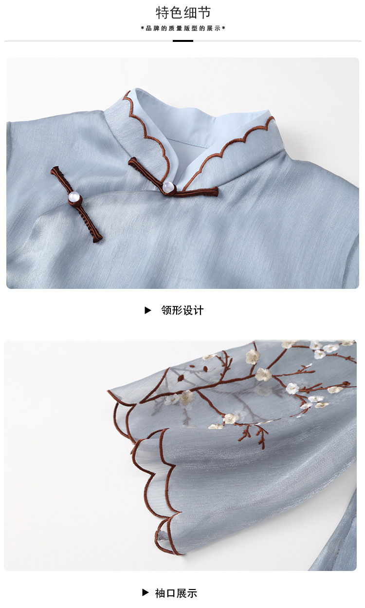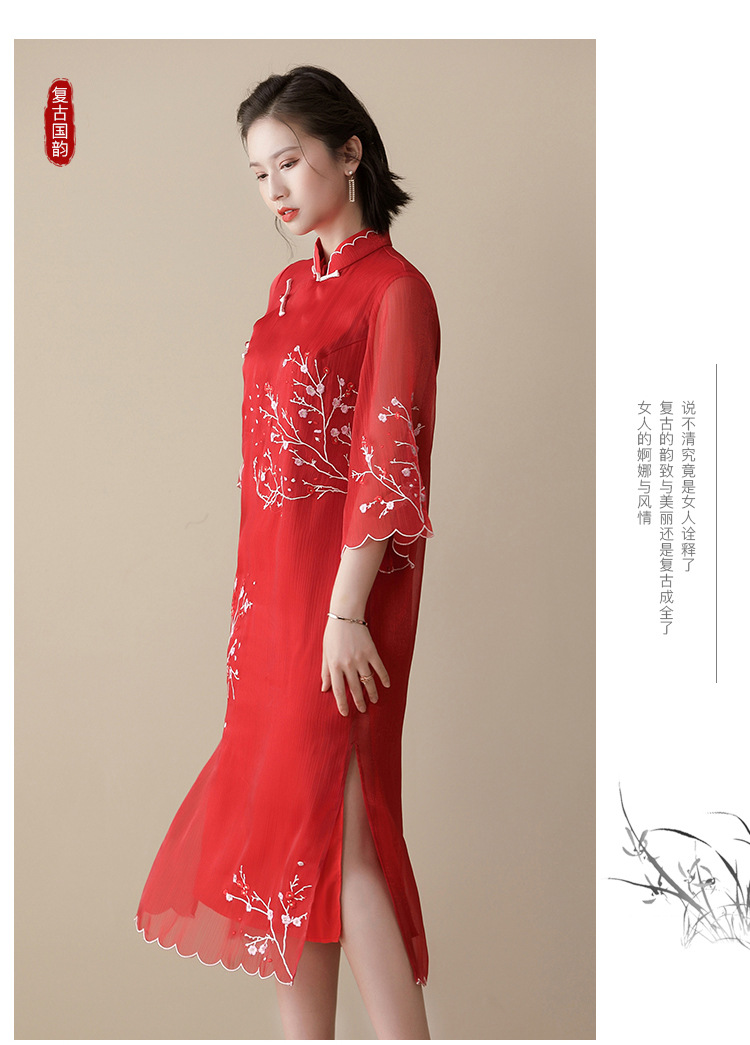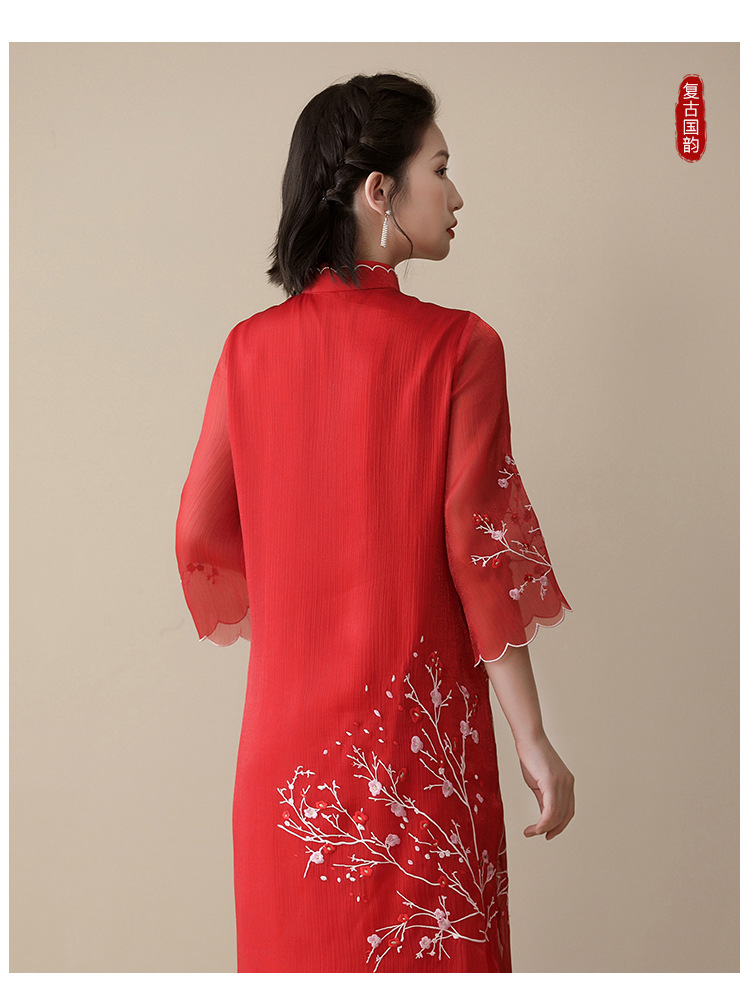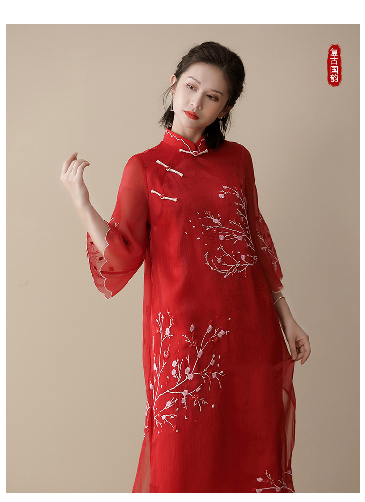 上海旗袍厂AYK-QF-210122亮丝刺绣宽松改良旗袍复古长款立领七分袖连衣裙