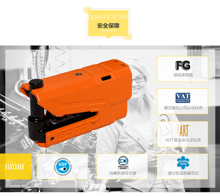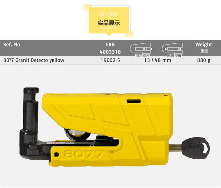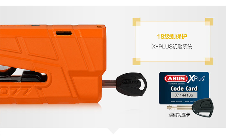 德国制造ABUS RS1 3D 8077立体感应报警碟刹锁刹盘锁防盗安全锁