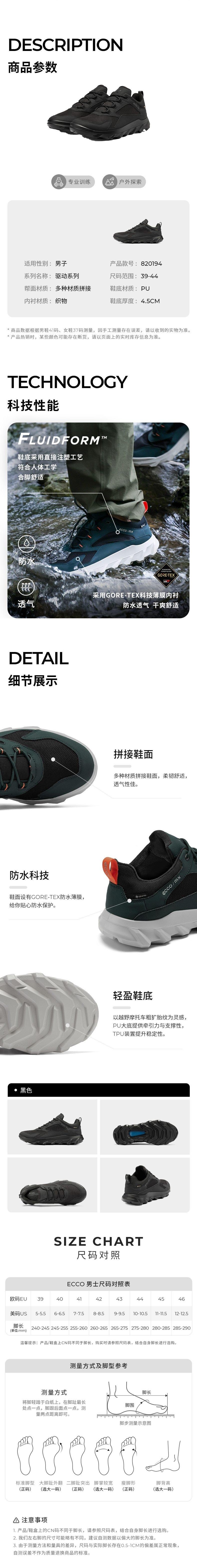 ECCO爱步 男式运动鞋 820194-Z