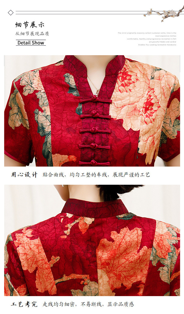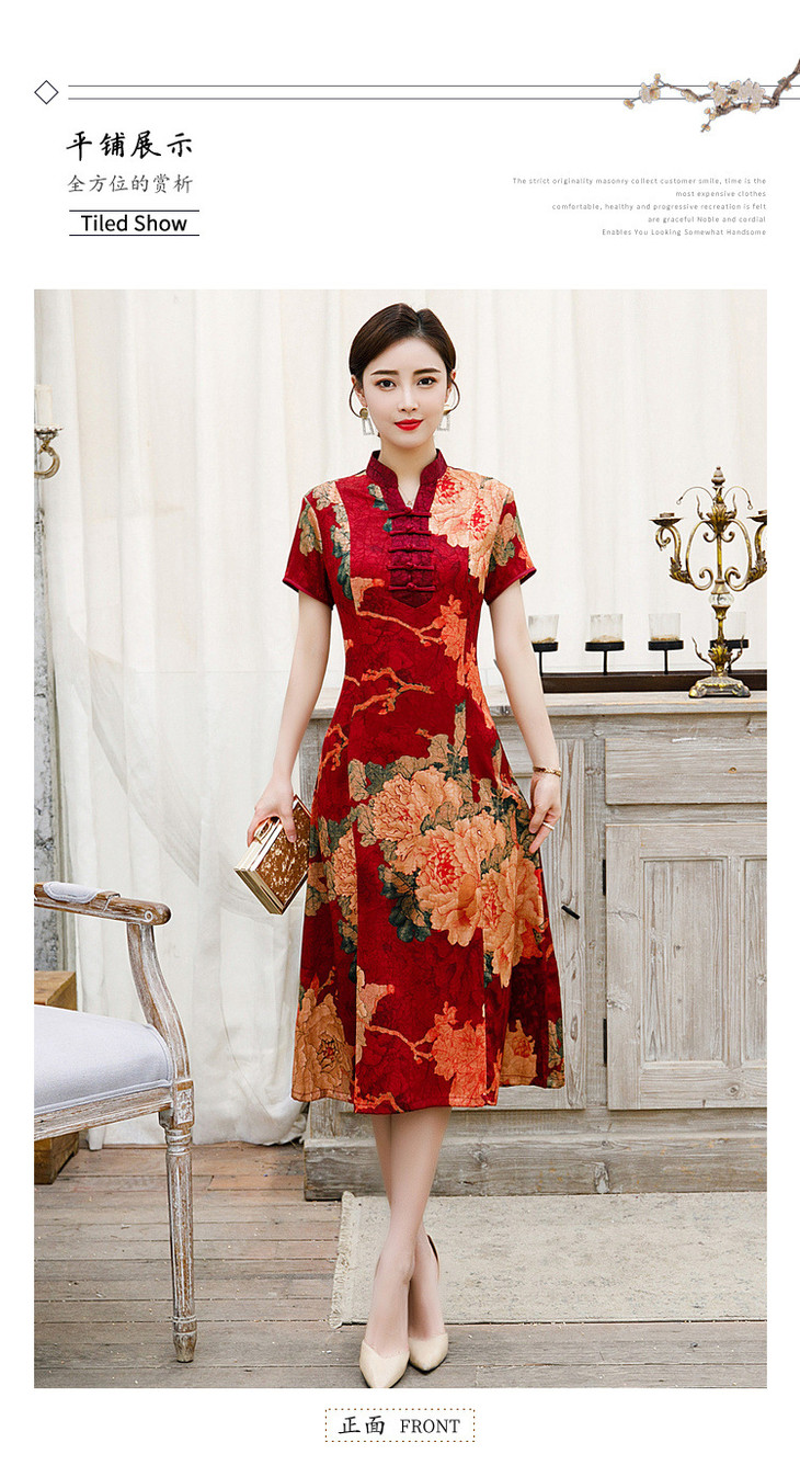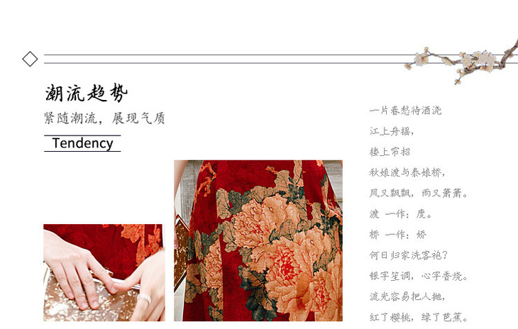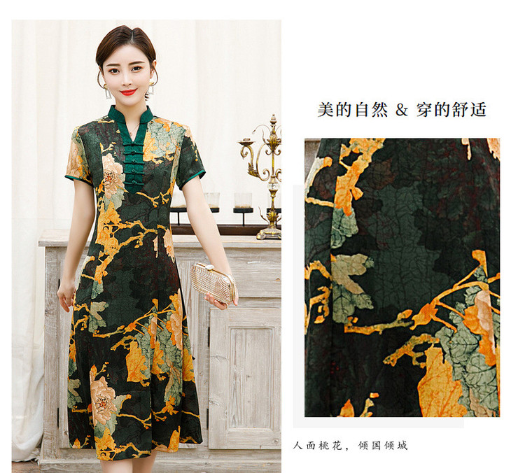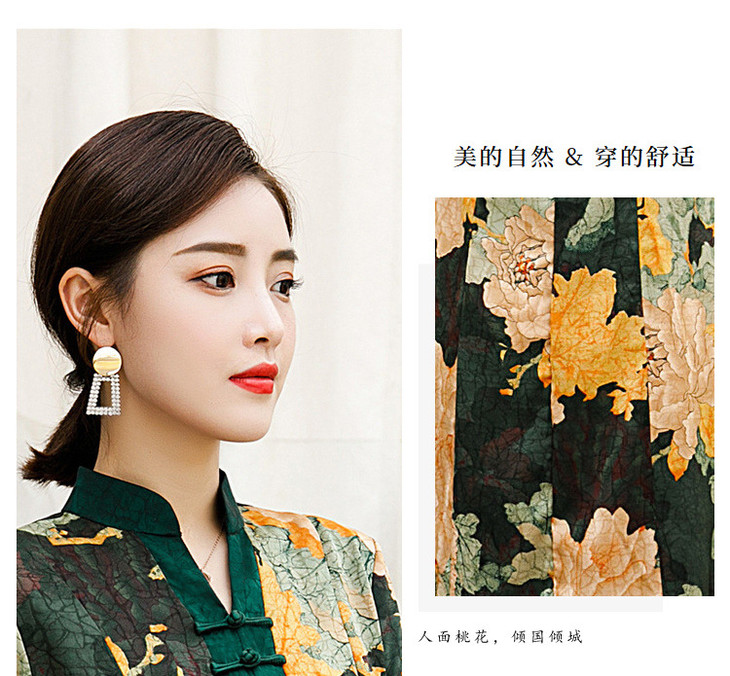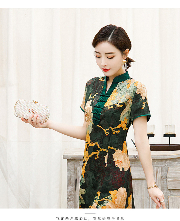 YM-84519新款复古优雅气质奥黛旗袍连衣裙