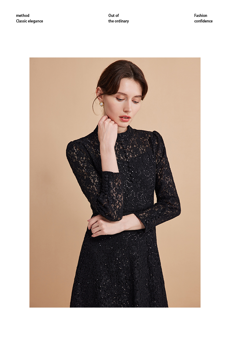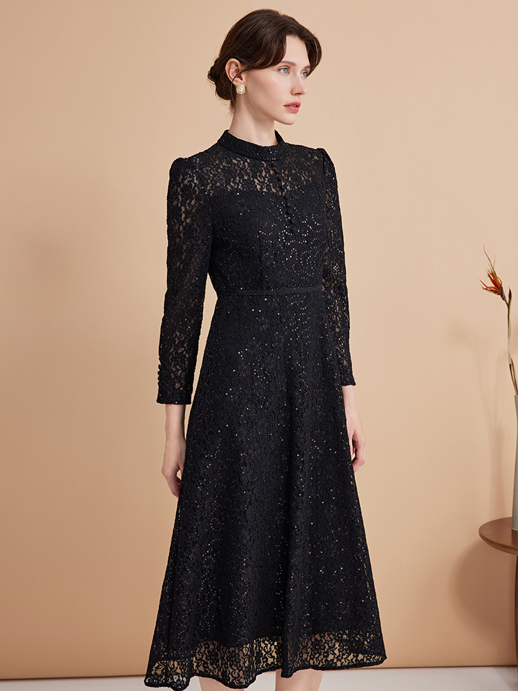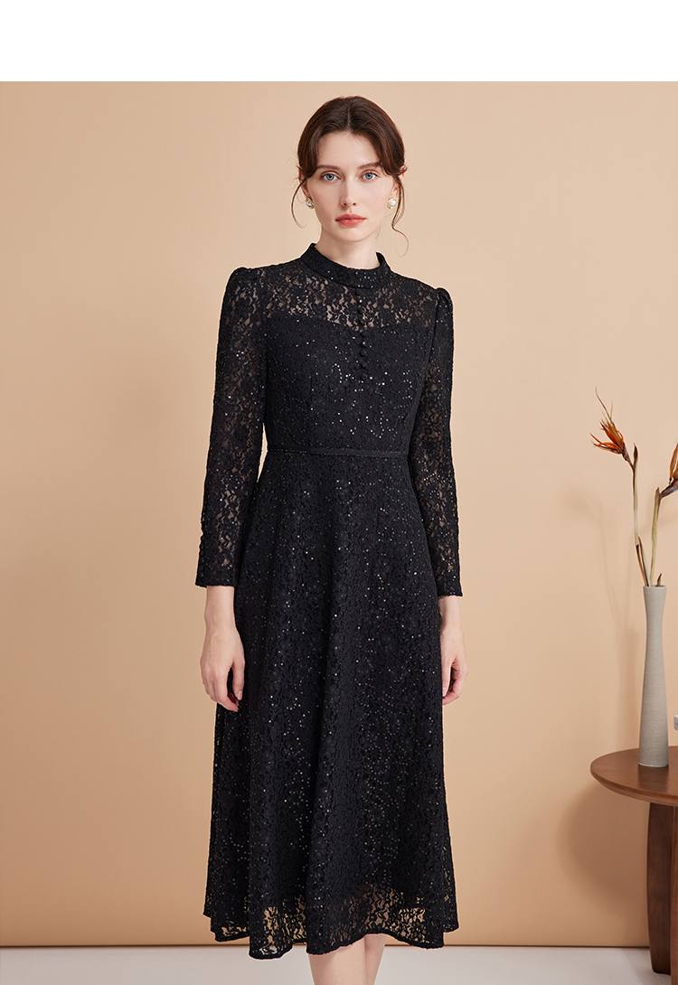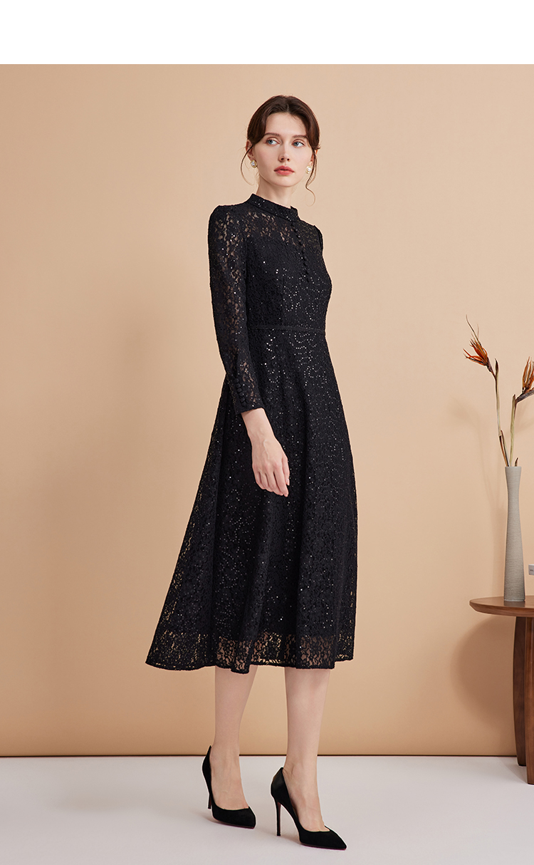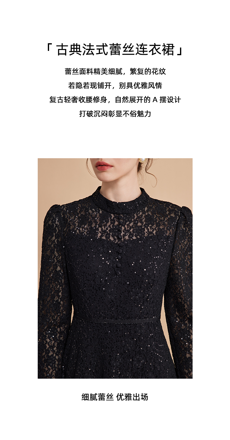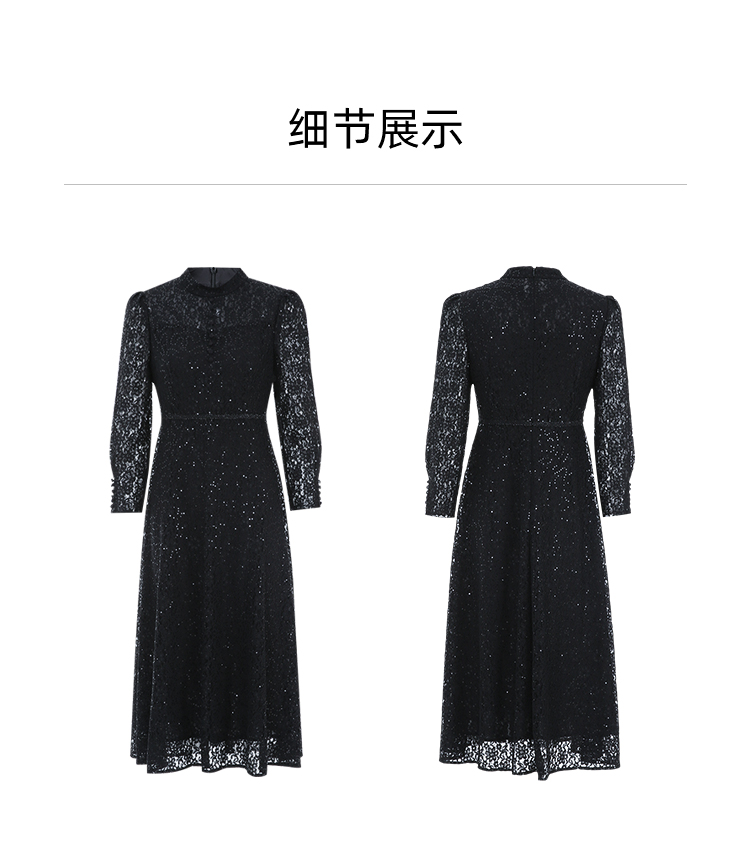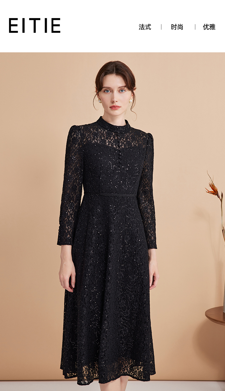 EITIE爱特爱春季新款翻领绣花A字连衣裙中长款女A2007421