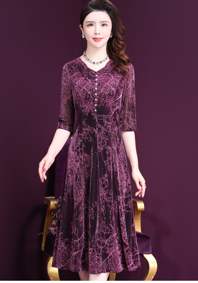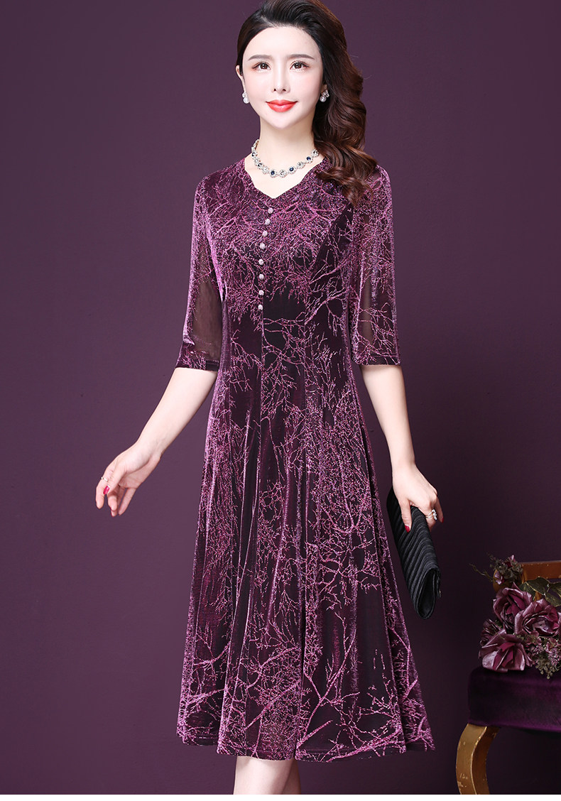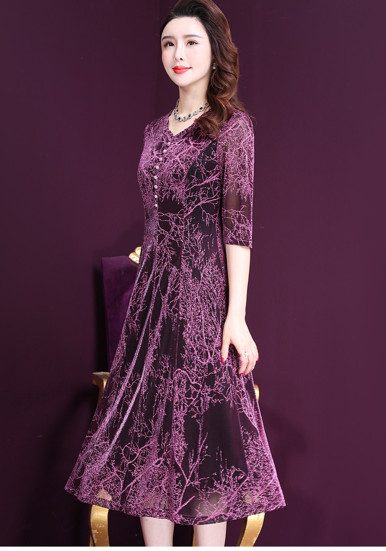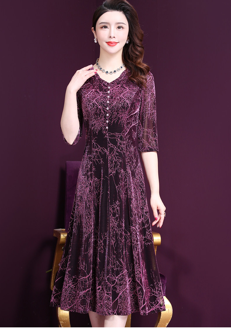 WXY-7162春季新款烫花阔太太洋气打底连衣裙