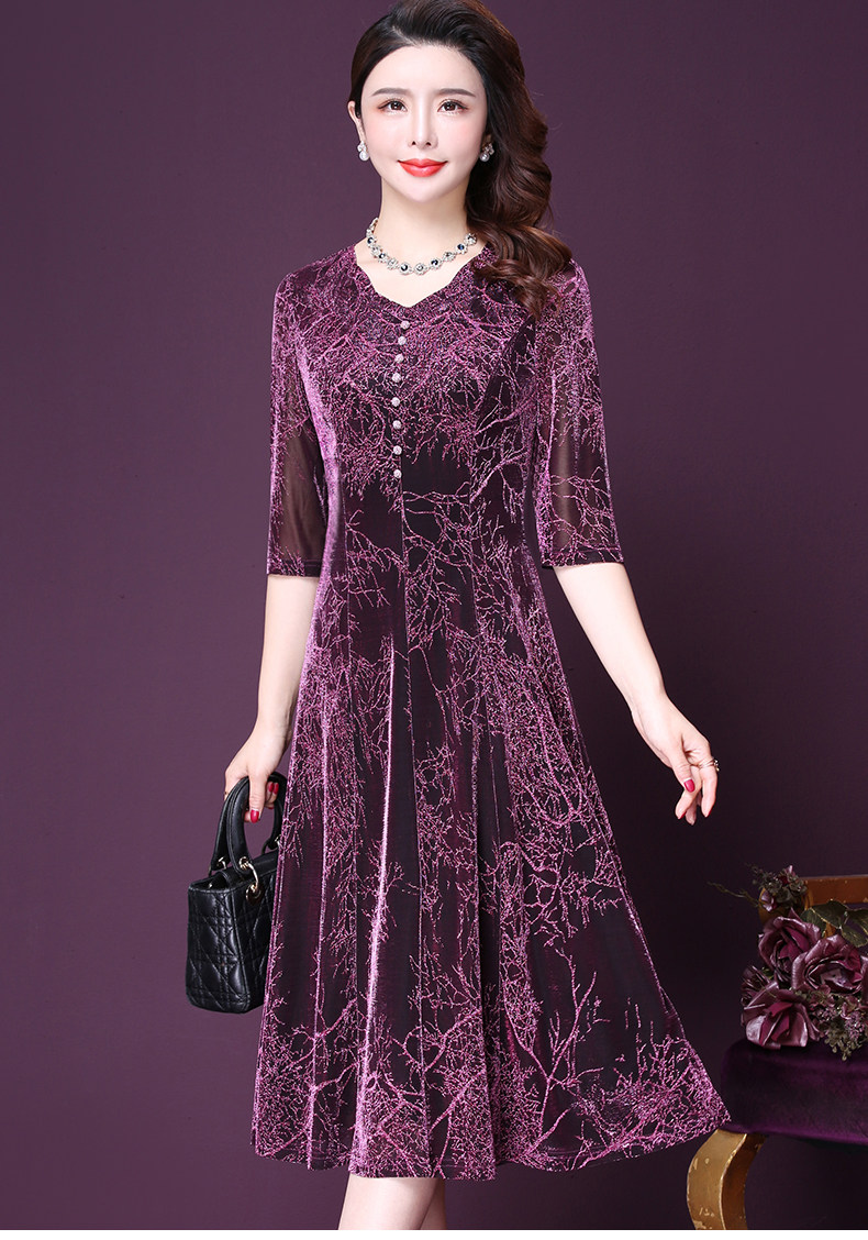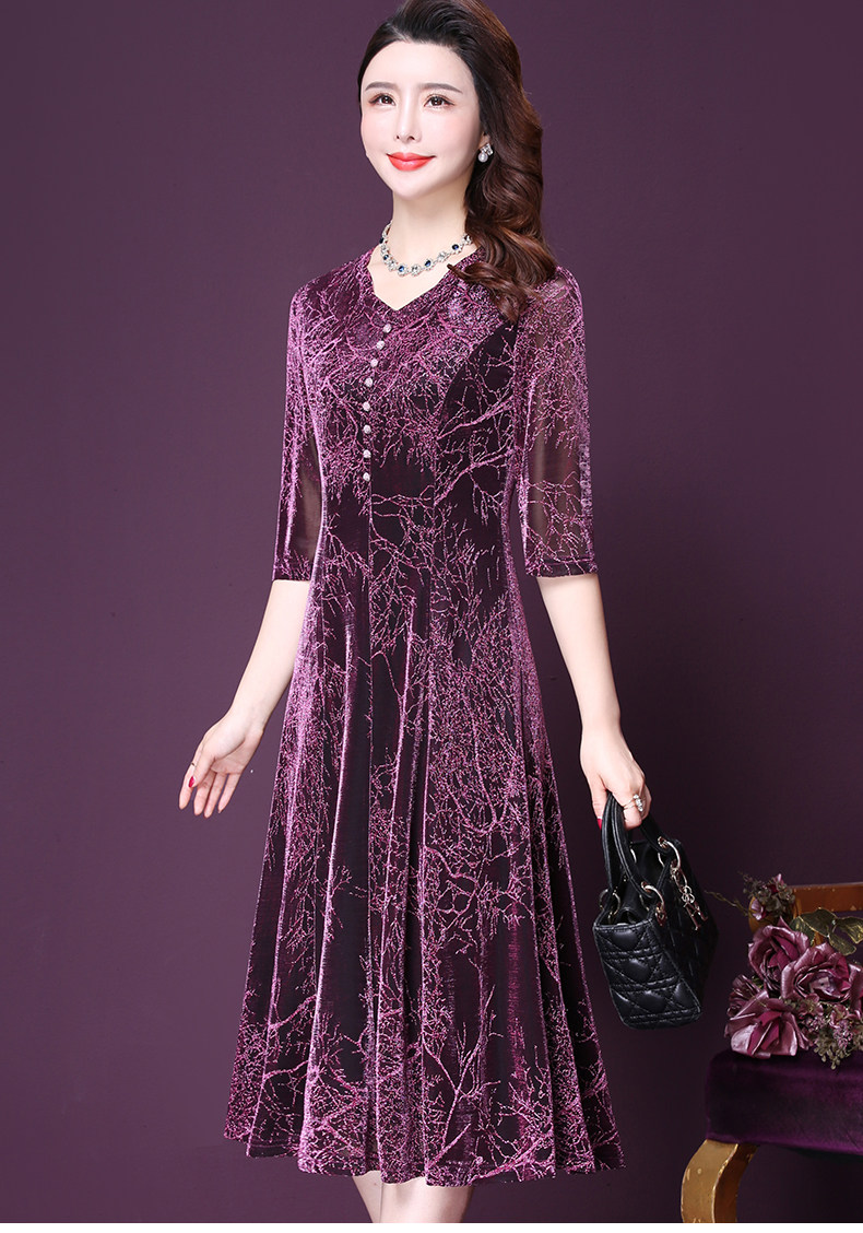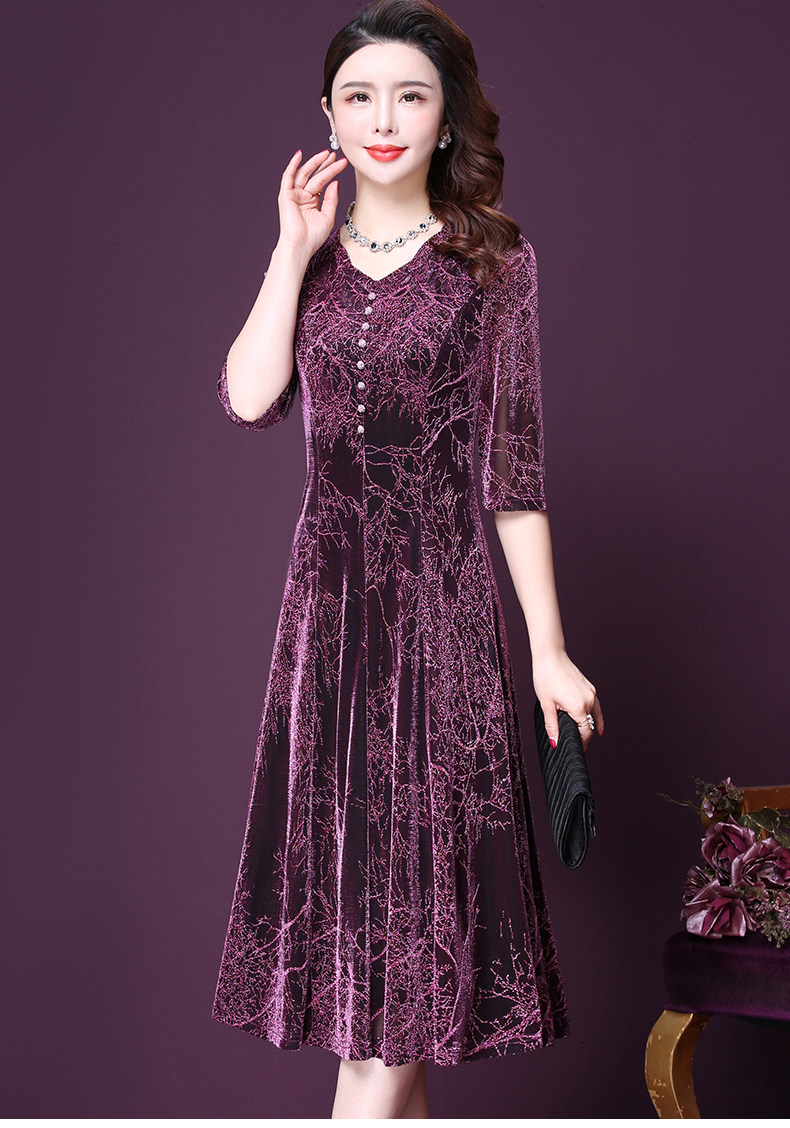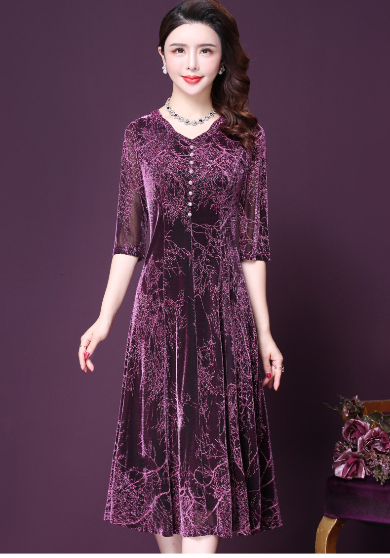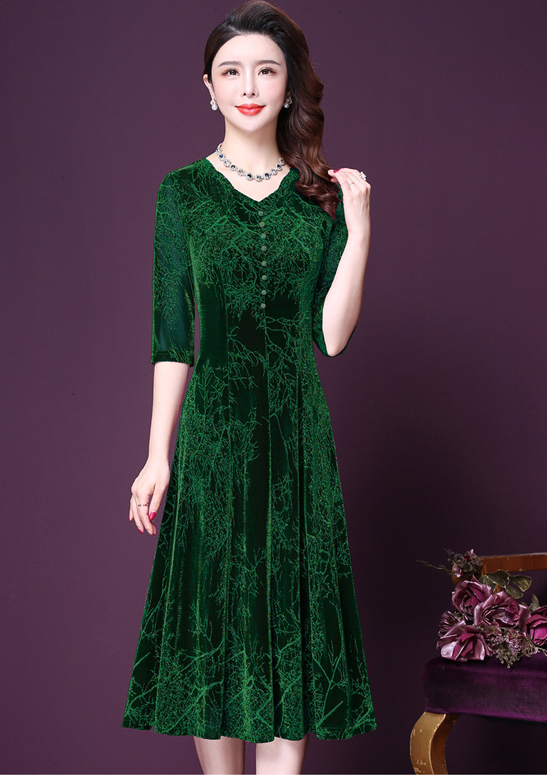 WXY-7162春季新款烫花阔太太洋气打底连衣裙