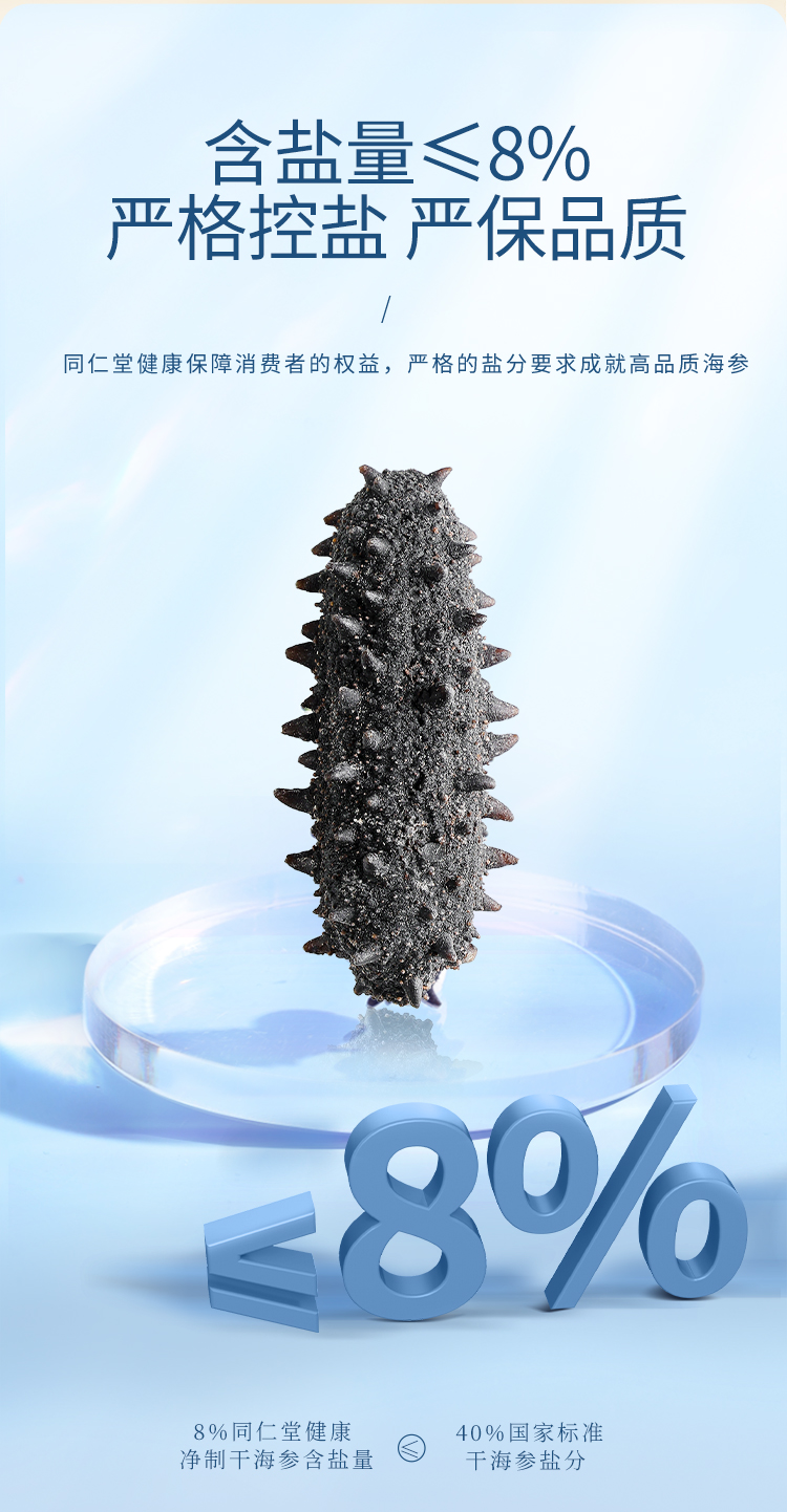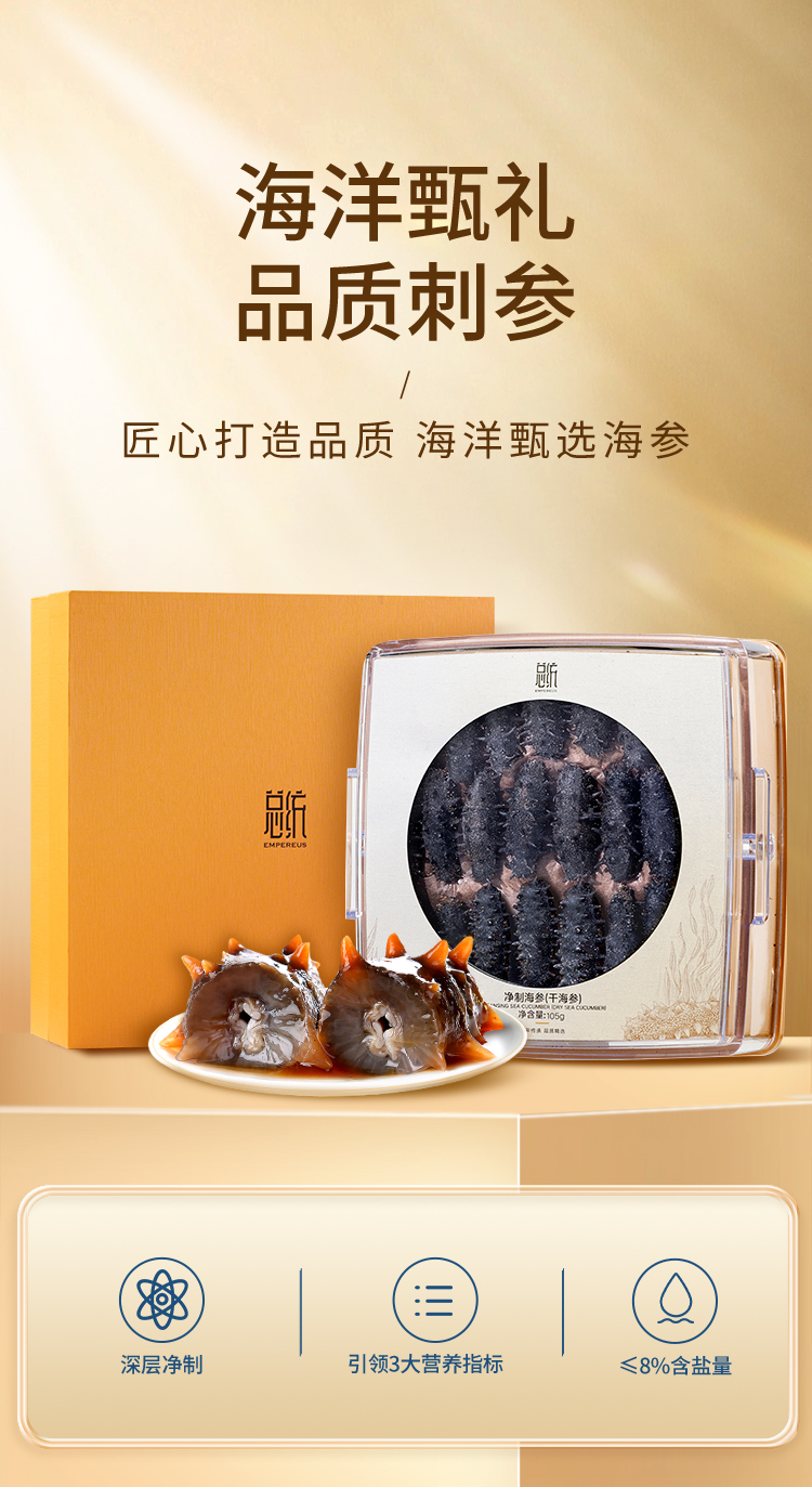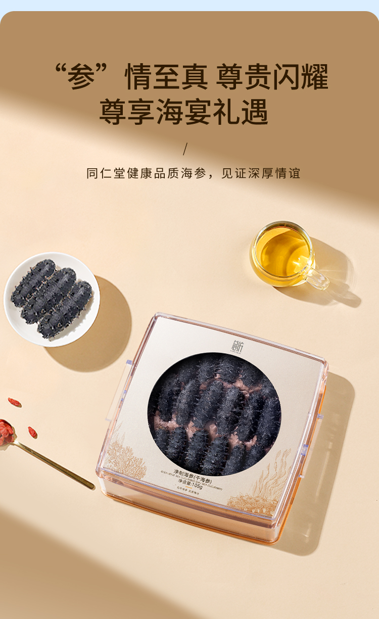 【正宗同仁堂品牌】北京同仁堂 总统牌 净制海参(干海参)105克(91-110头/500克)去砂嘴 去内脏 参体肥厚SY