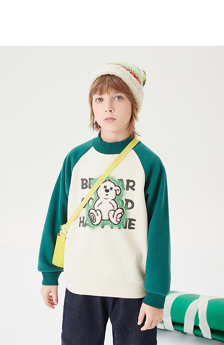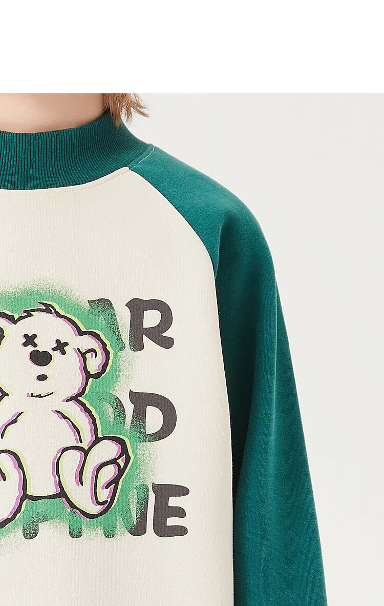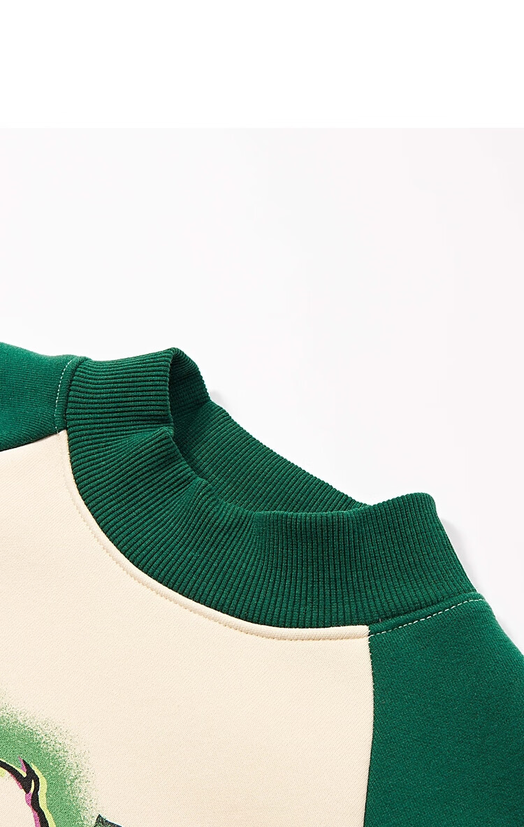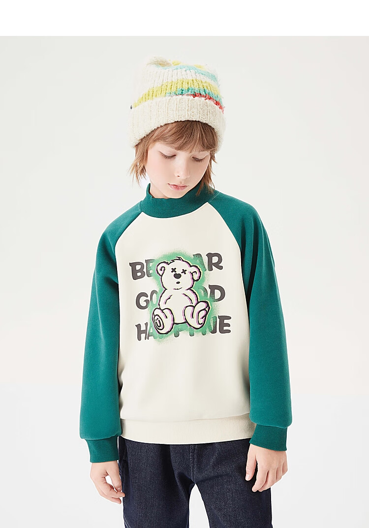 【MQD】童装男大童冬新款美式复古半高领加绒插肩袖撞色卫衣