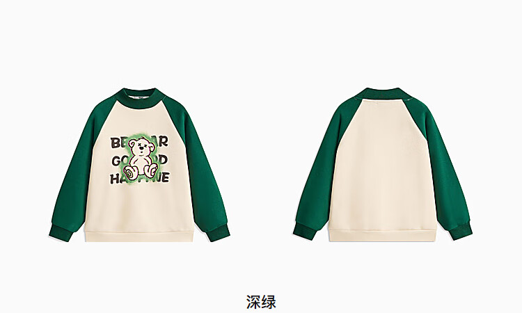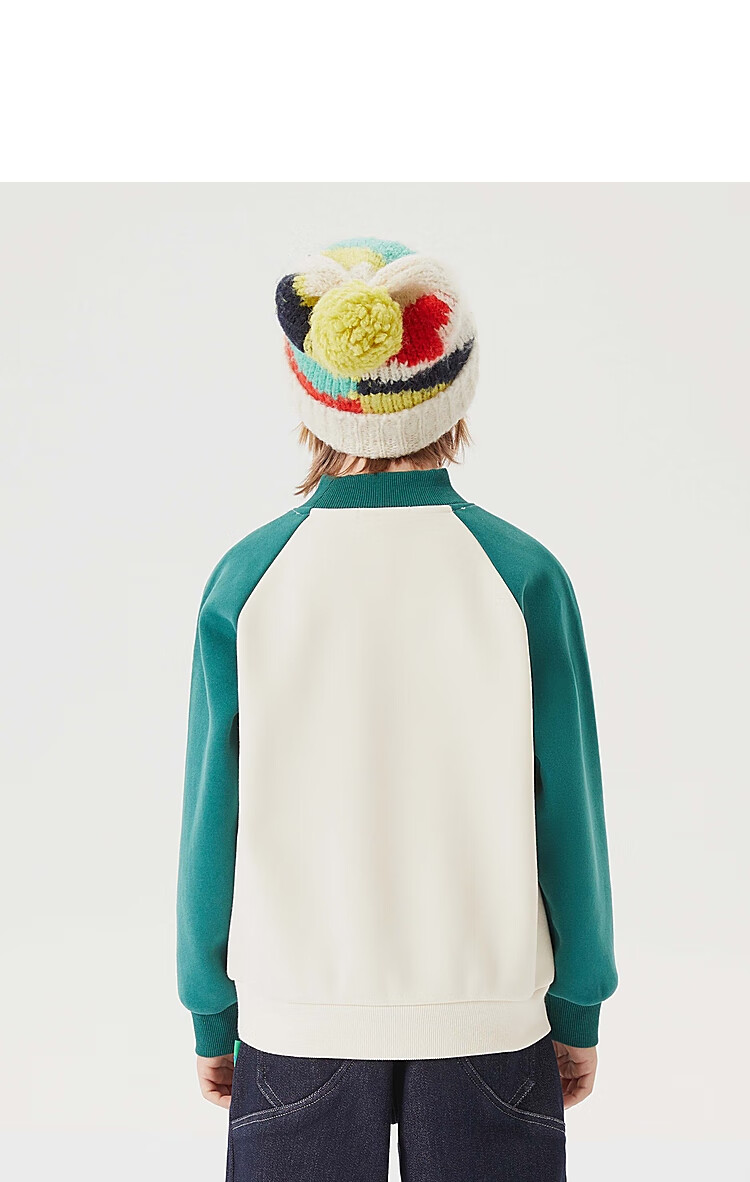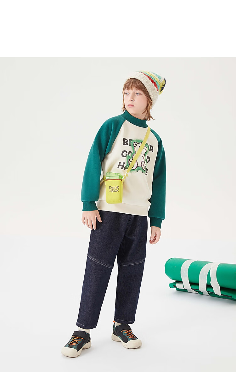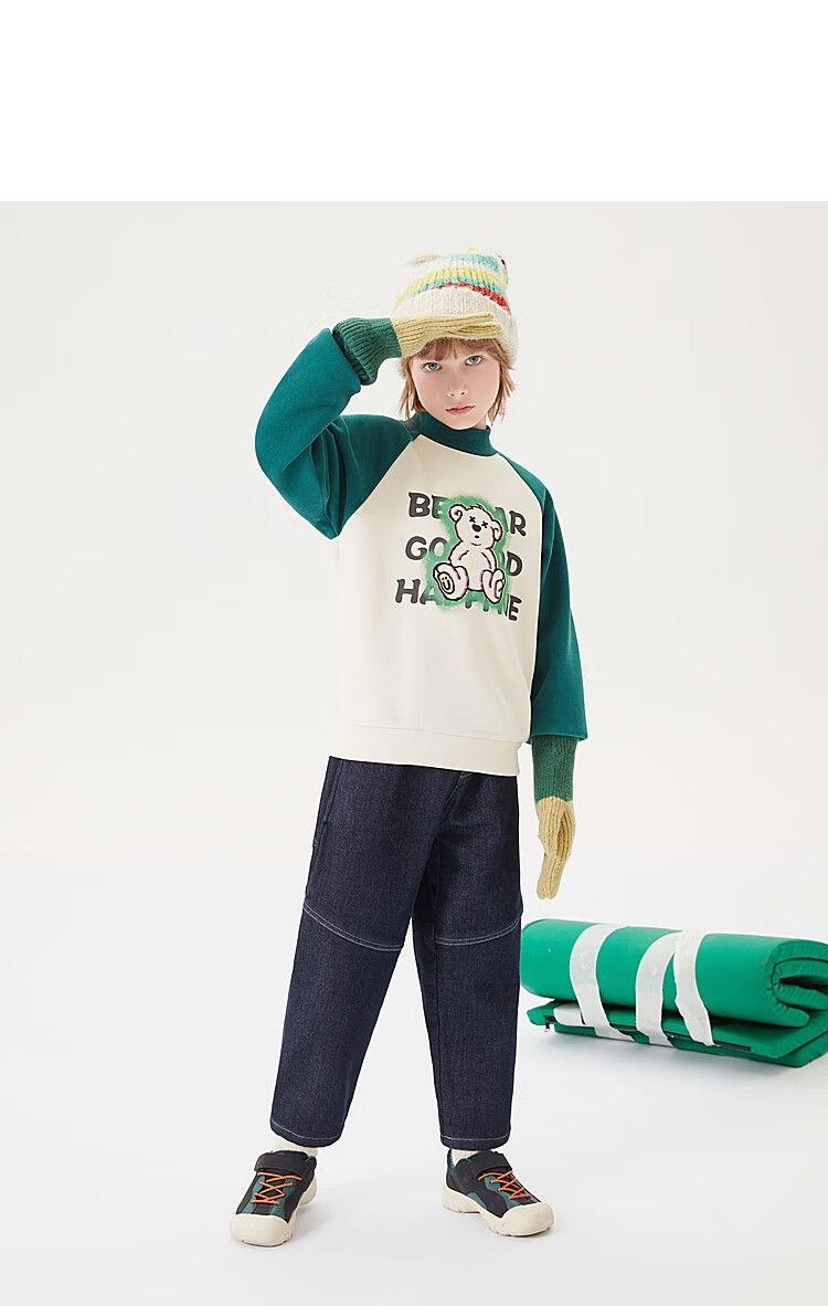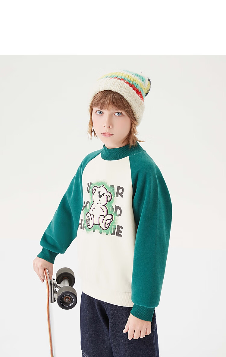 【MQD】童装男大童冬新款美式复古半高领加绒插肩袖撞色卫衣
