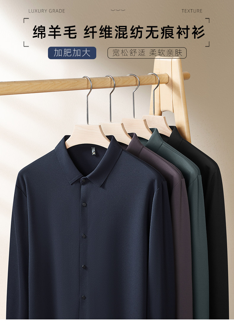 【DDS】大依优型大码男装春季无痕长袖衬衫商务休闲长袖T恤320斤可穿