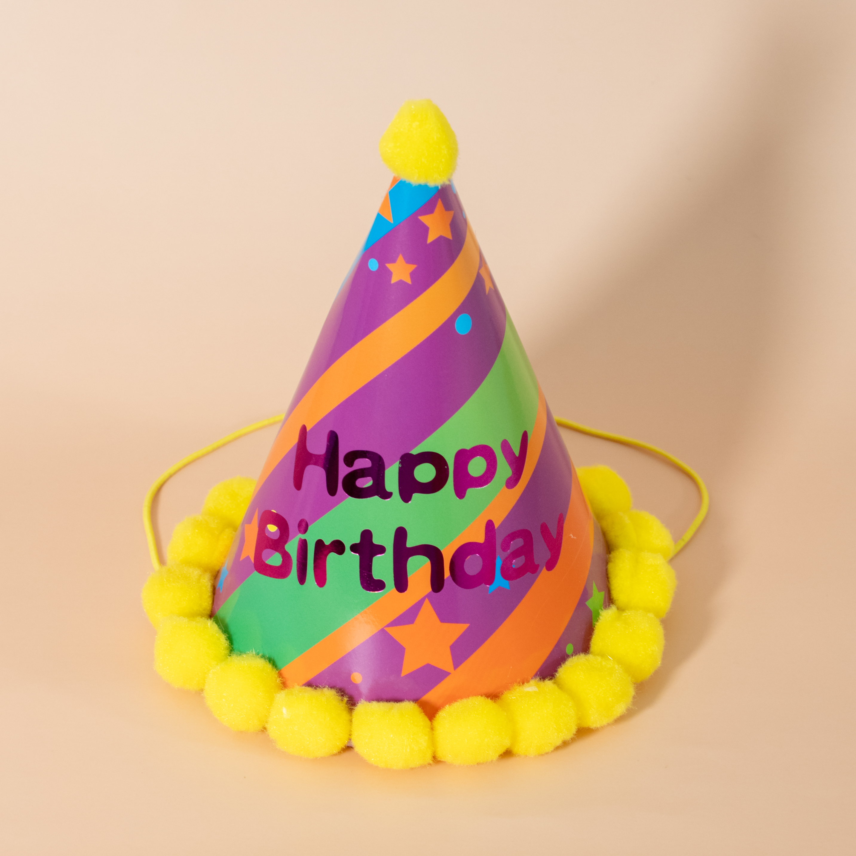 斜纹黄色生日帽