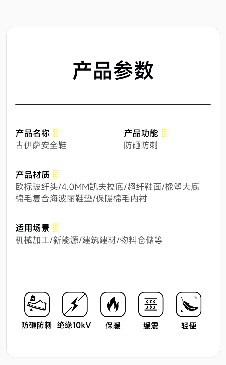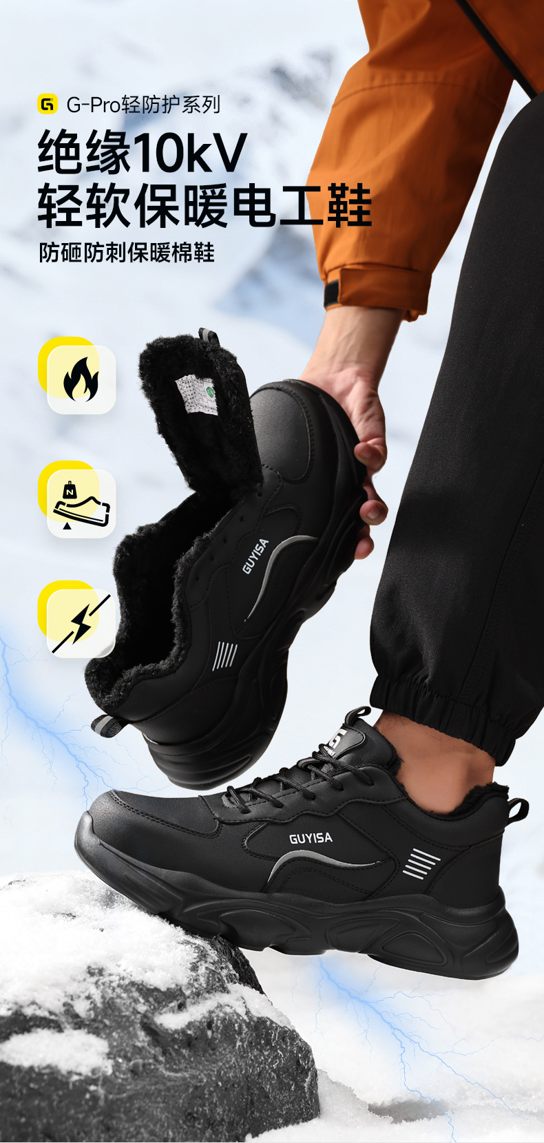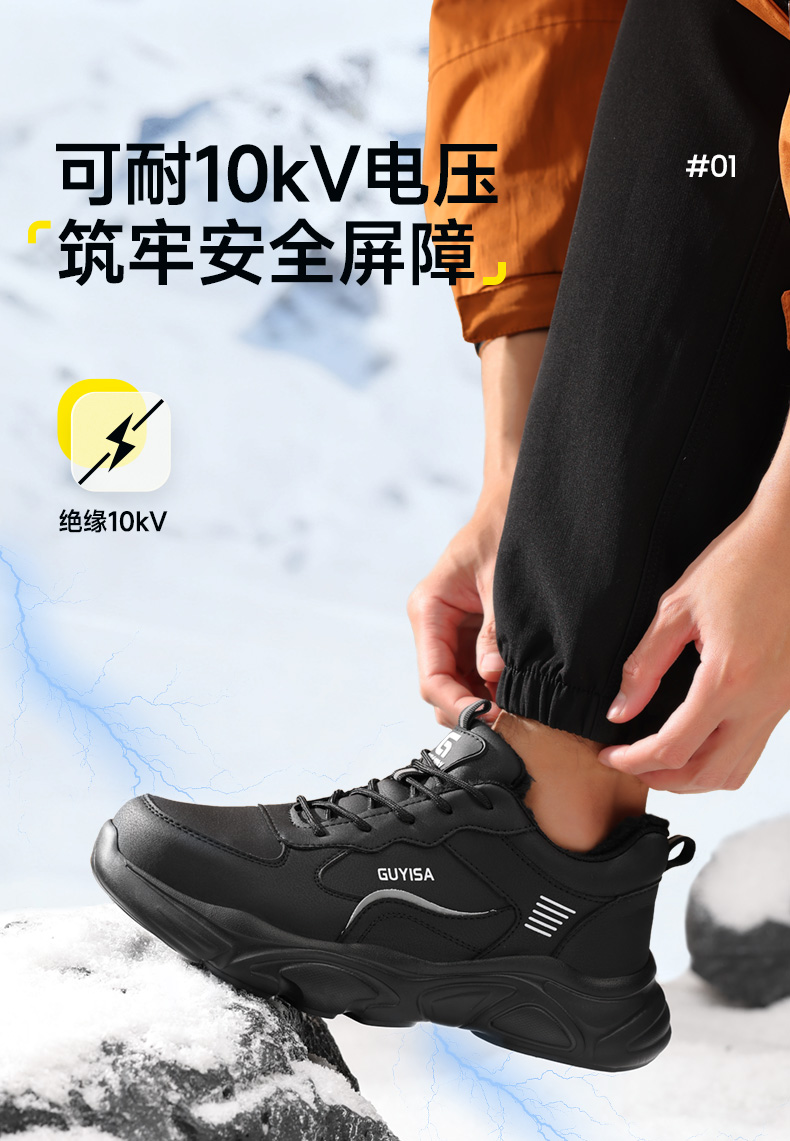 新款劳保鞋黑色冬季防砸防刺穿绝缘10KV欧标玻纤头橡塑底轻便