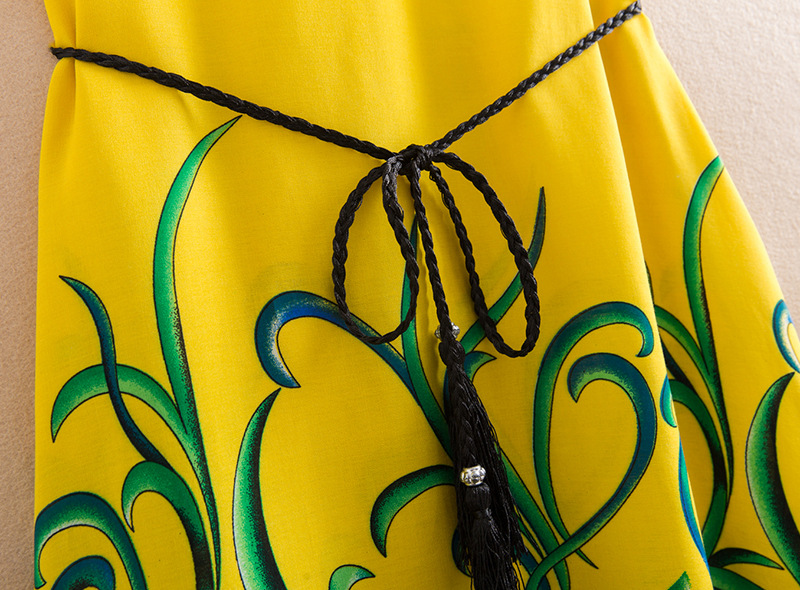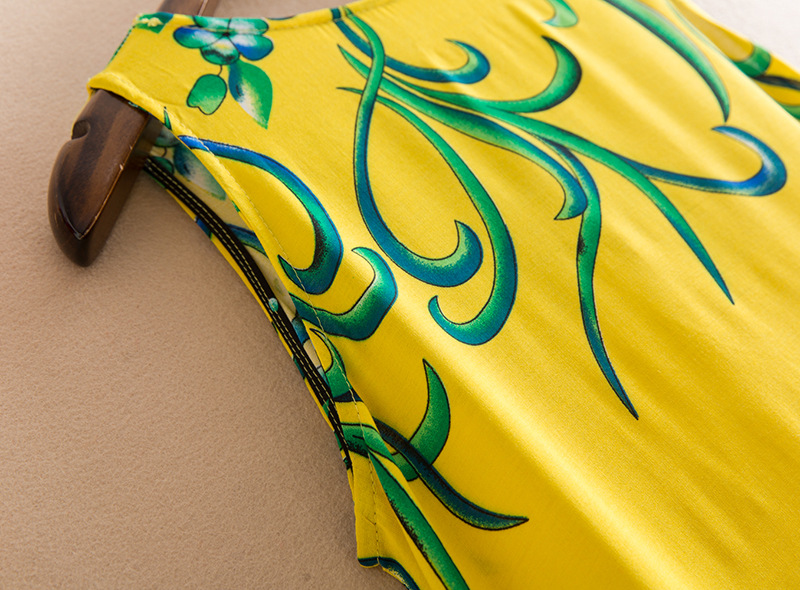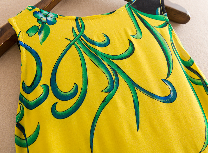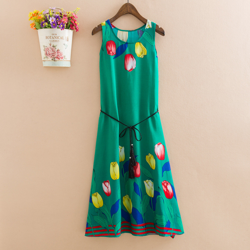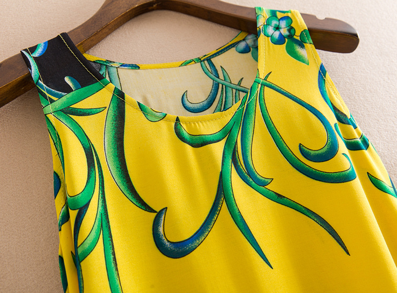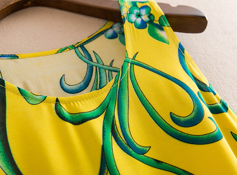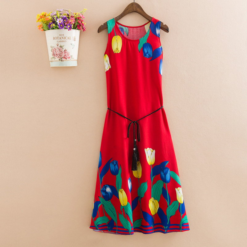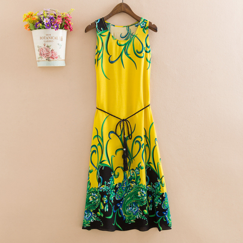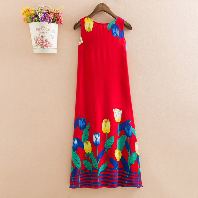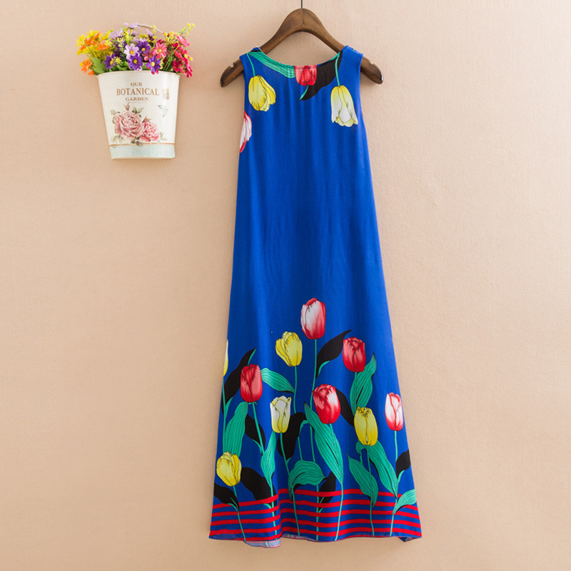 YDGJ新品大码民族风长款过膝棉绸连衣裙印花沙滩长裙百搭无袖裙WY