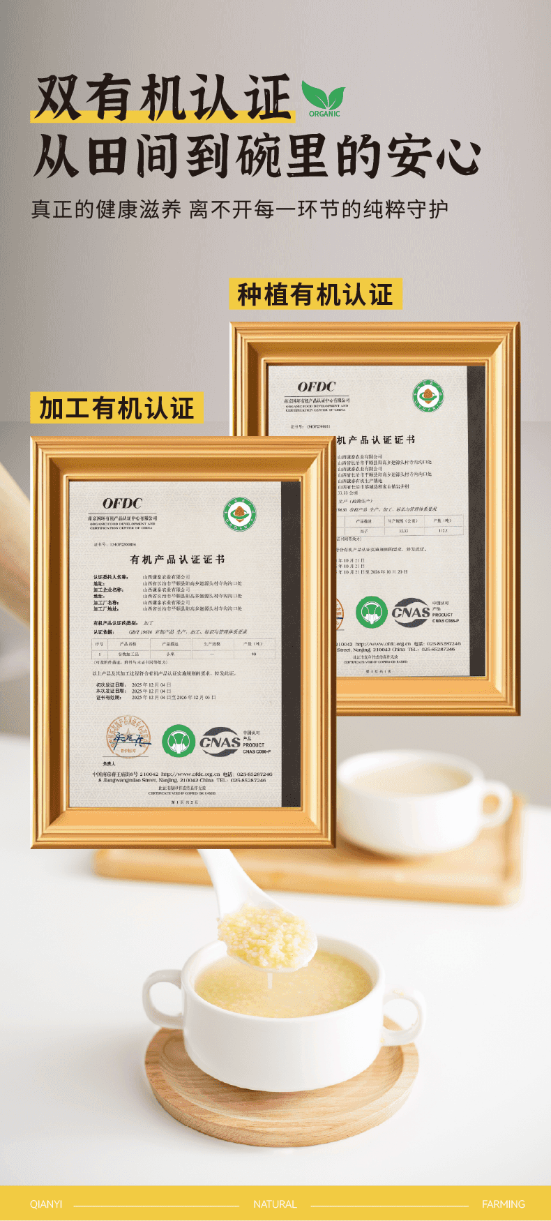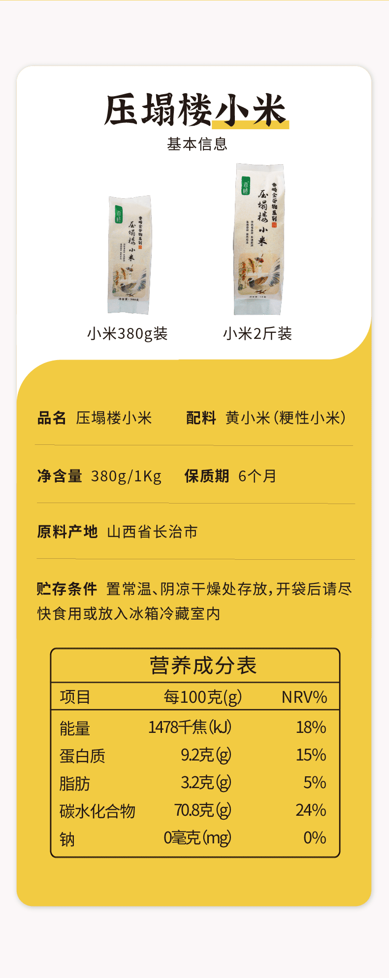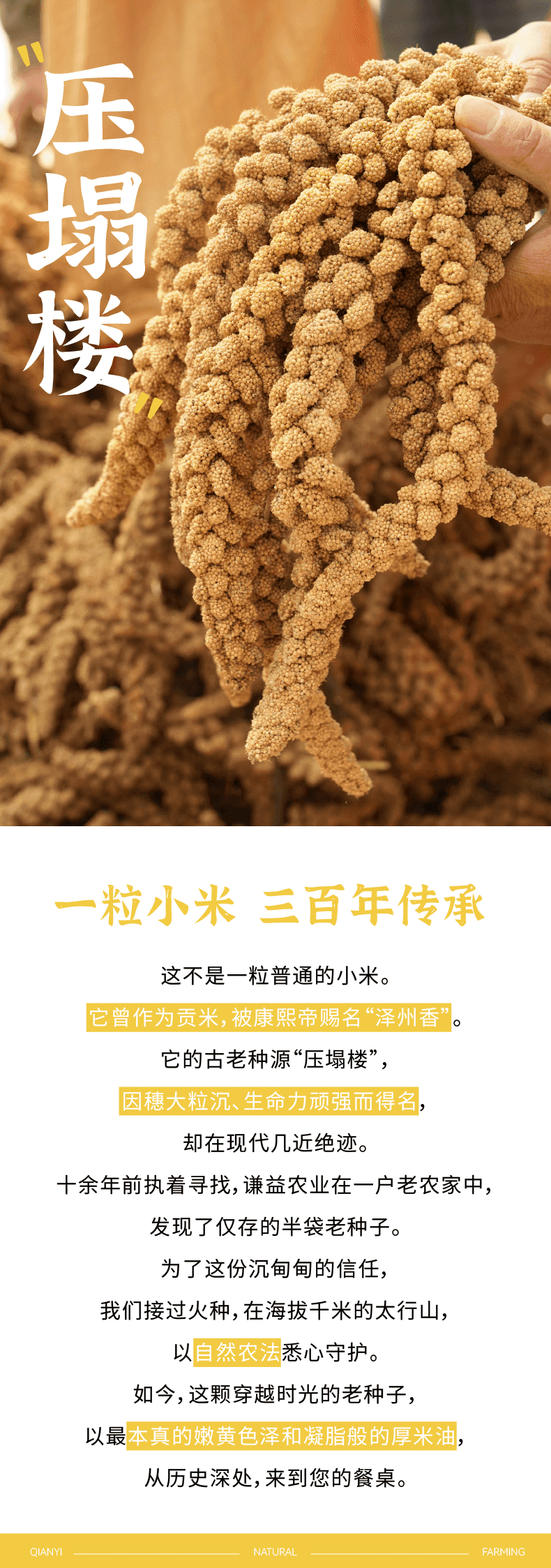 【2025年秋季新米】【谦益】香畴 压塌楼小米2斤 老品种 自然农法种植 山西太行山区传统品种 色泽自然 孕妇月子粥 米油浓厚